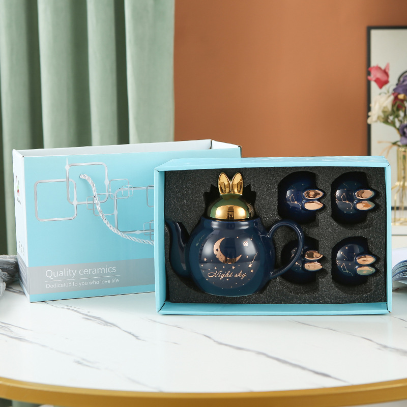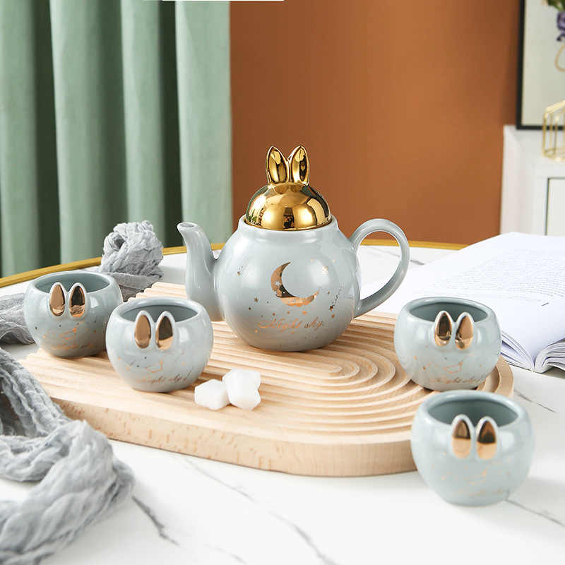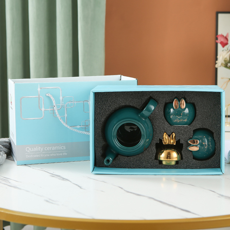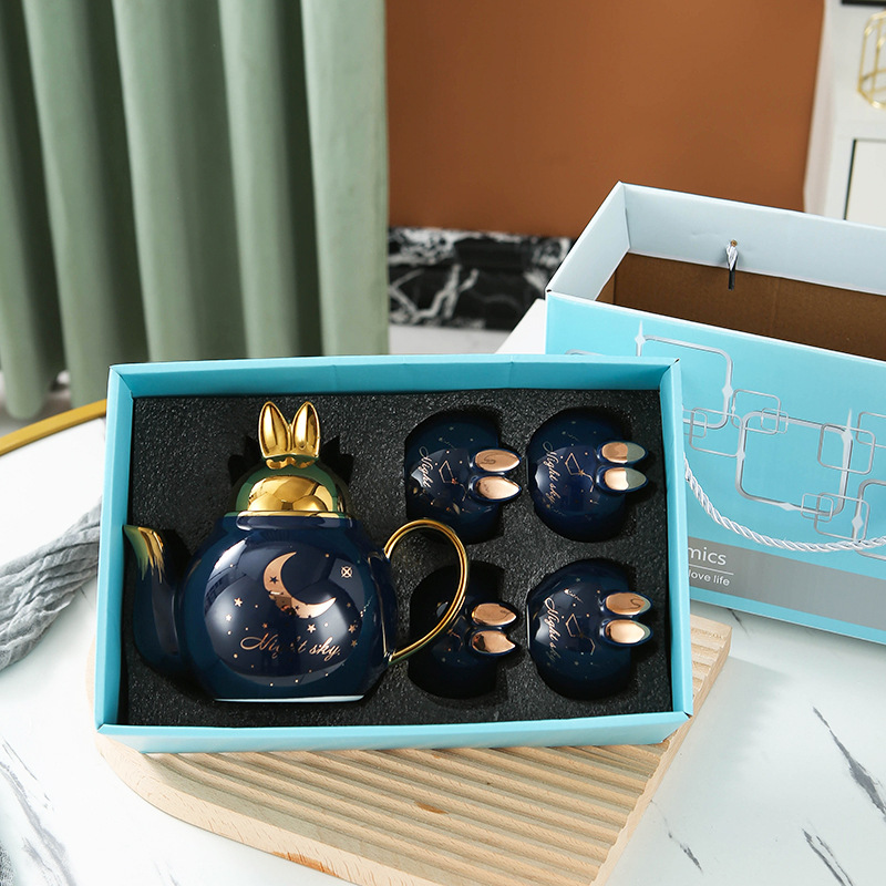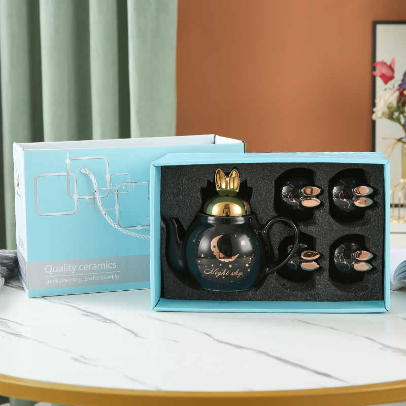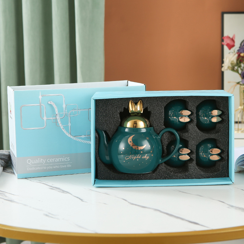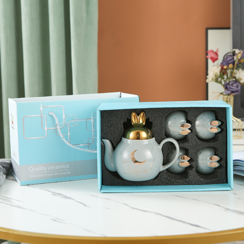 萌趣花茶壶套装陶瓷伴手礼可做logo一壶四杯下午茶茶具套装礼品