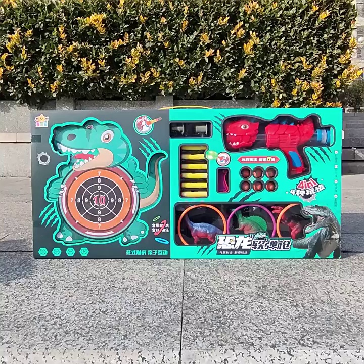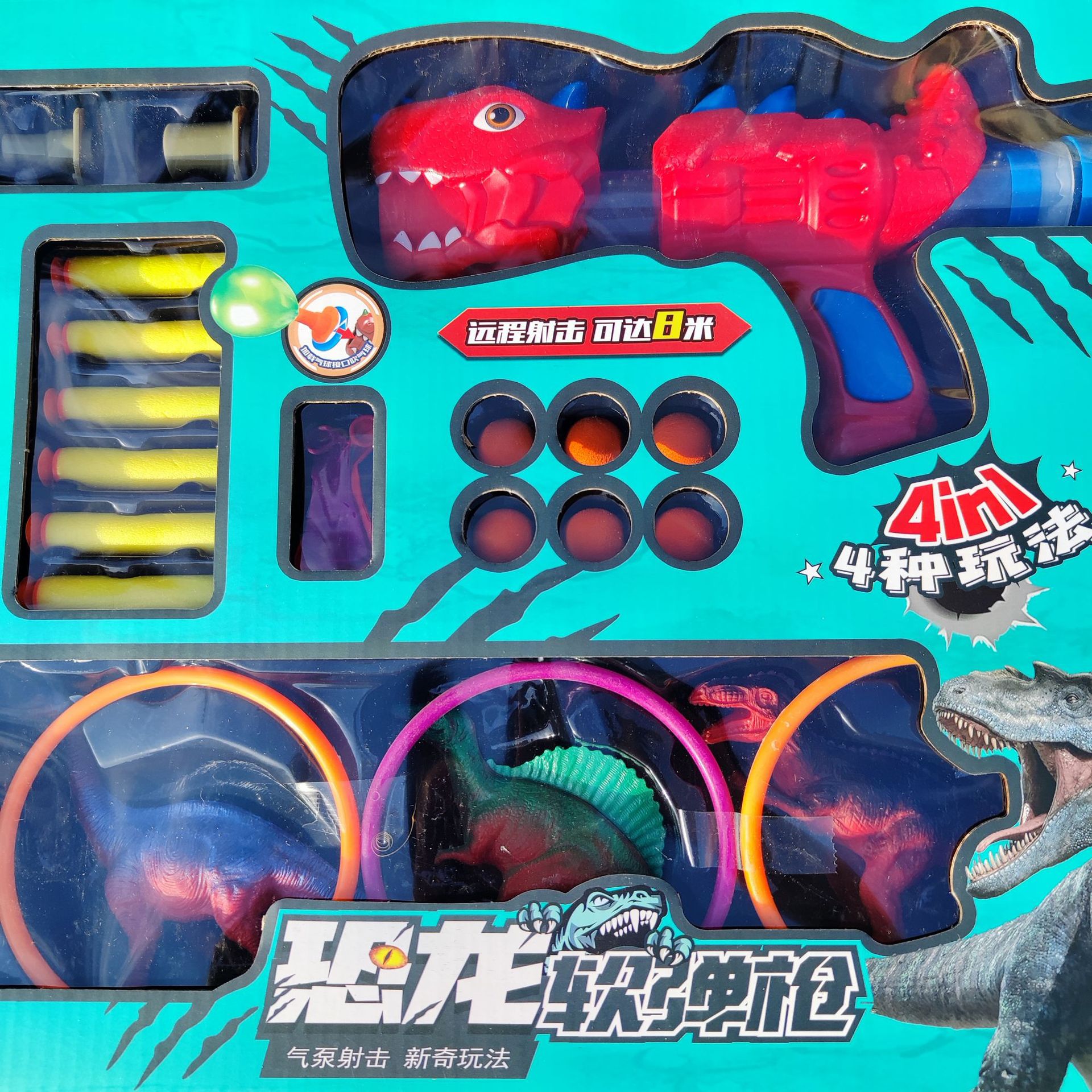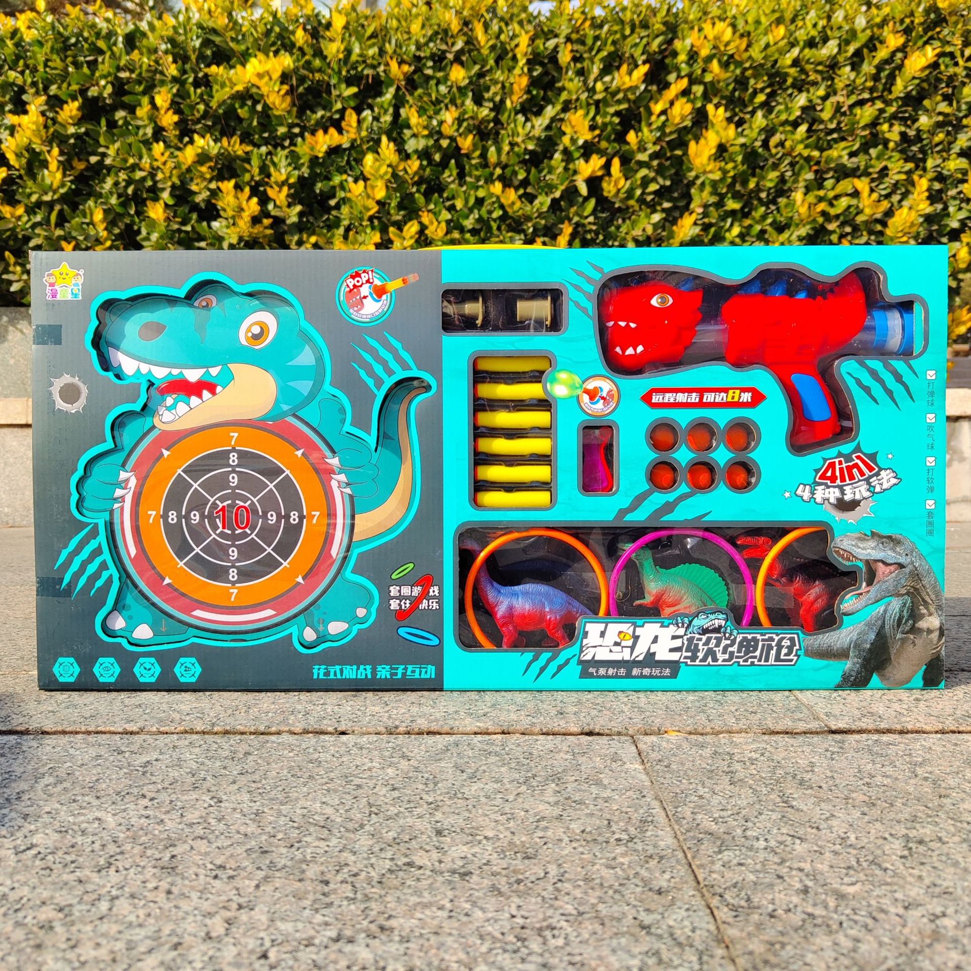 男孩卡通恐龙软弹枪套装儿童玩具标靶射击枪礼盒现货机构招生批发