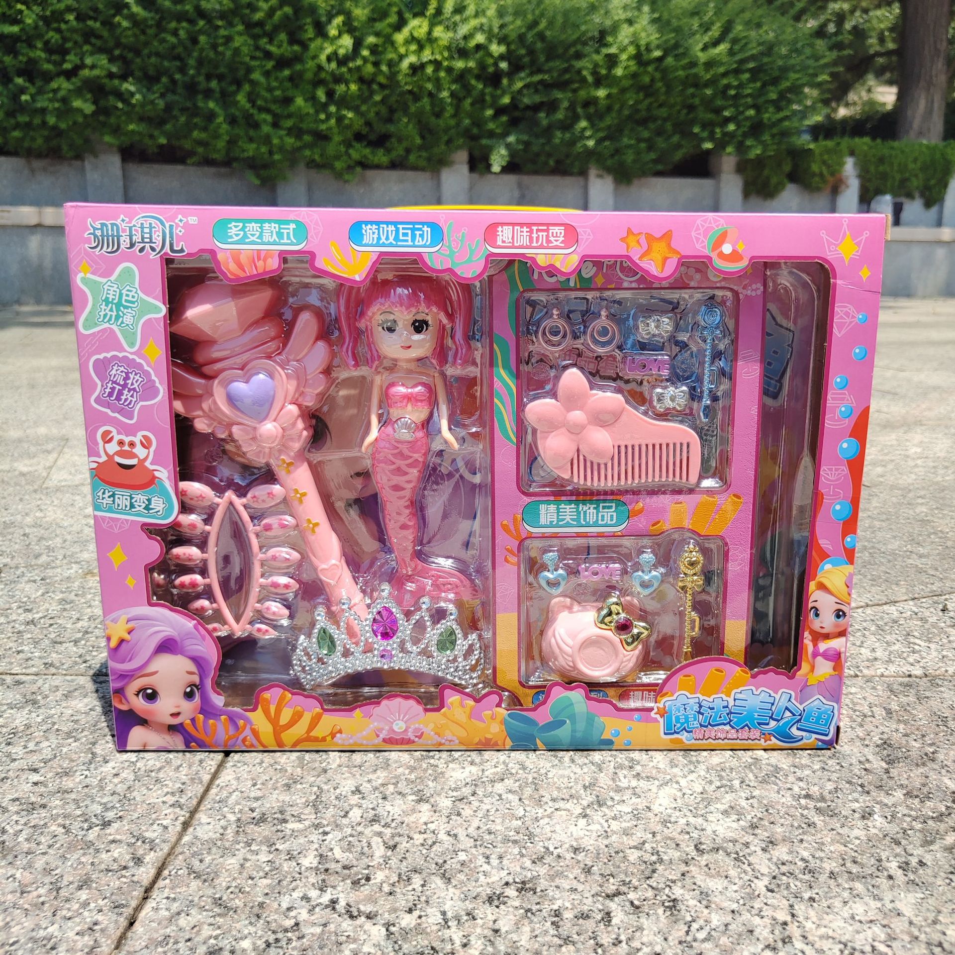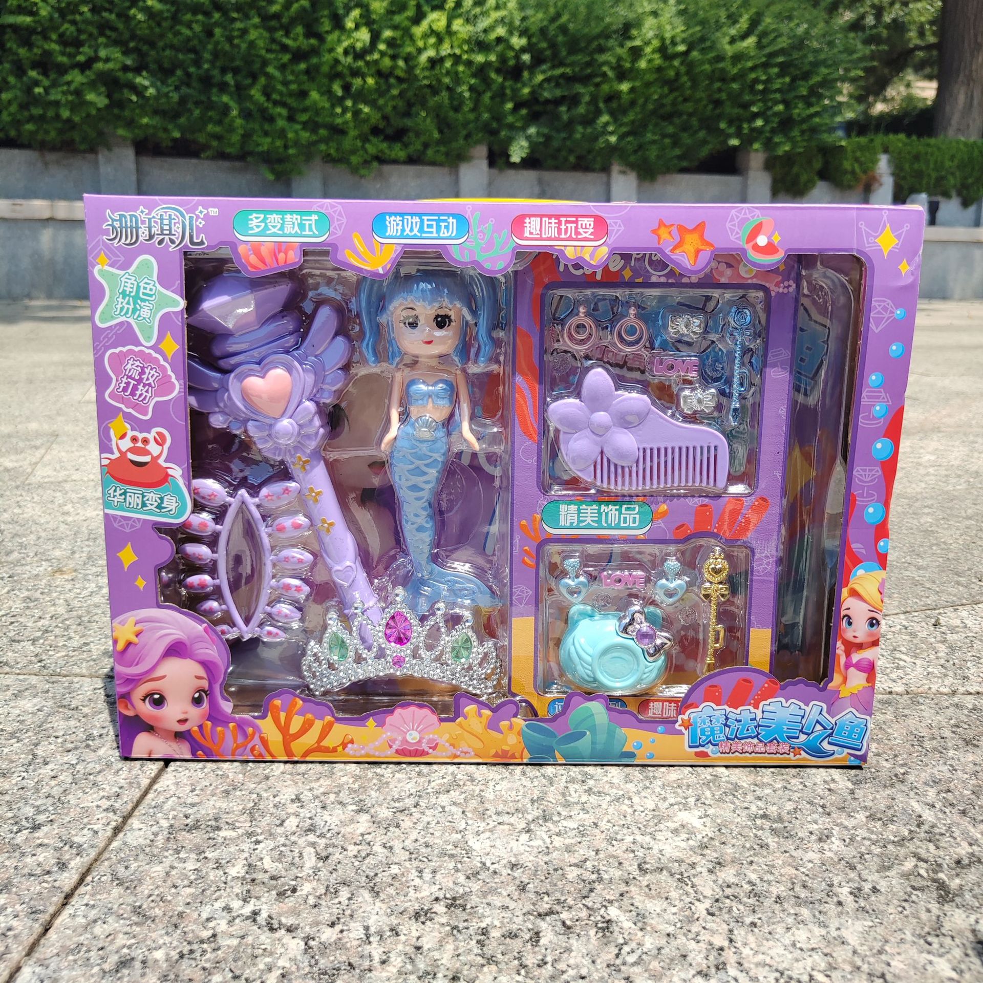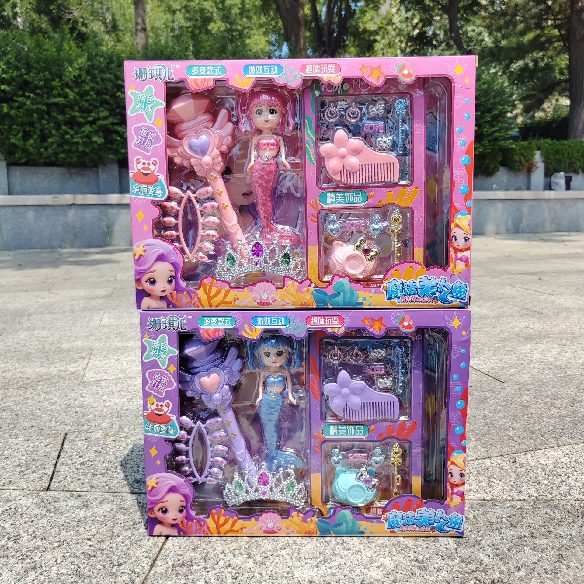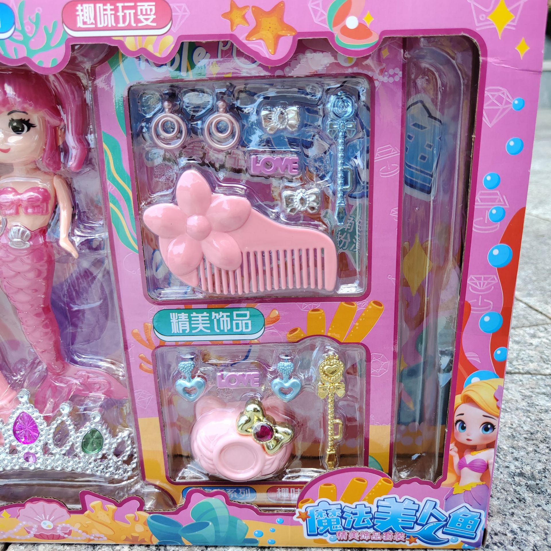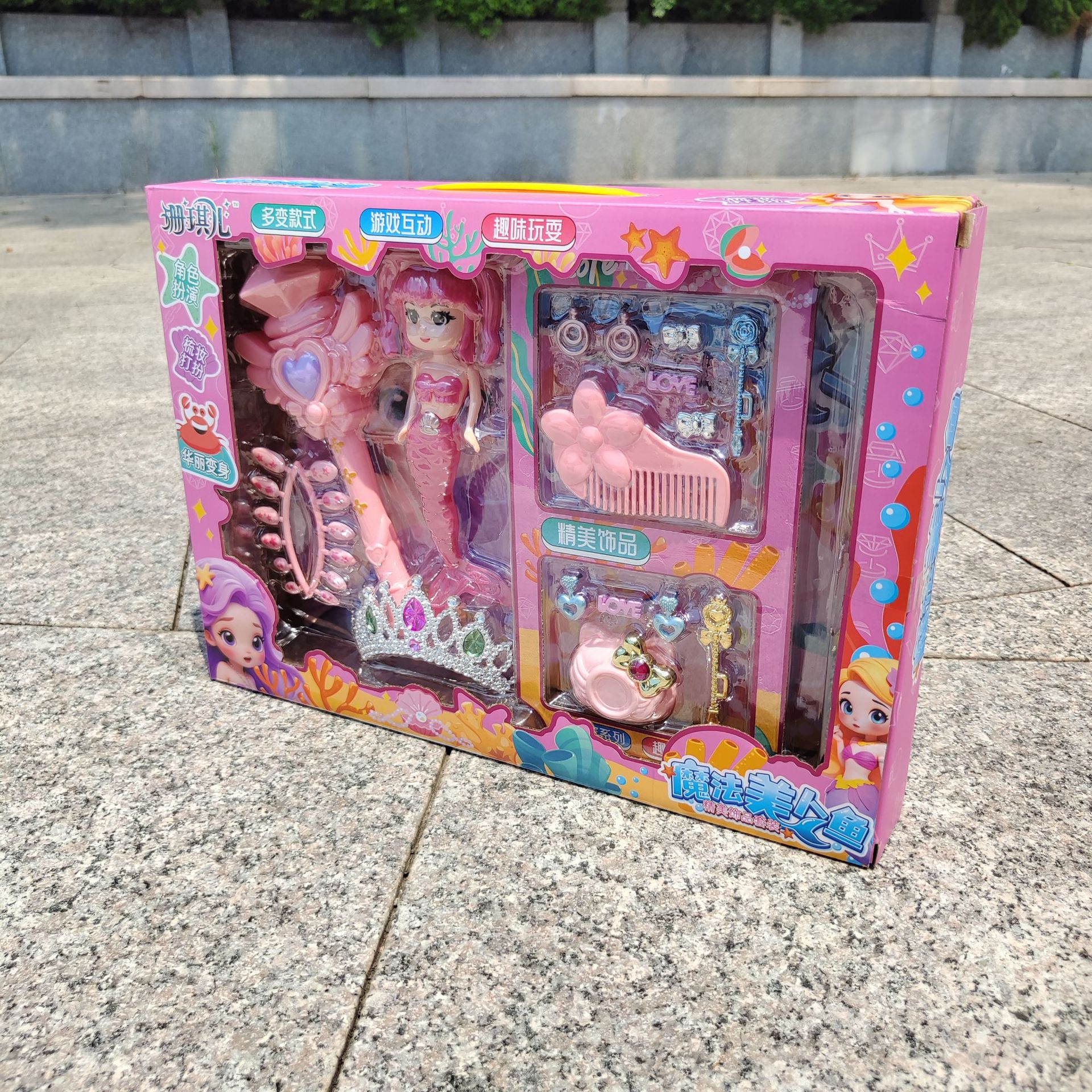 美人鱼娃娃梳妆打扮女孩儿童玩具摇晃发光魔法棒套装培训机构批发