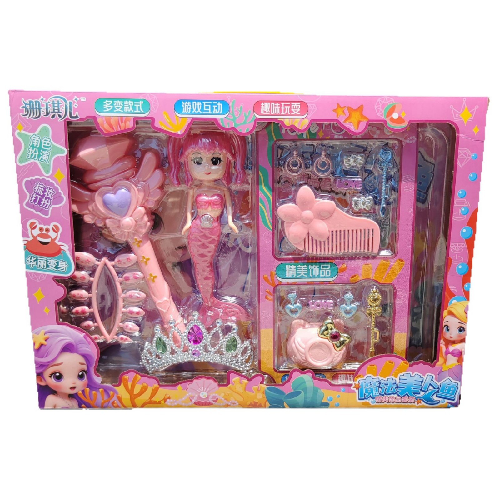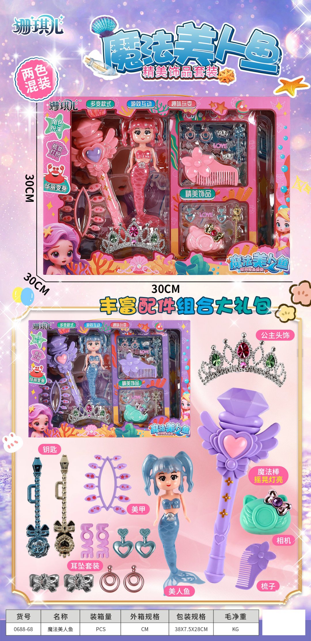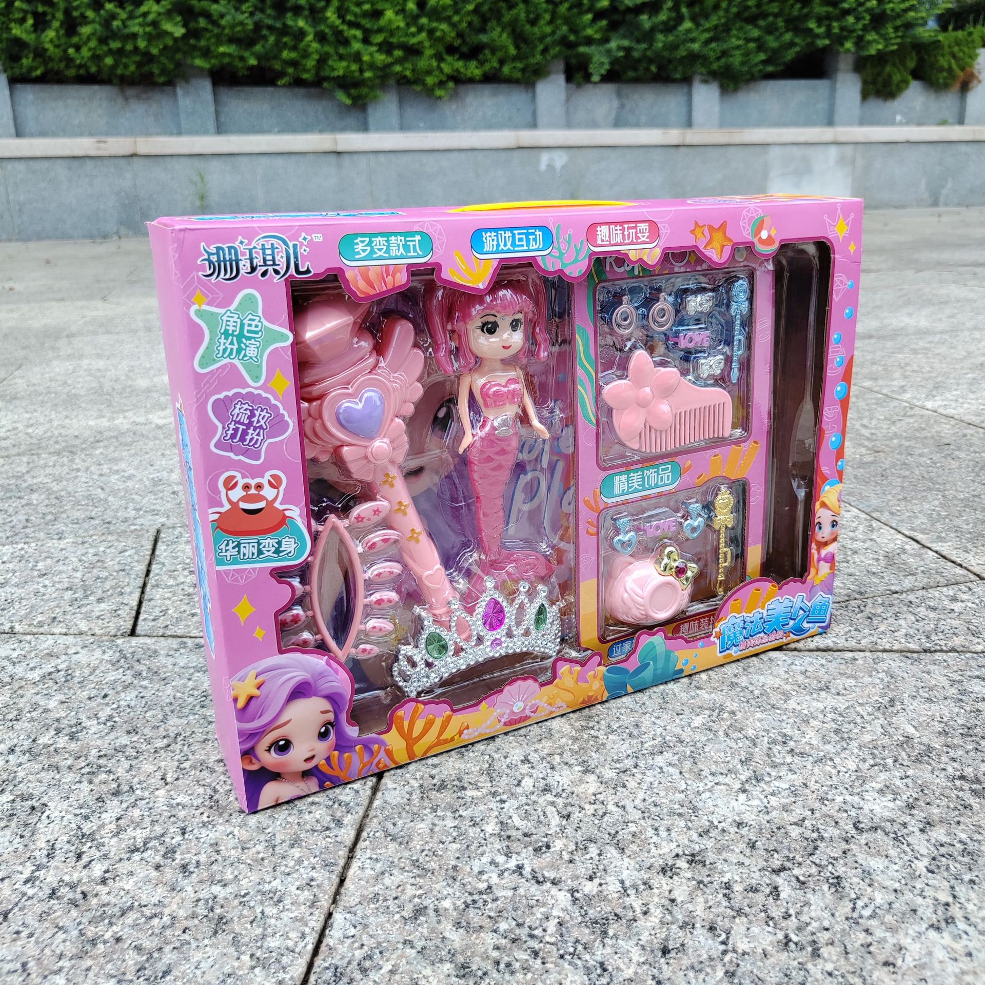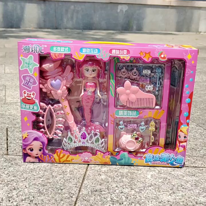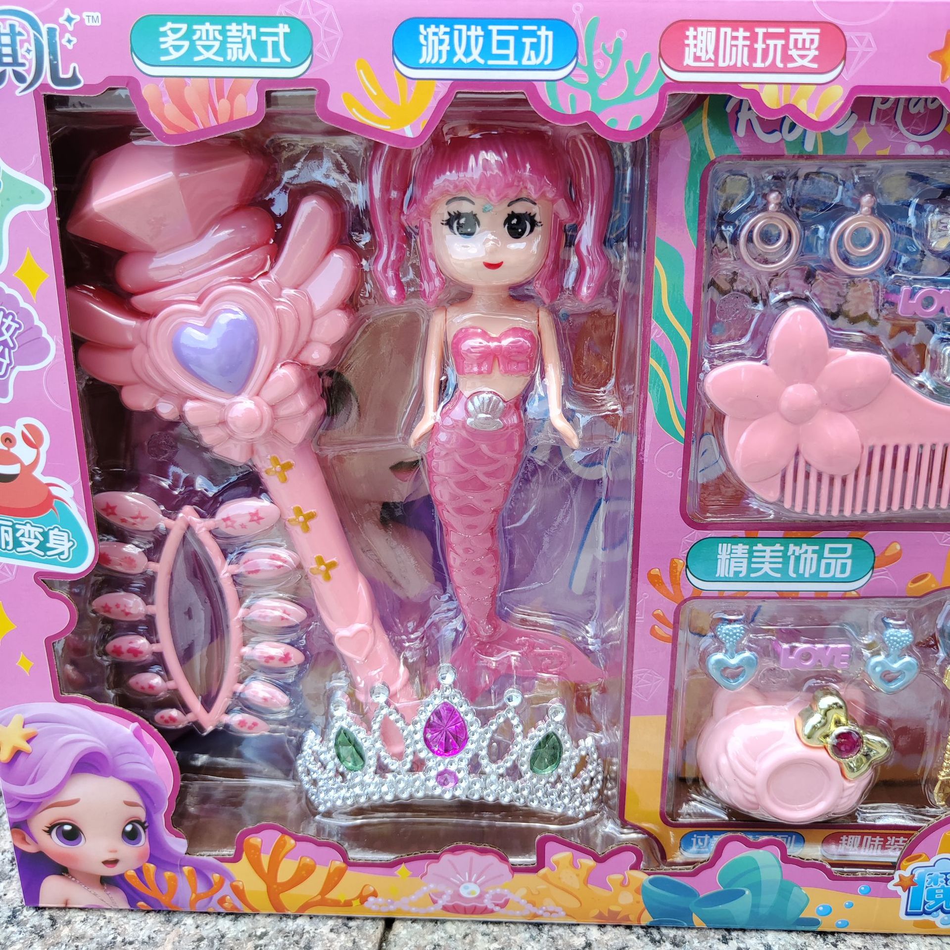 美人鱼娃娃梳妆打扮女孩儿童玩具摇晃发光魔法棒套装培训机构批发
