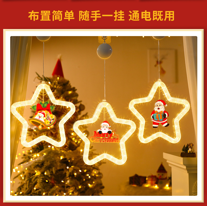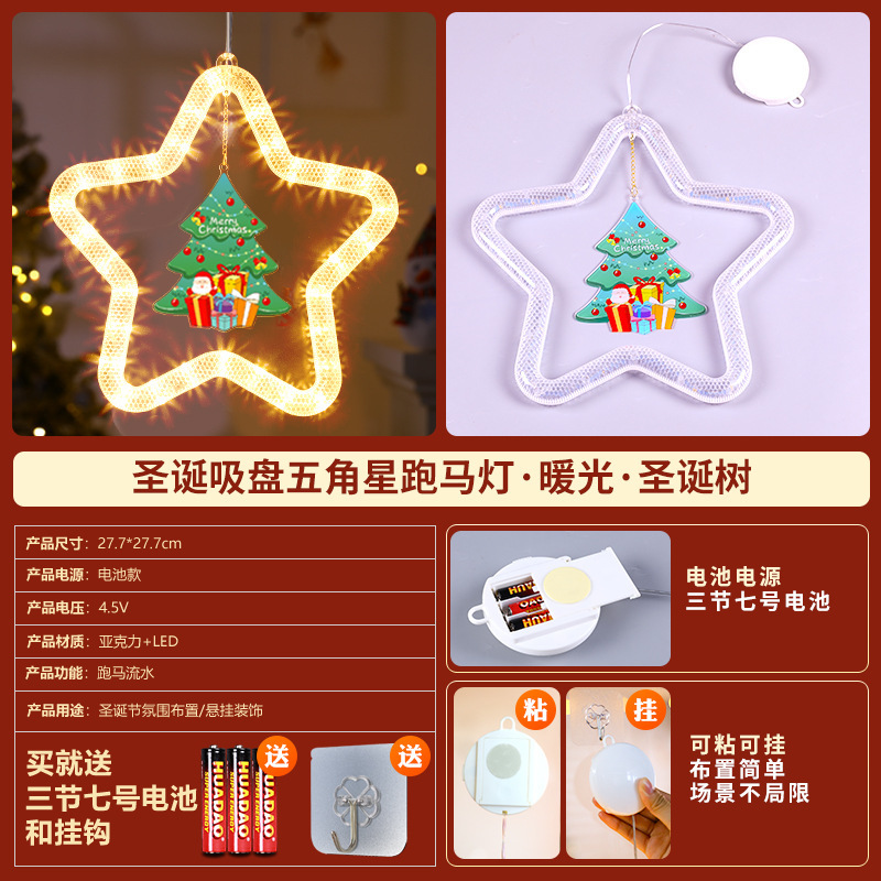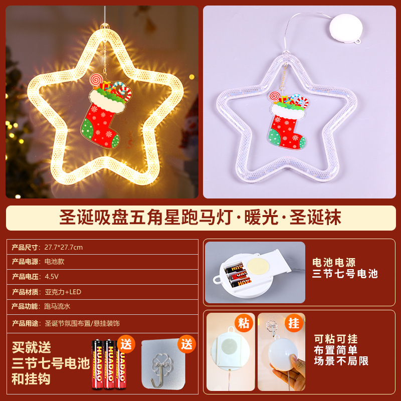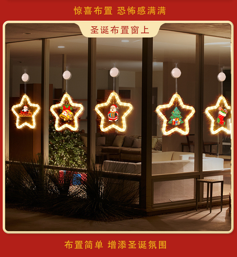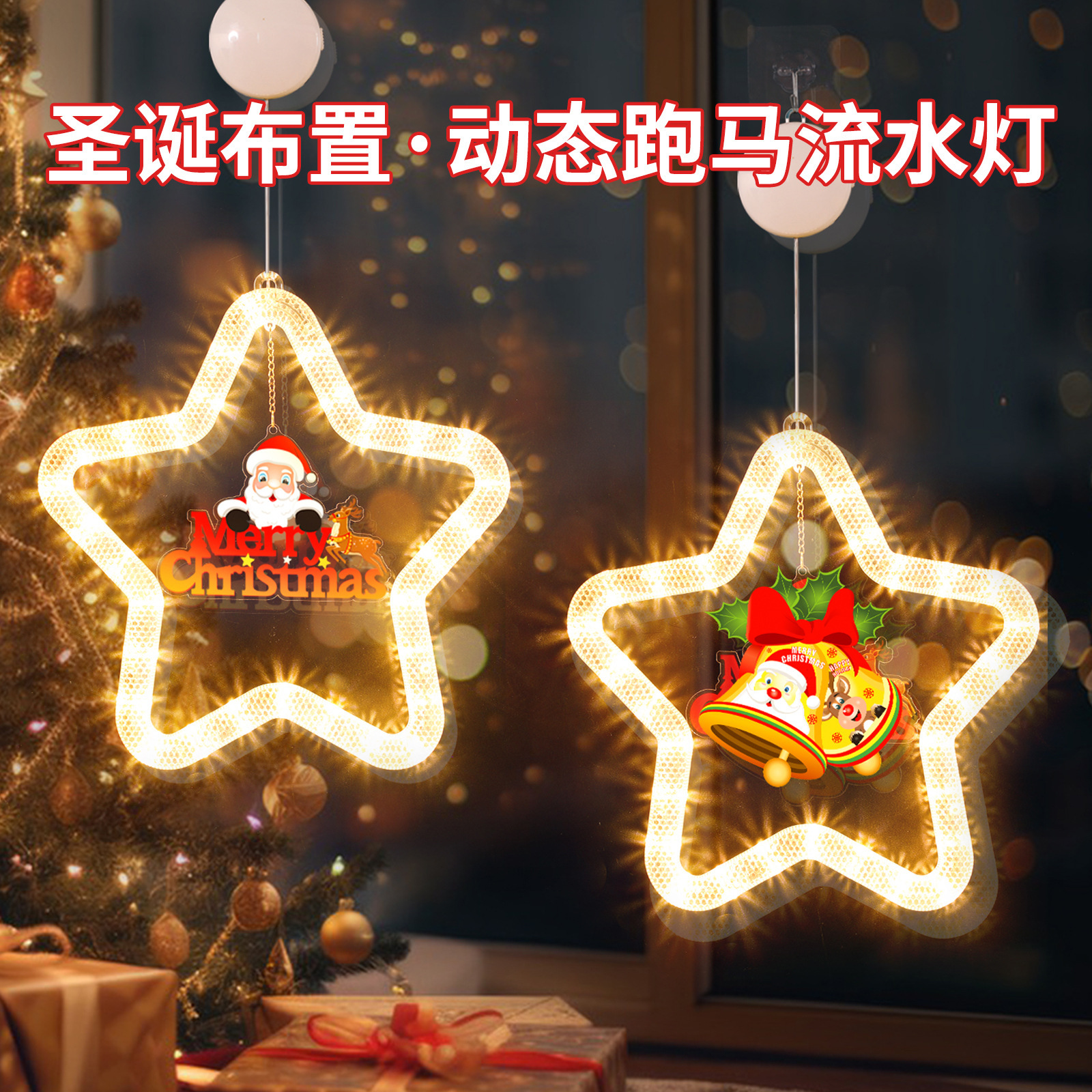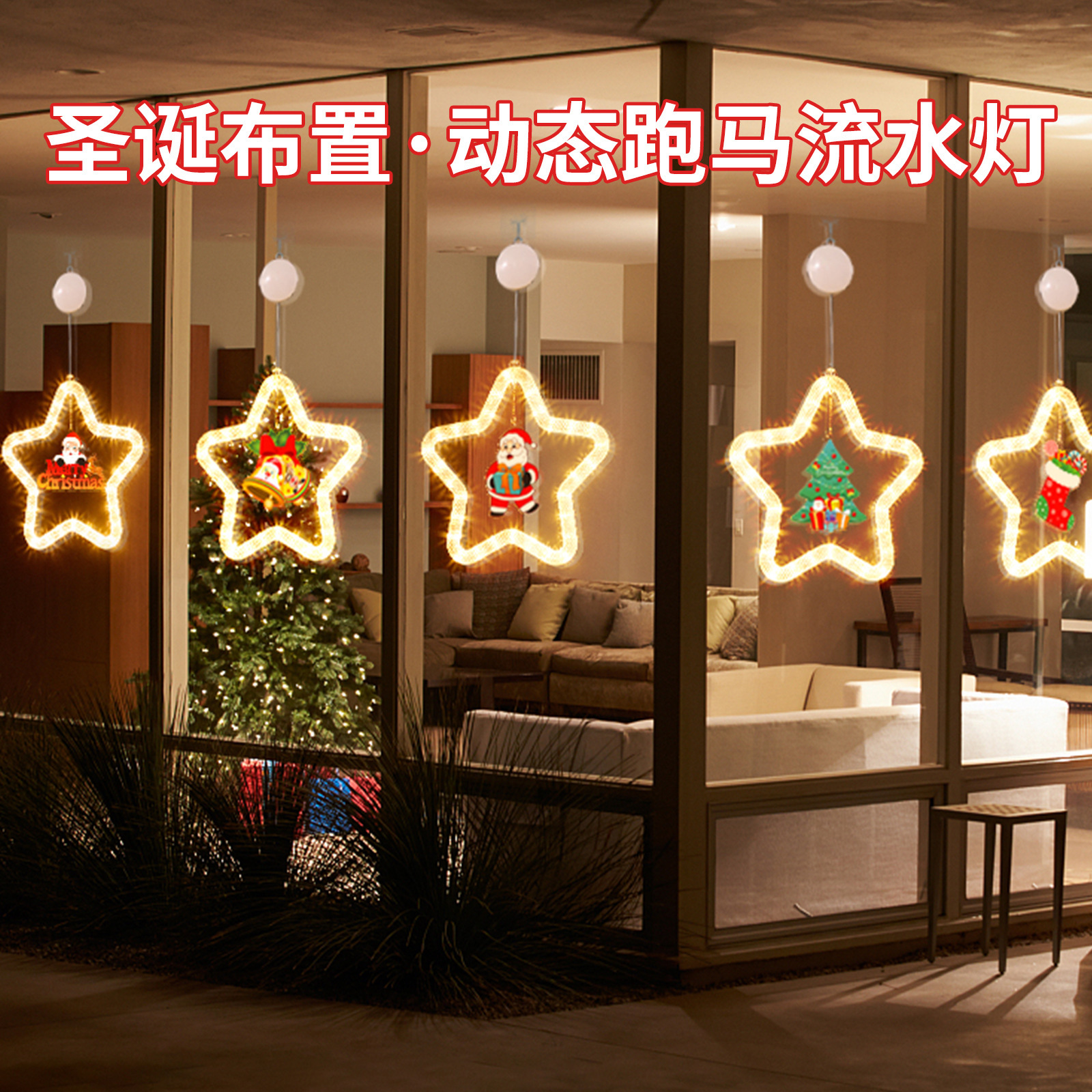 外贸专供圣诞节五角星跑马挂灯led彩灯窗户氛围装饰挂件吸盘灯