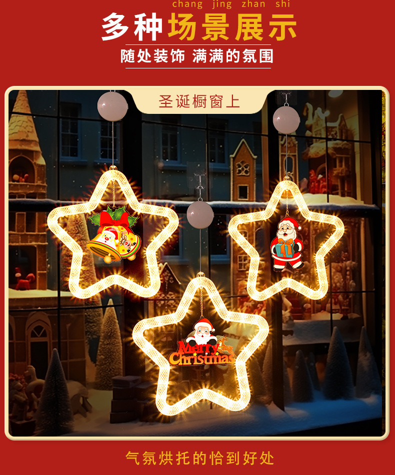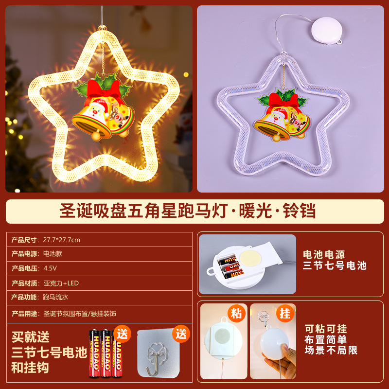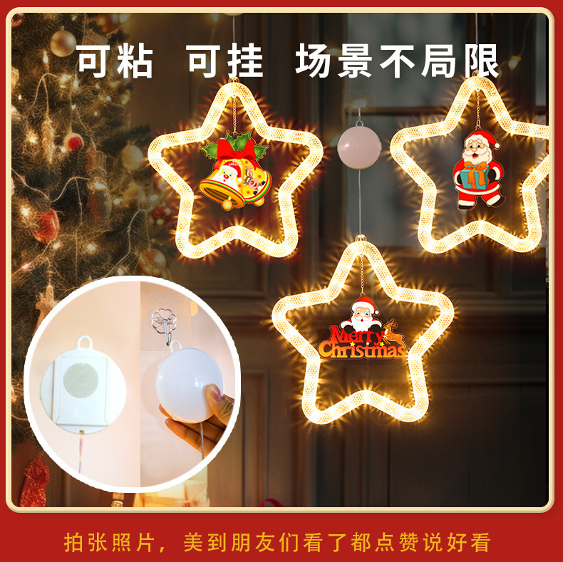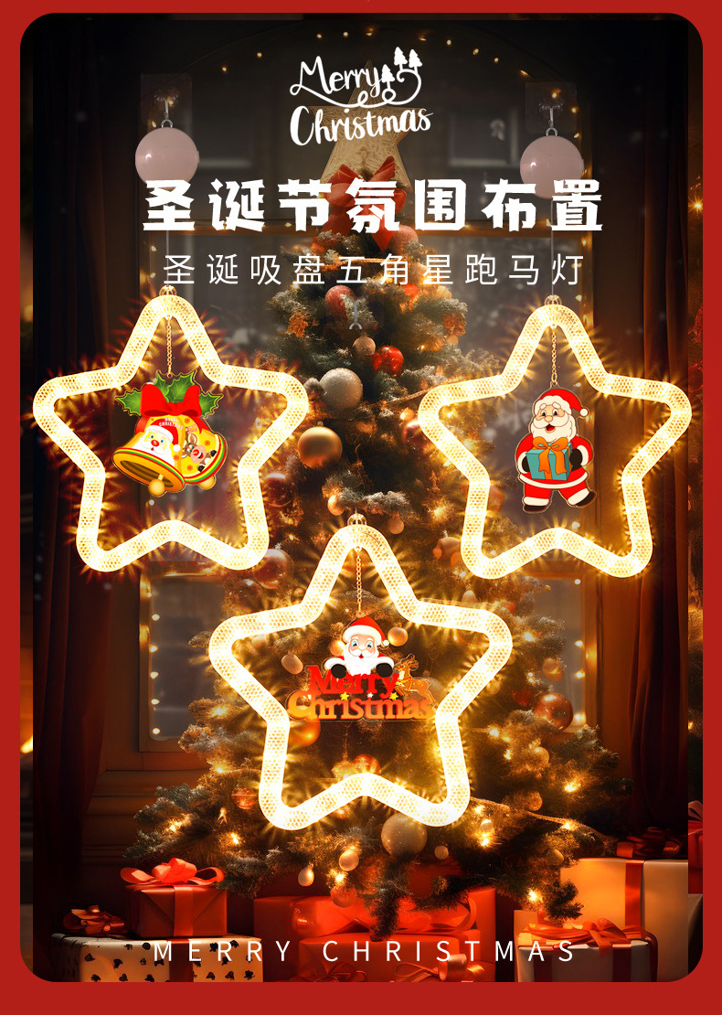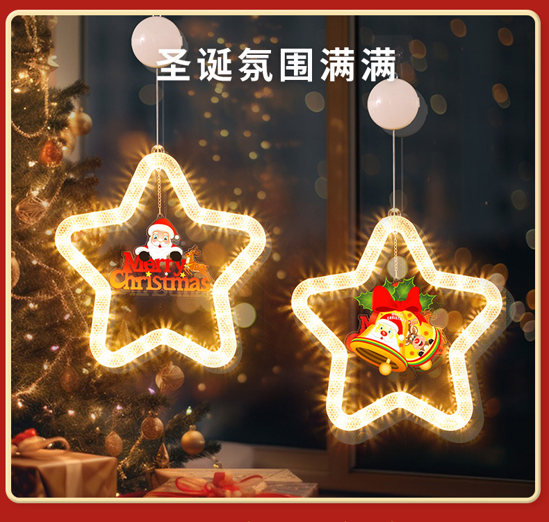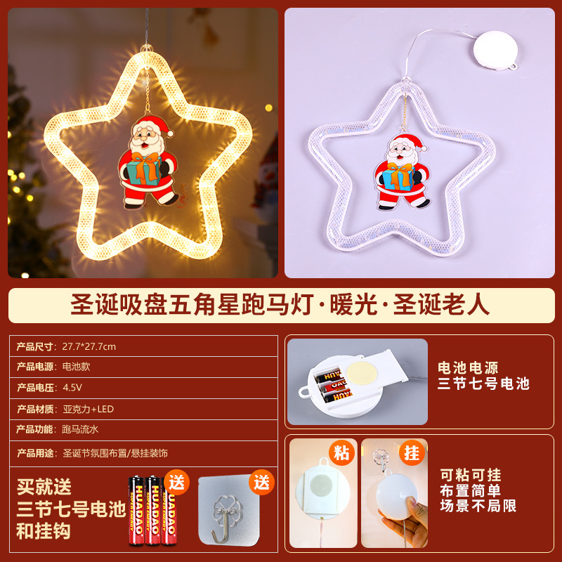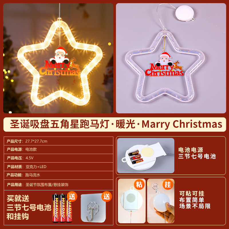 外贸专供圣诞节五角星跑马挂灯led彩灯窗户氛围装饰挂件吸盘灯