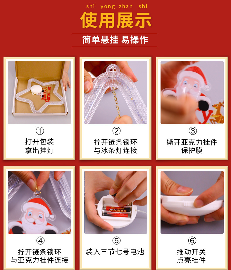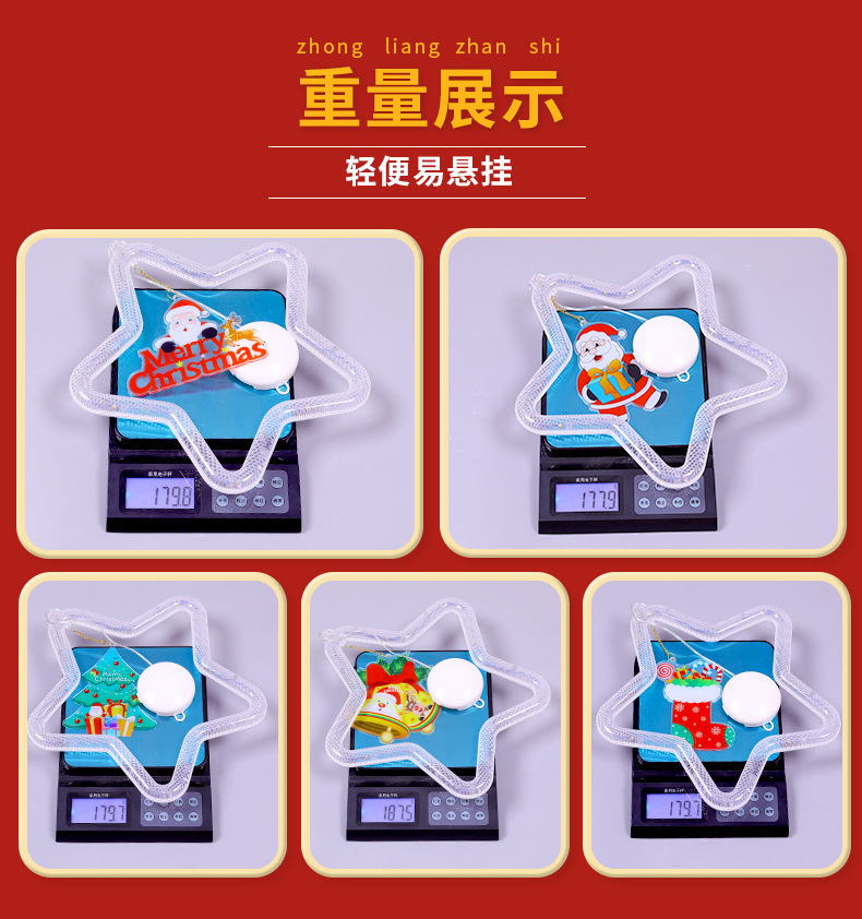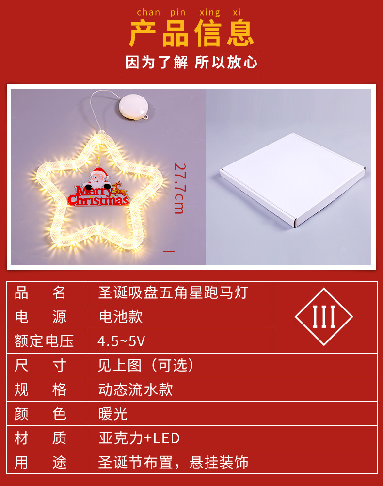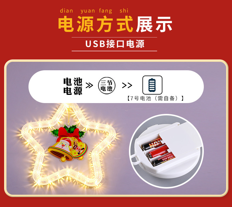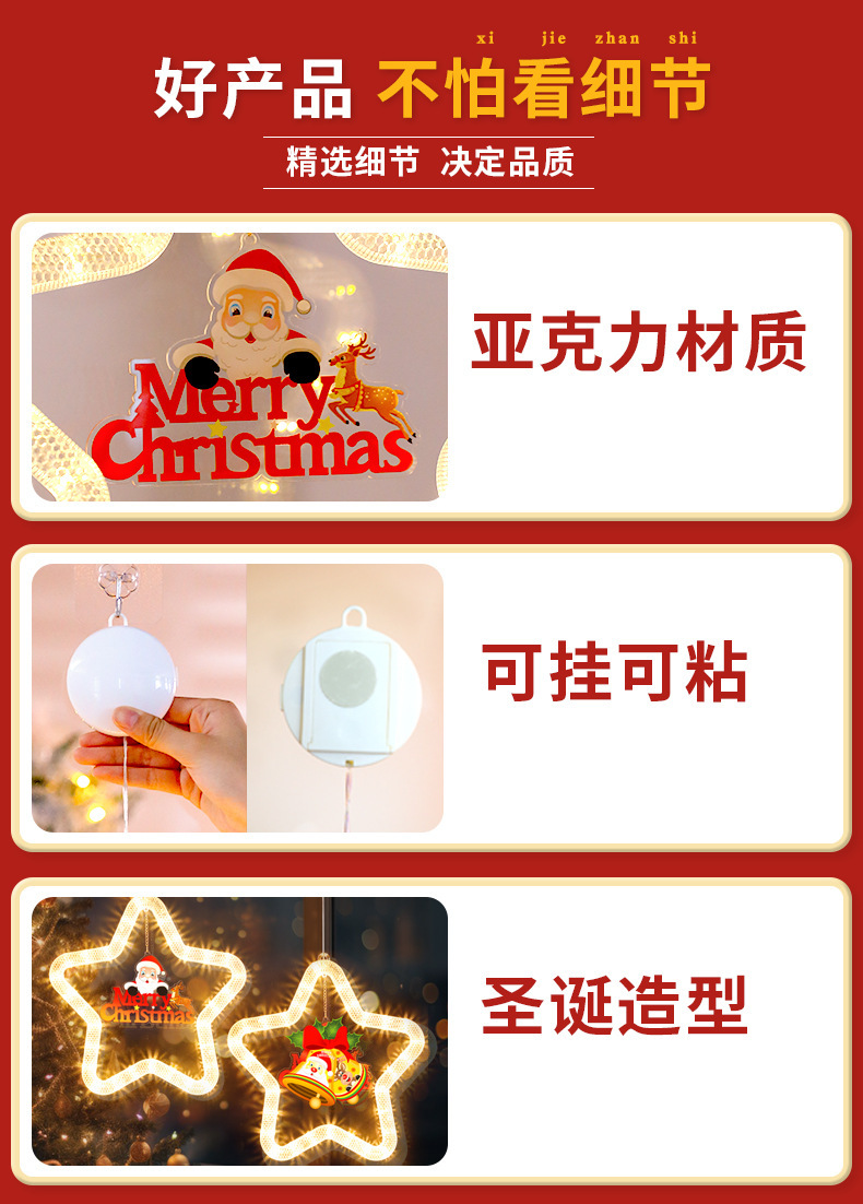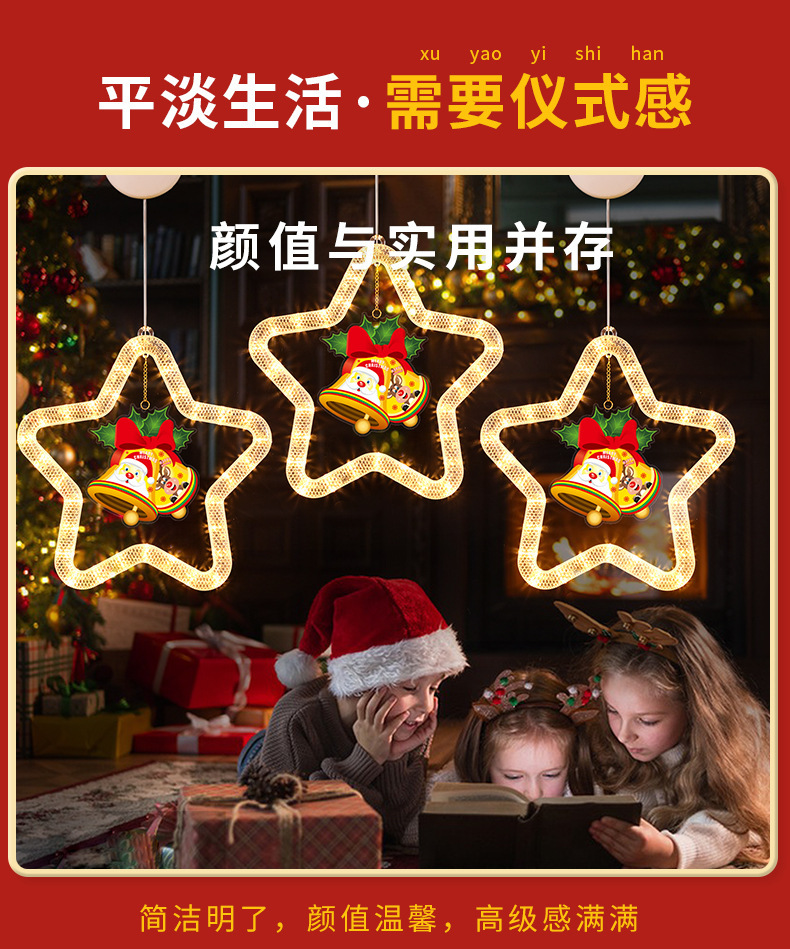 外贸专供圣诞节五角星跑马挂灯led彩灯窗户氛围装饰挂件吸盘灯