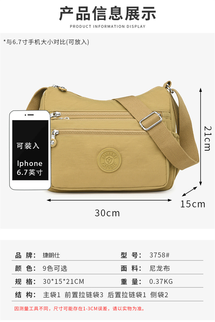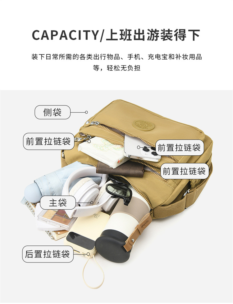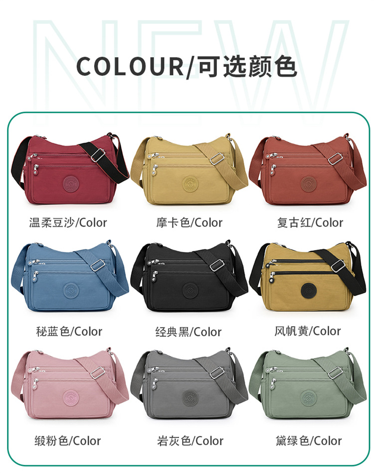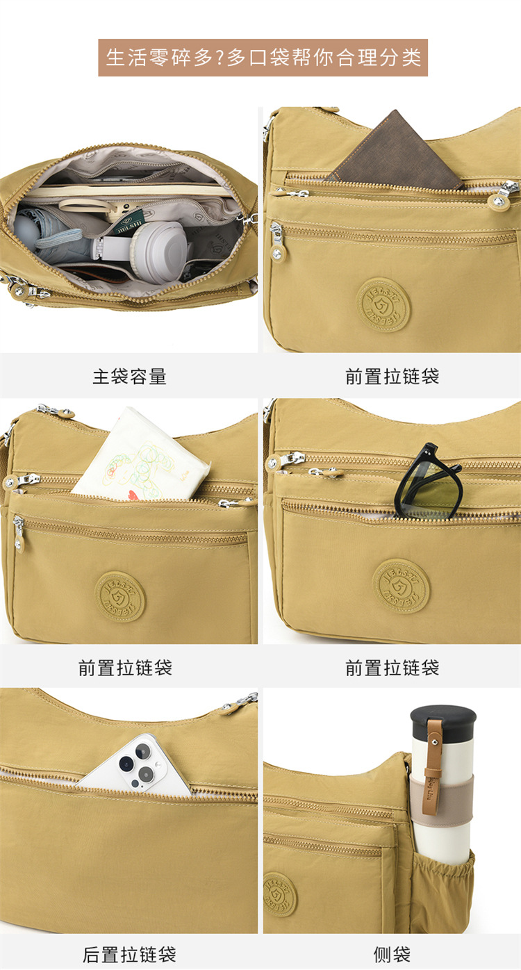 2025新时尚饺子包休闲防水尼龙布单肩斜挎包大容量多隔层通勤包女