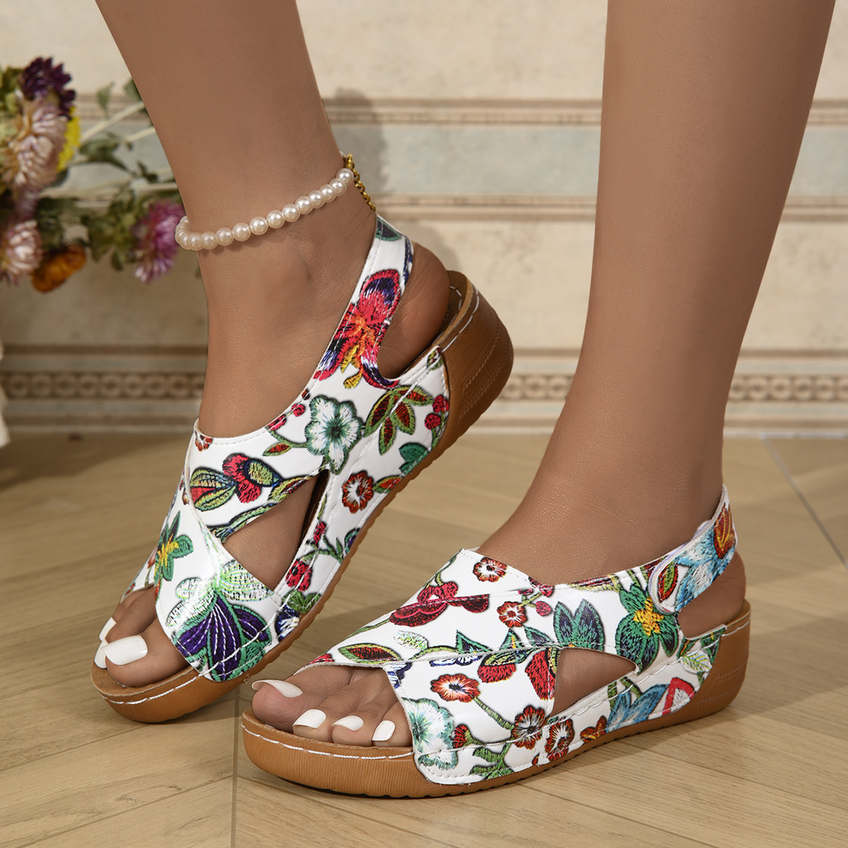 欧美罗马凉鞋女2024年夏季新款松糕厚底配裙子休闲露趾百搭沙滩凉