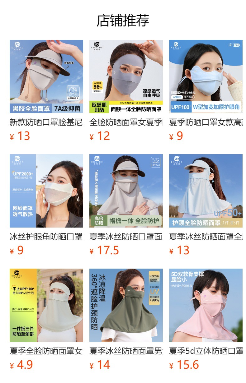 夏季防晒口罩女高颜值锦纶护眼角UPF100显瘦防紫外线冰丝防晒面罩
