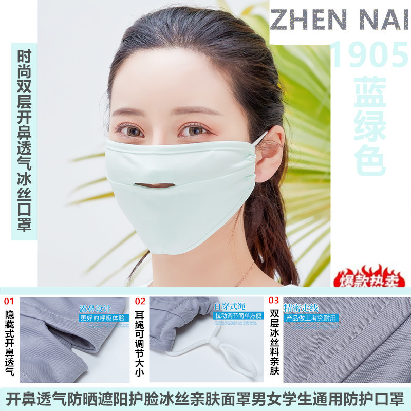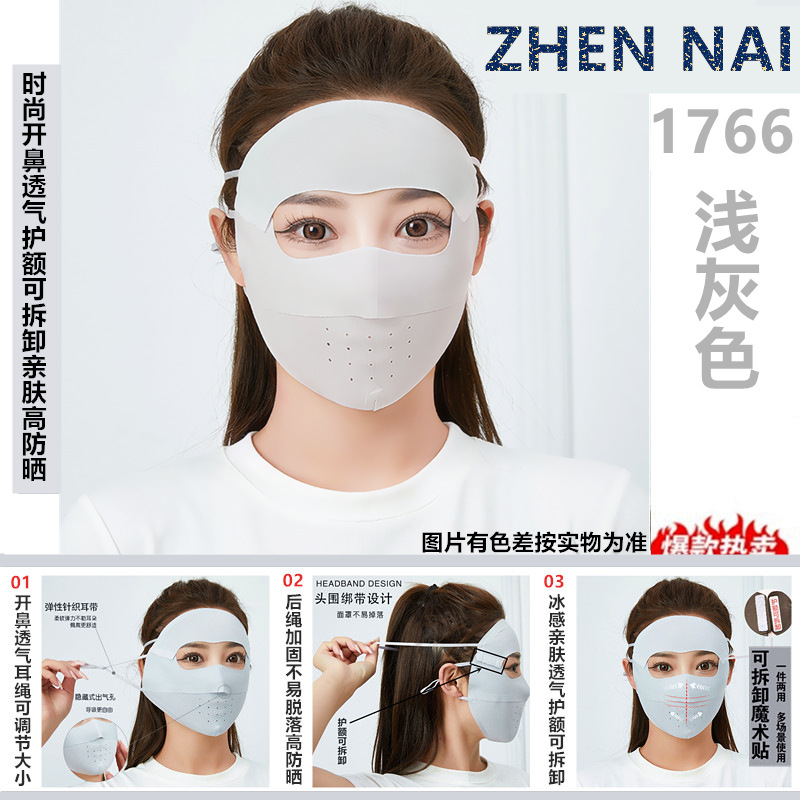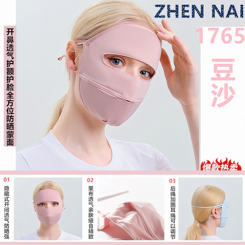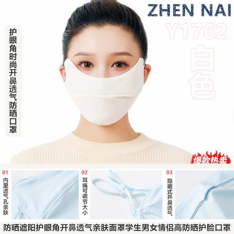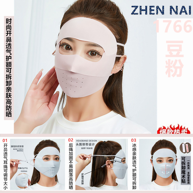 夏季防晒冰丝口罩女户外骑行遮阳防紫外线护眼角开鼻透气护脸面罩