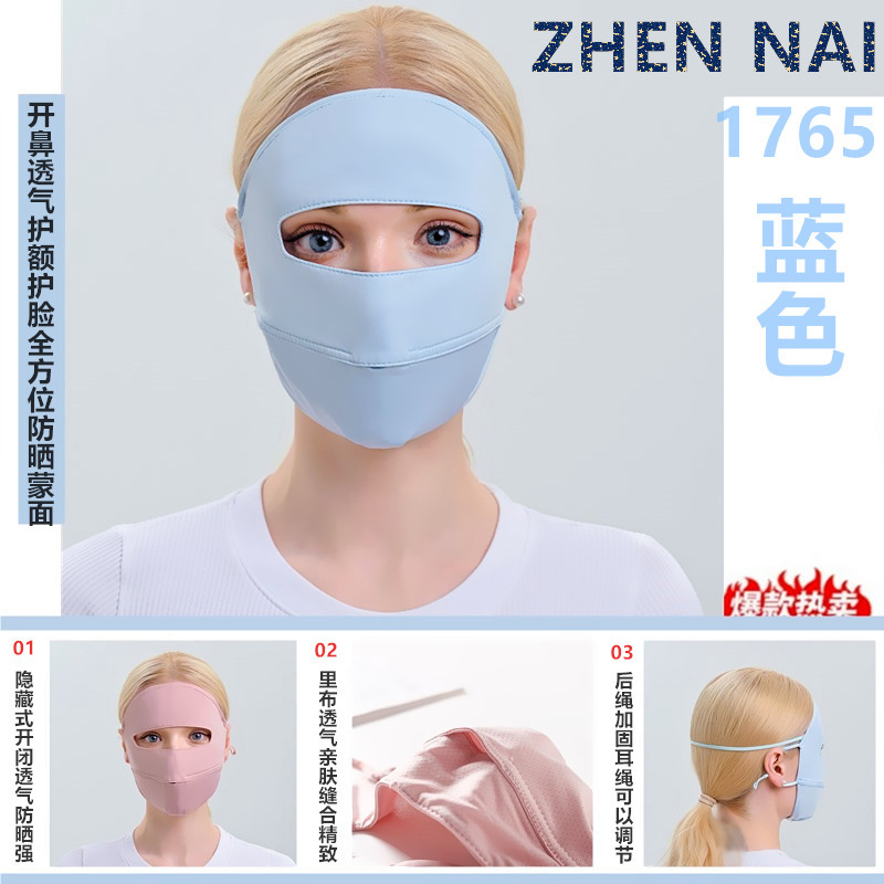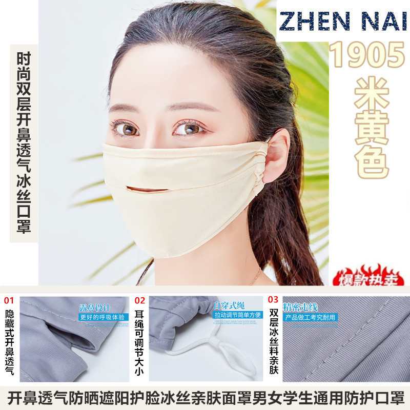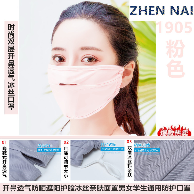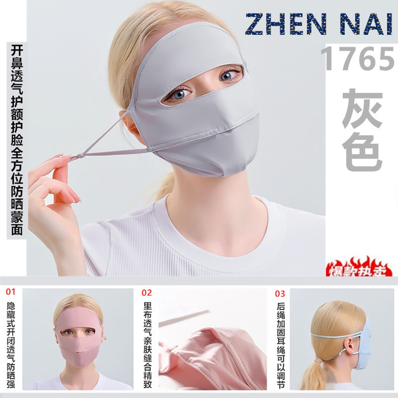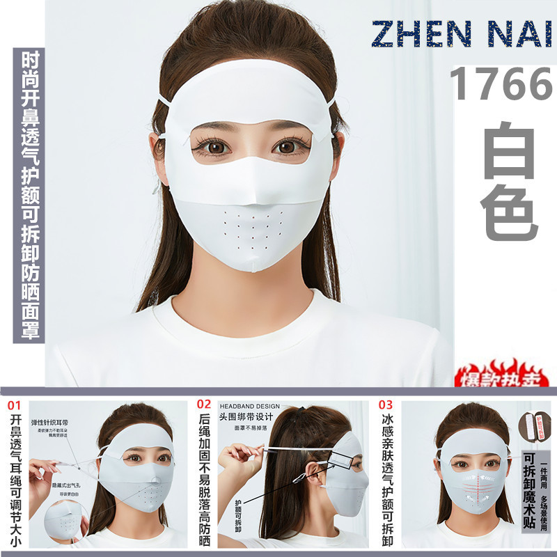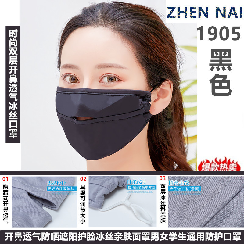 夏季防晒冰丝口罩女户外骑行遮阳防紫外线护眼角开鼻透气护脸面罩