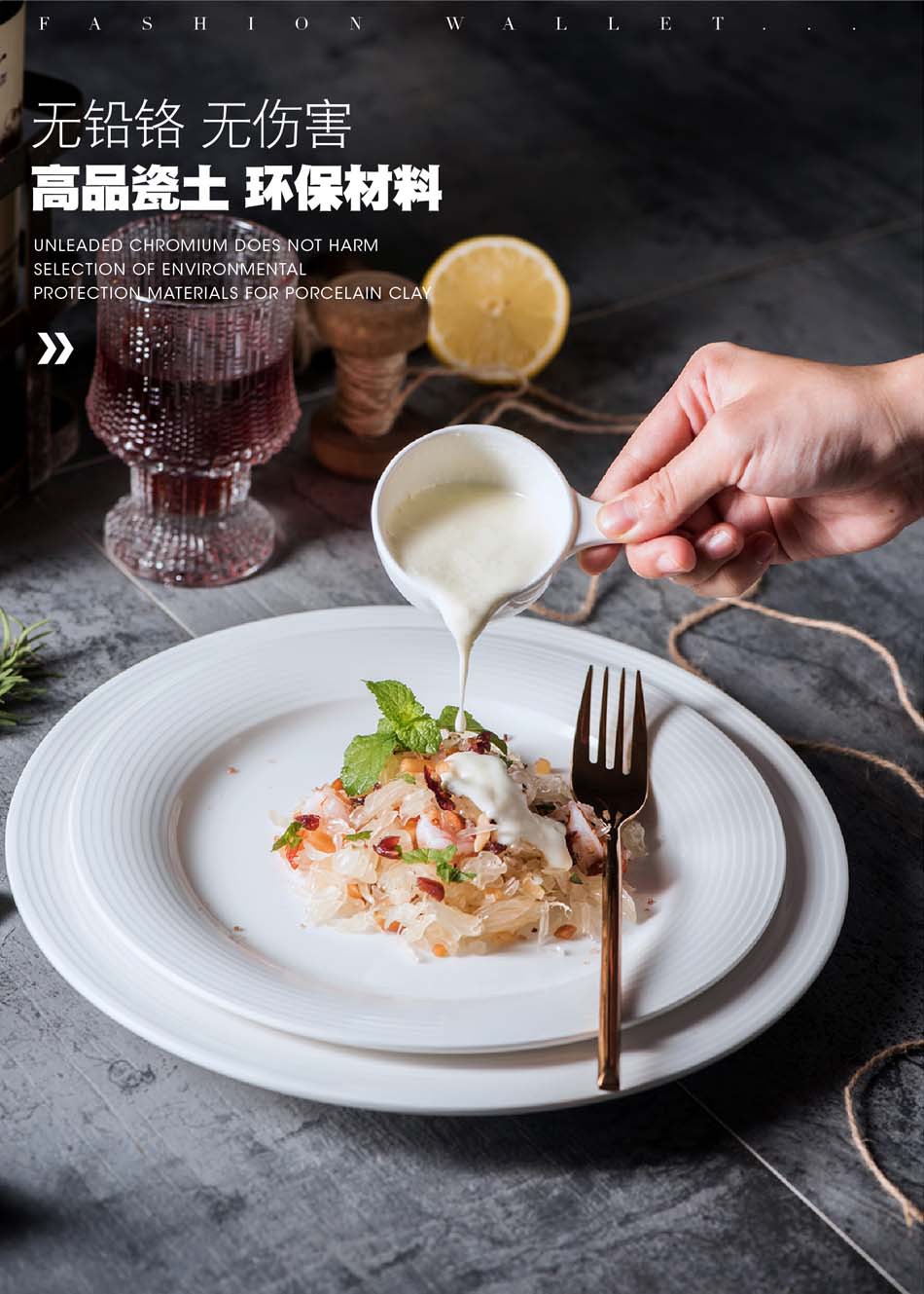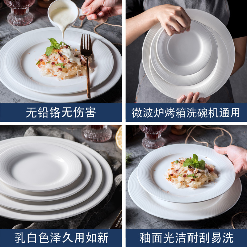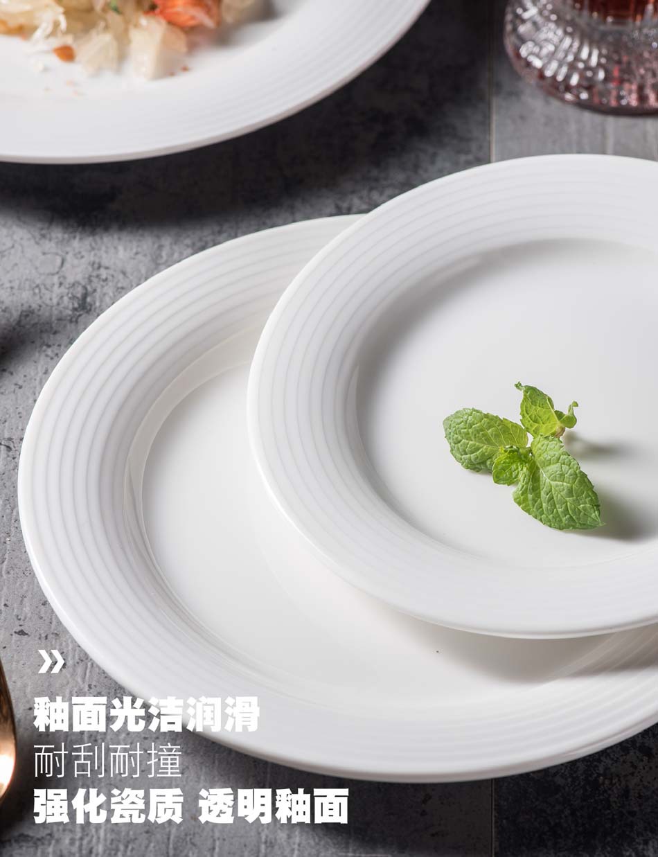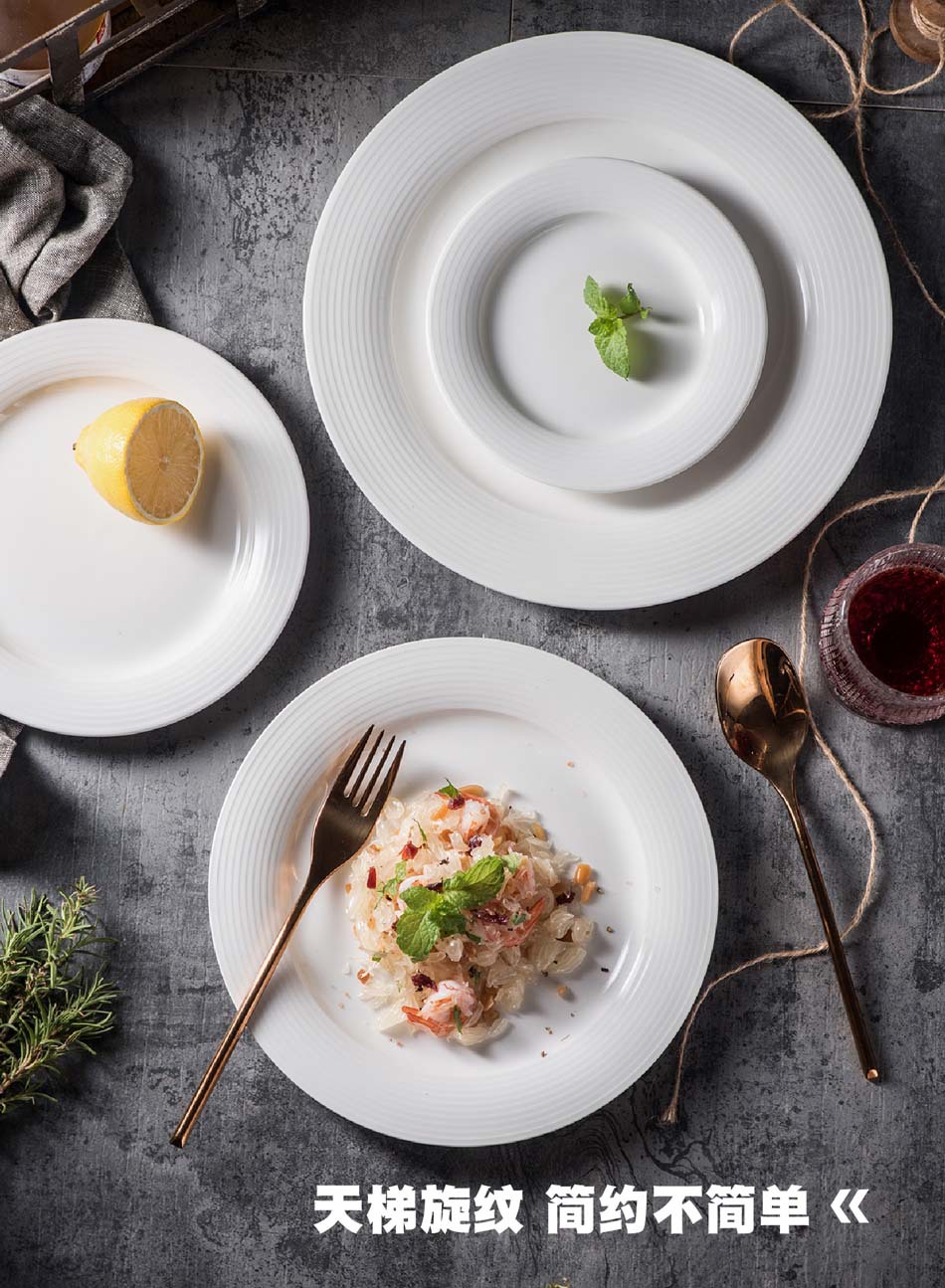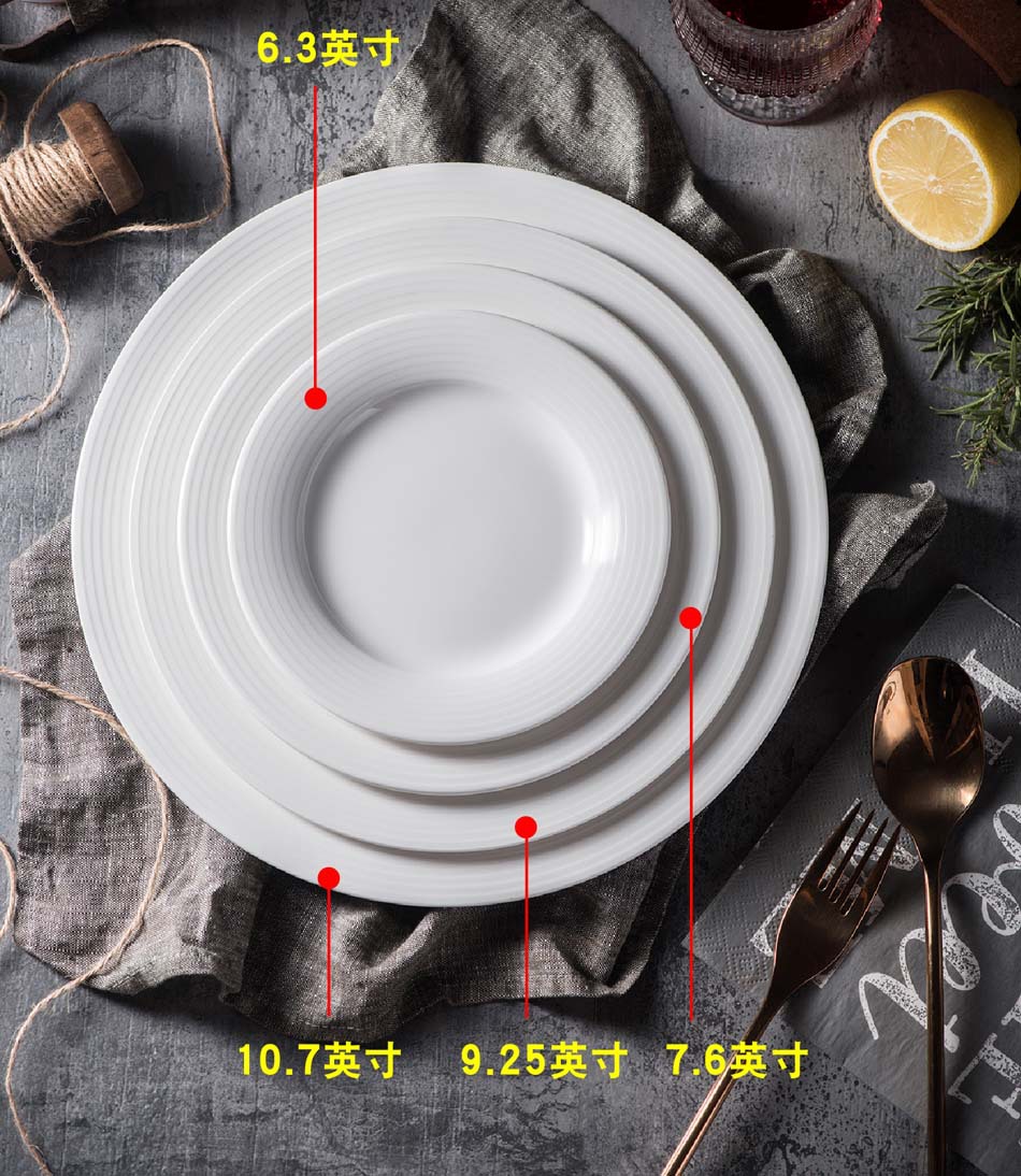 创意纯白浅式圆形螺纹陶瓷盘子西餐盘牛排意面盘平盘陶瓷餐具可制