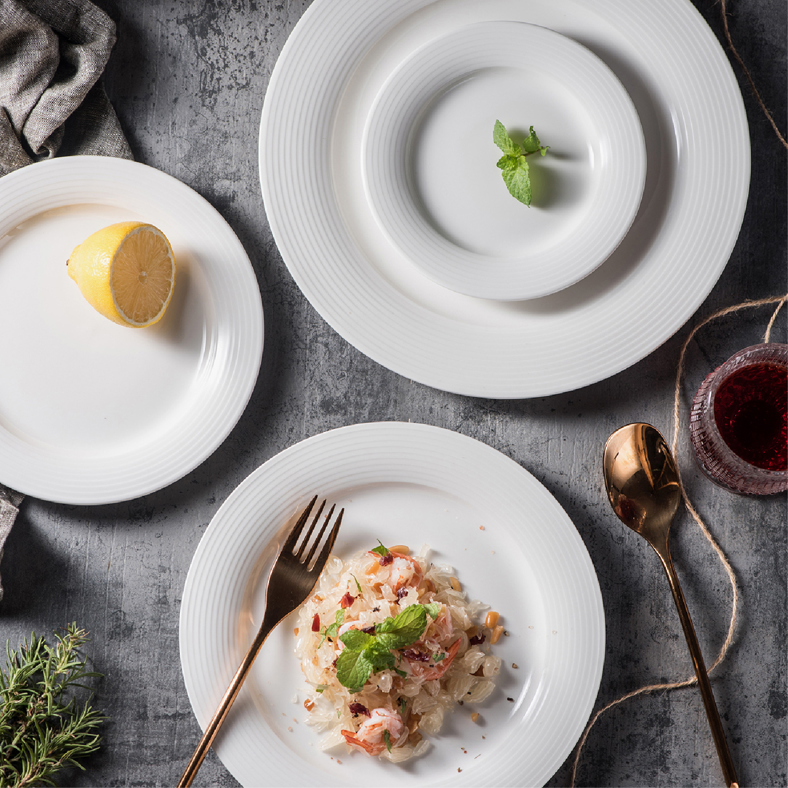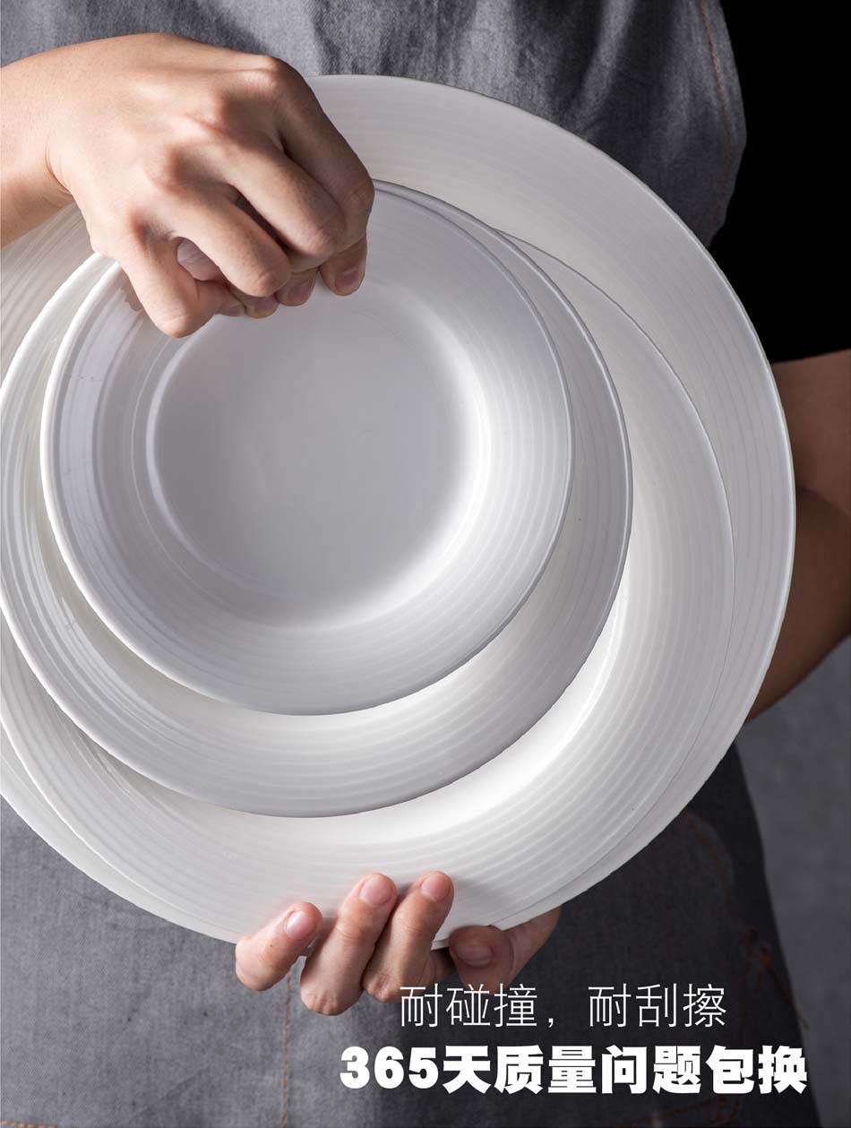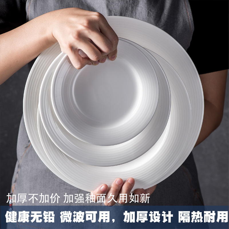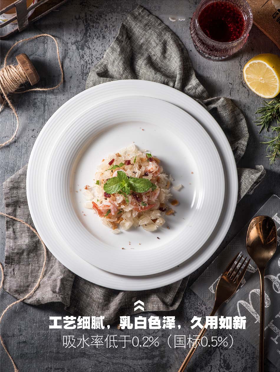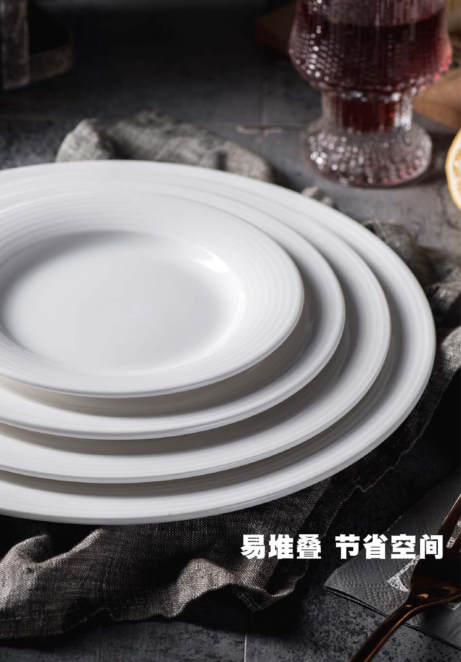 创意纯白浅式圆形螺纹陶瓷盘子西餐盘牛排意面盘平盘陶瓷餐具可制