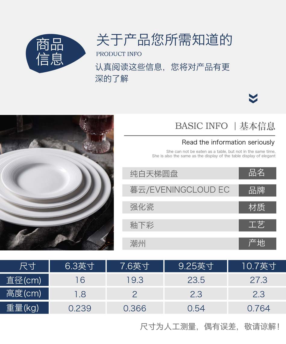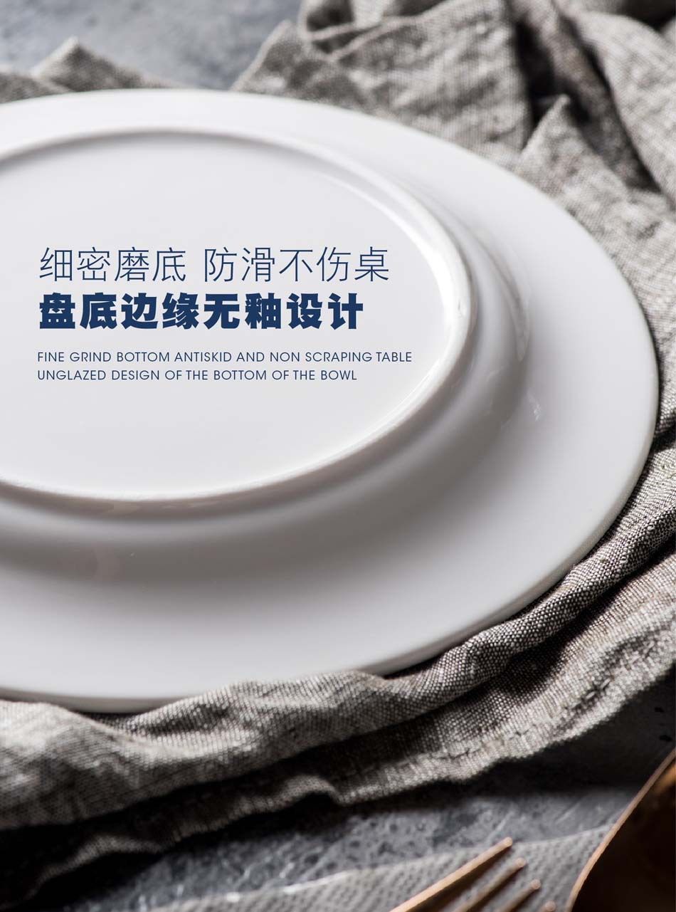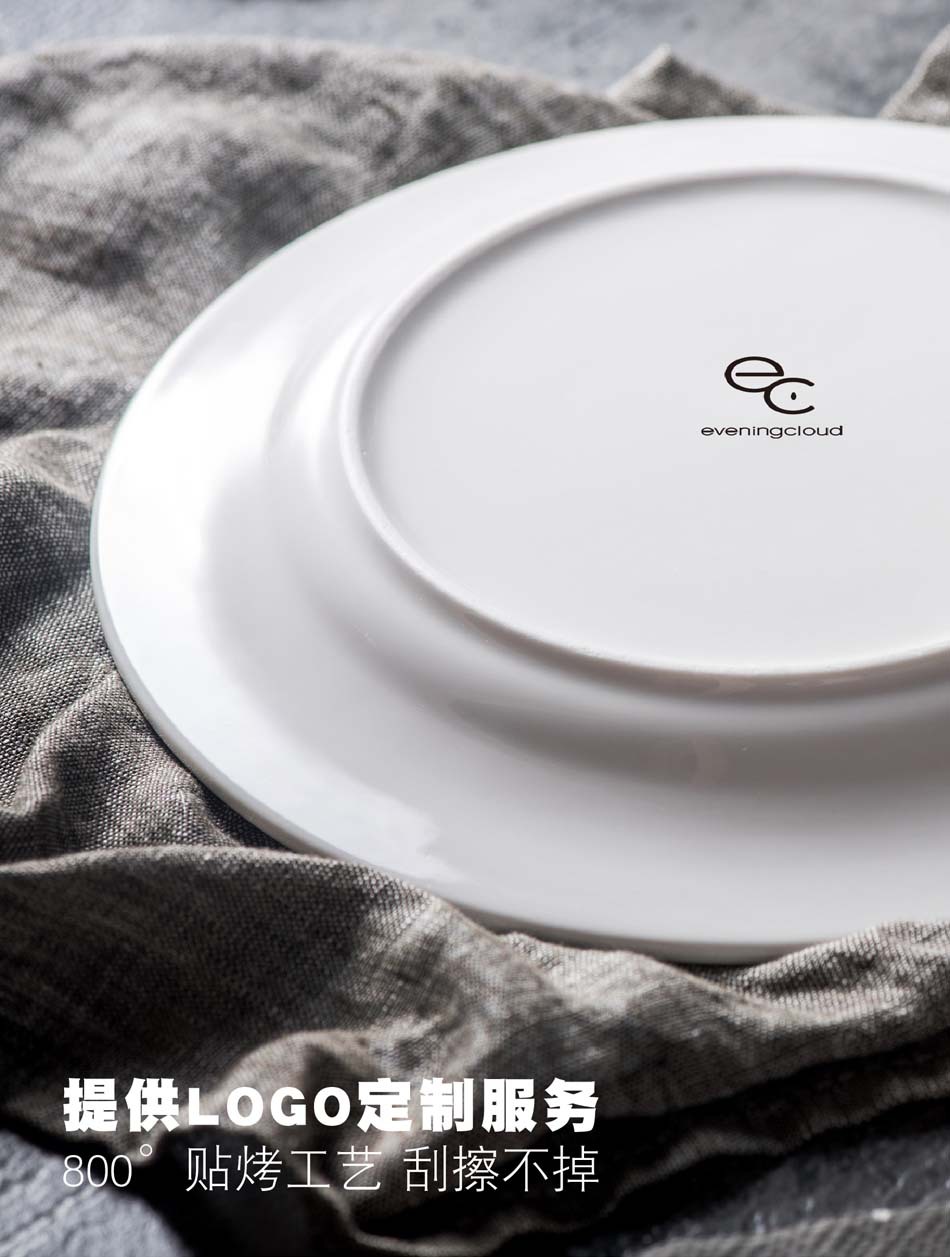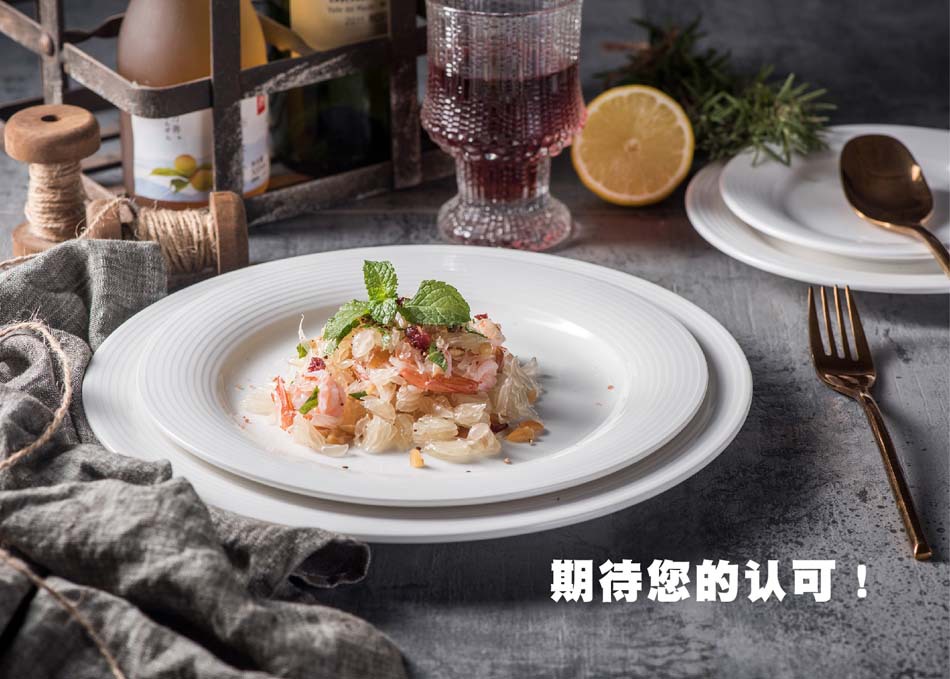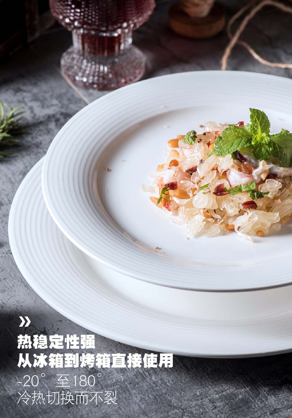 创意纯白浅式圆形螺纹陶瓷盘子西餐盘牛排意面盘平盘陶瓷餐具可制