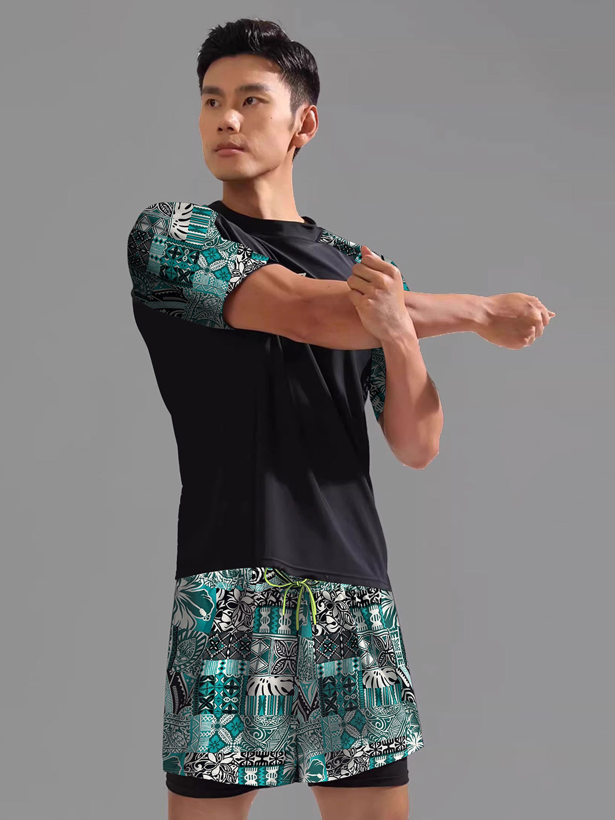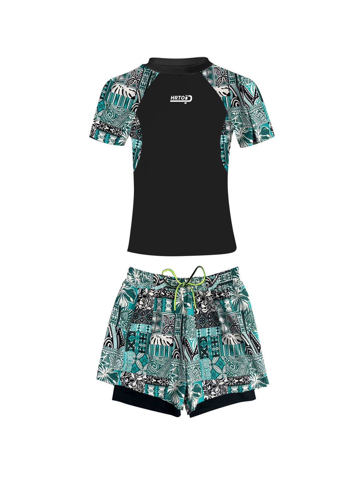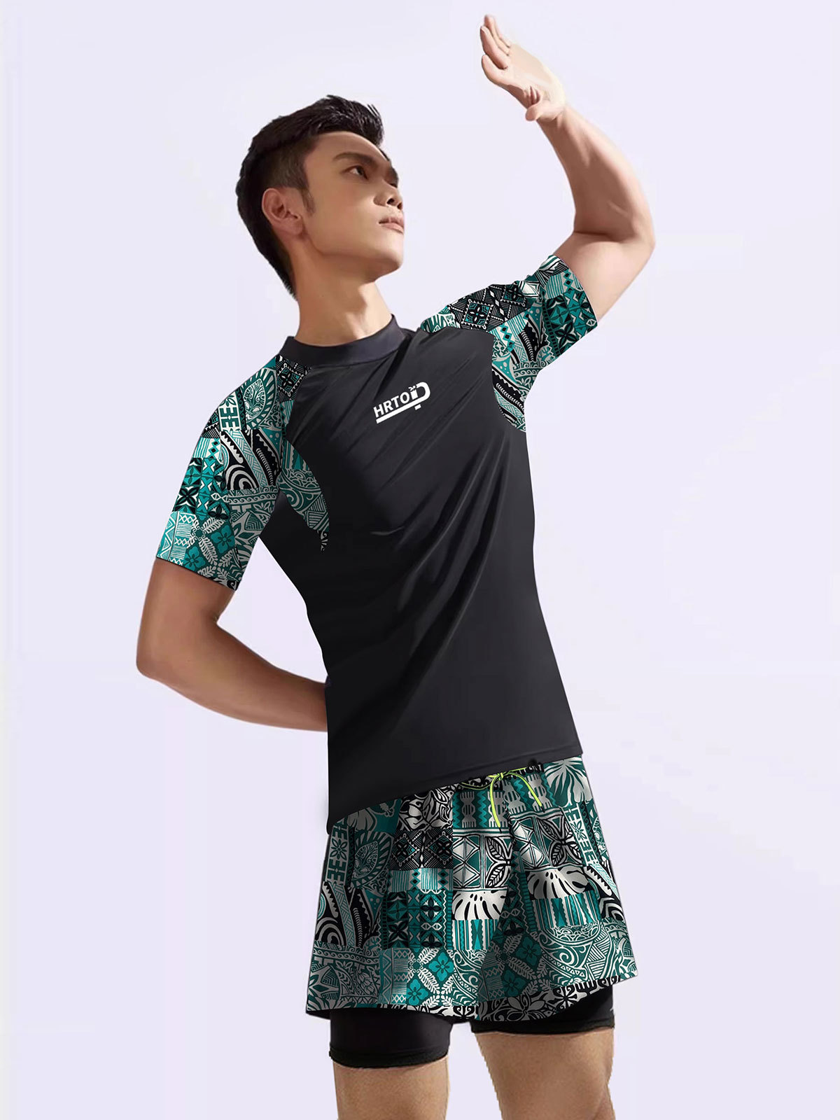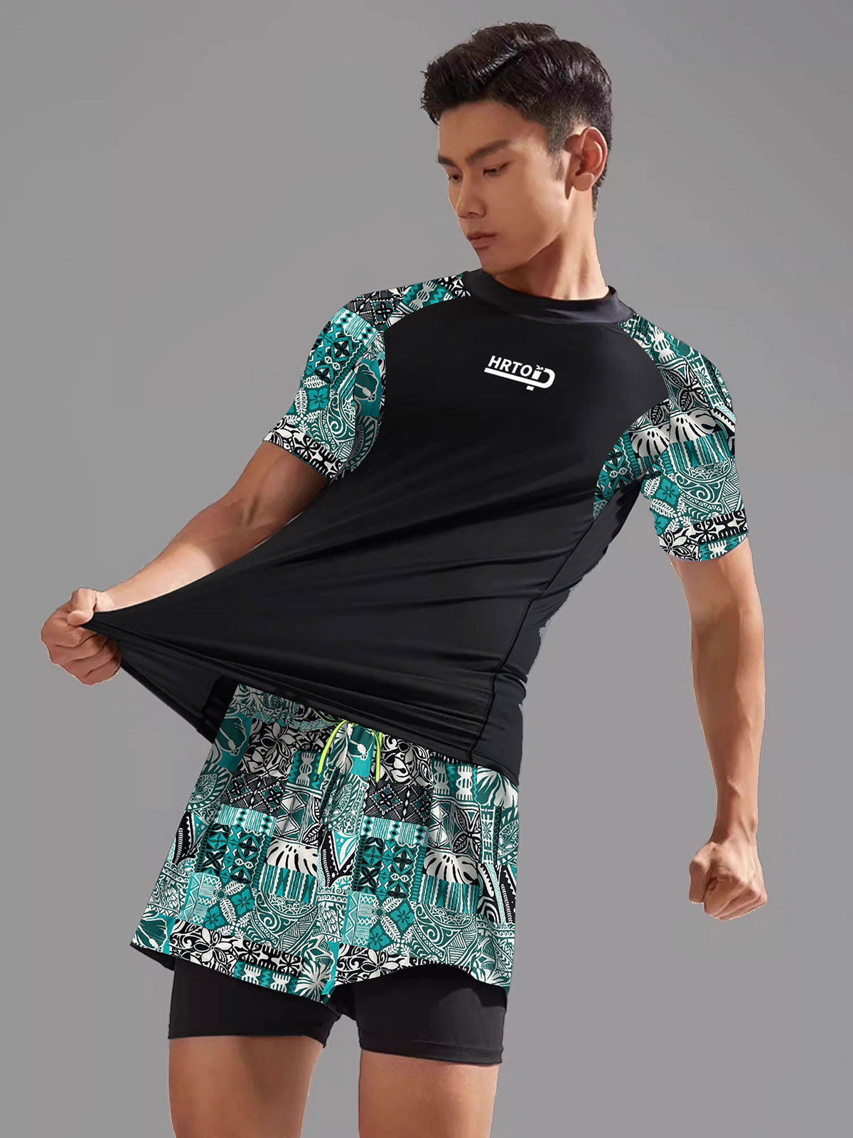 虎润男士泳衣套装2024年新款双层防尴尬大码宽松泳裤沙滩度假泳装