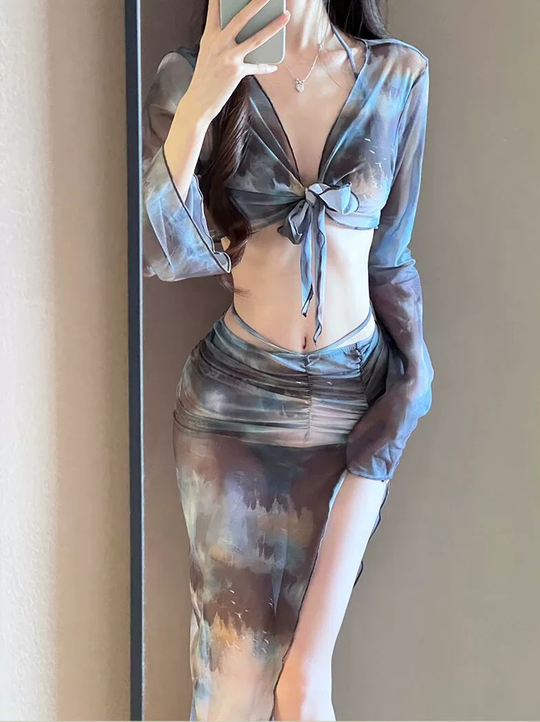 比基尼泳衣女2024新款分体四件套长裙性感欧美修身显瘦泡温泉度假