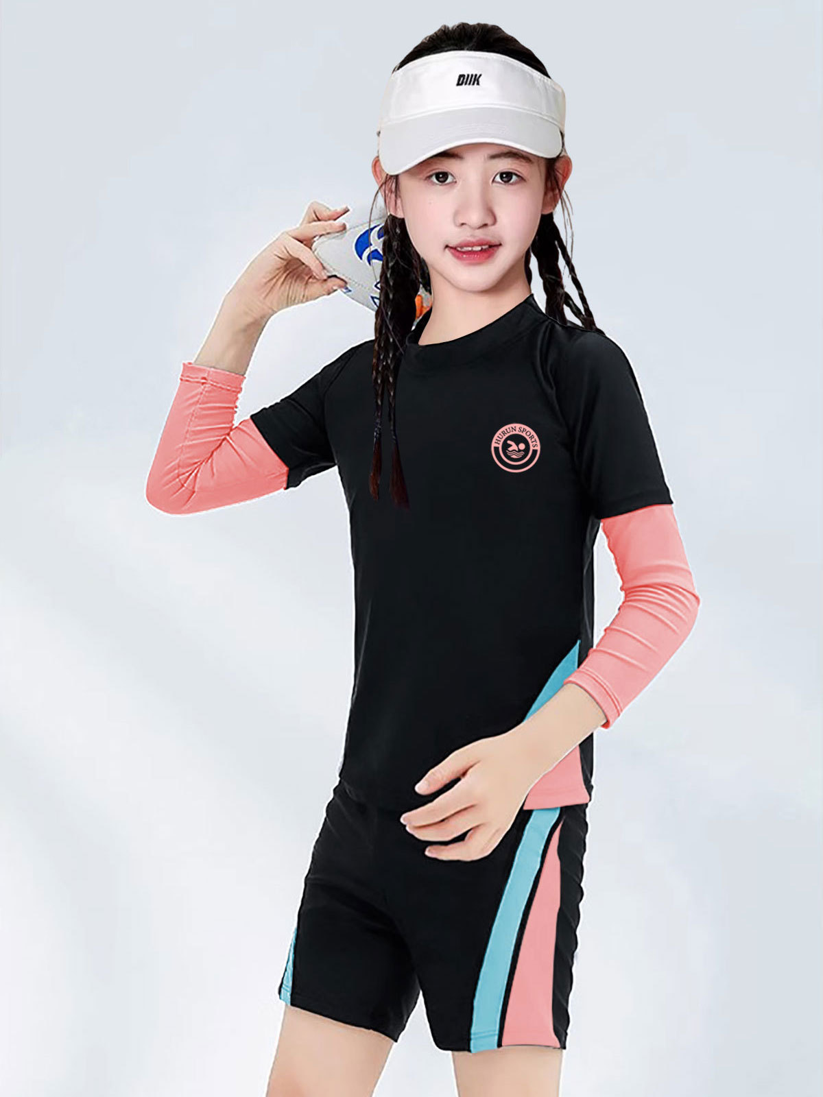 青少年儿童泳衣分体专业训练游泳衣男女中大童女孩带胸垫泳装套装