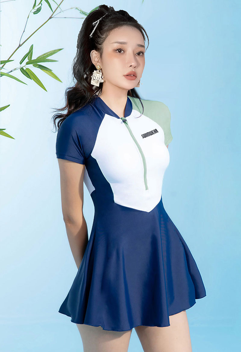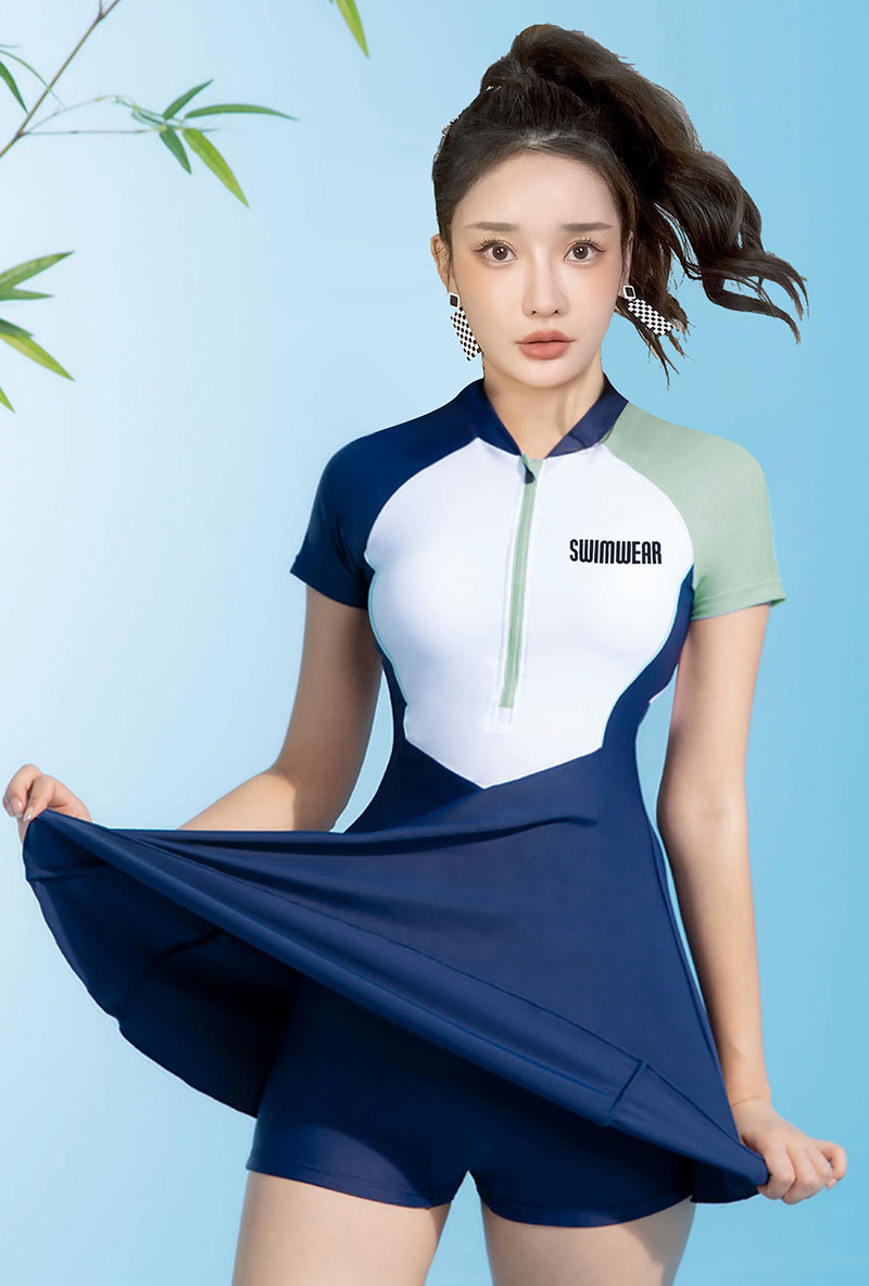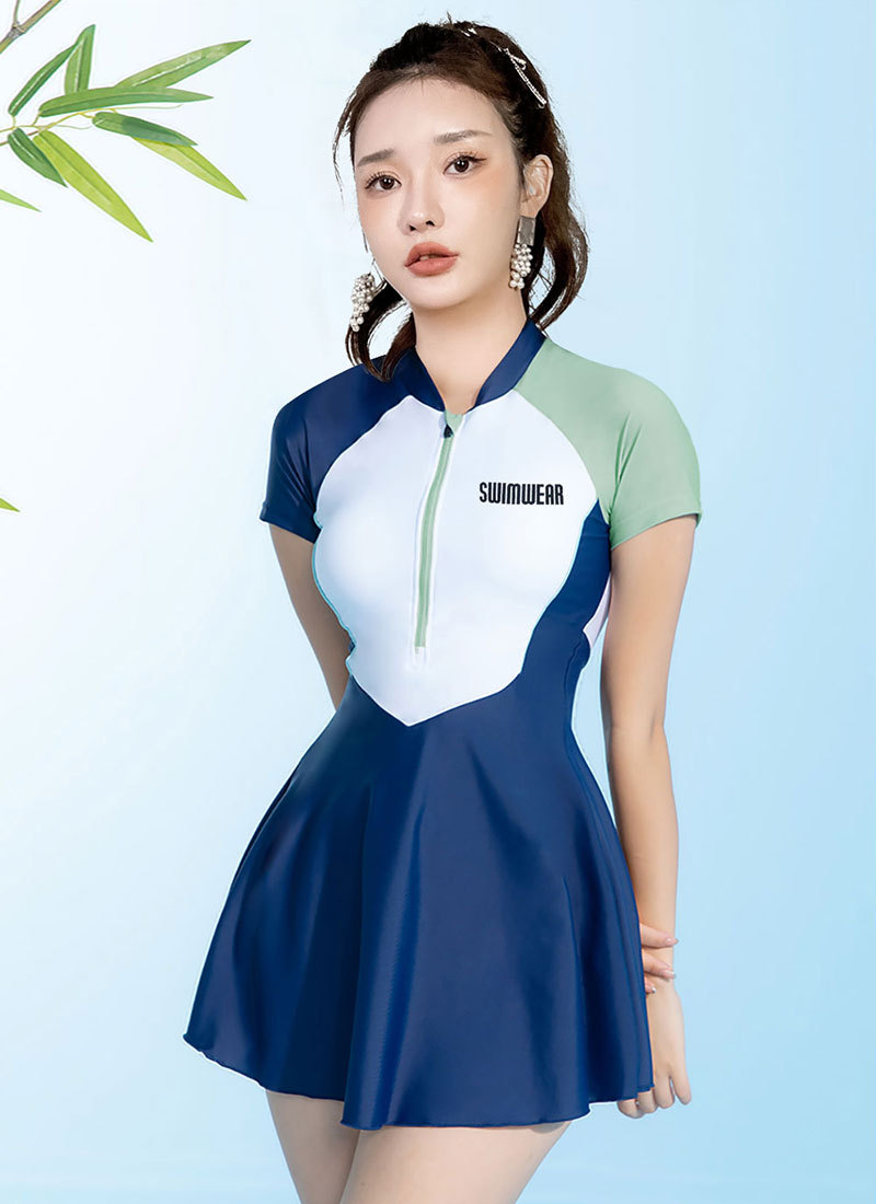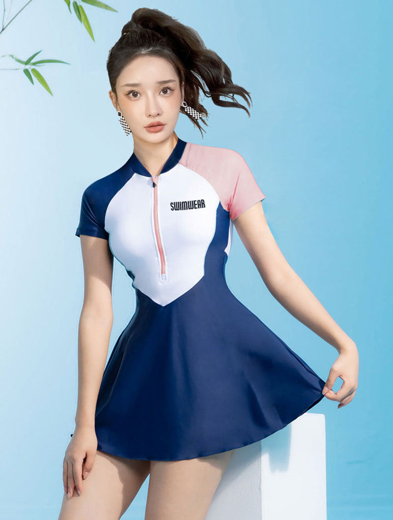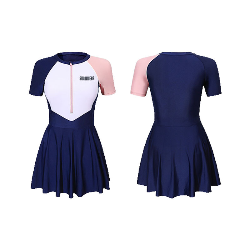 虎润泳衣女士2023新款连体游泳衣短袖裙式保守泡温泉运动大码泳装