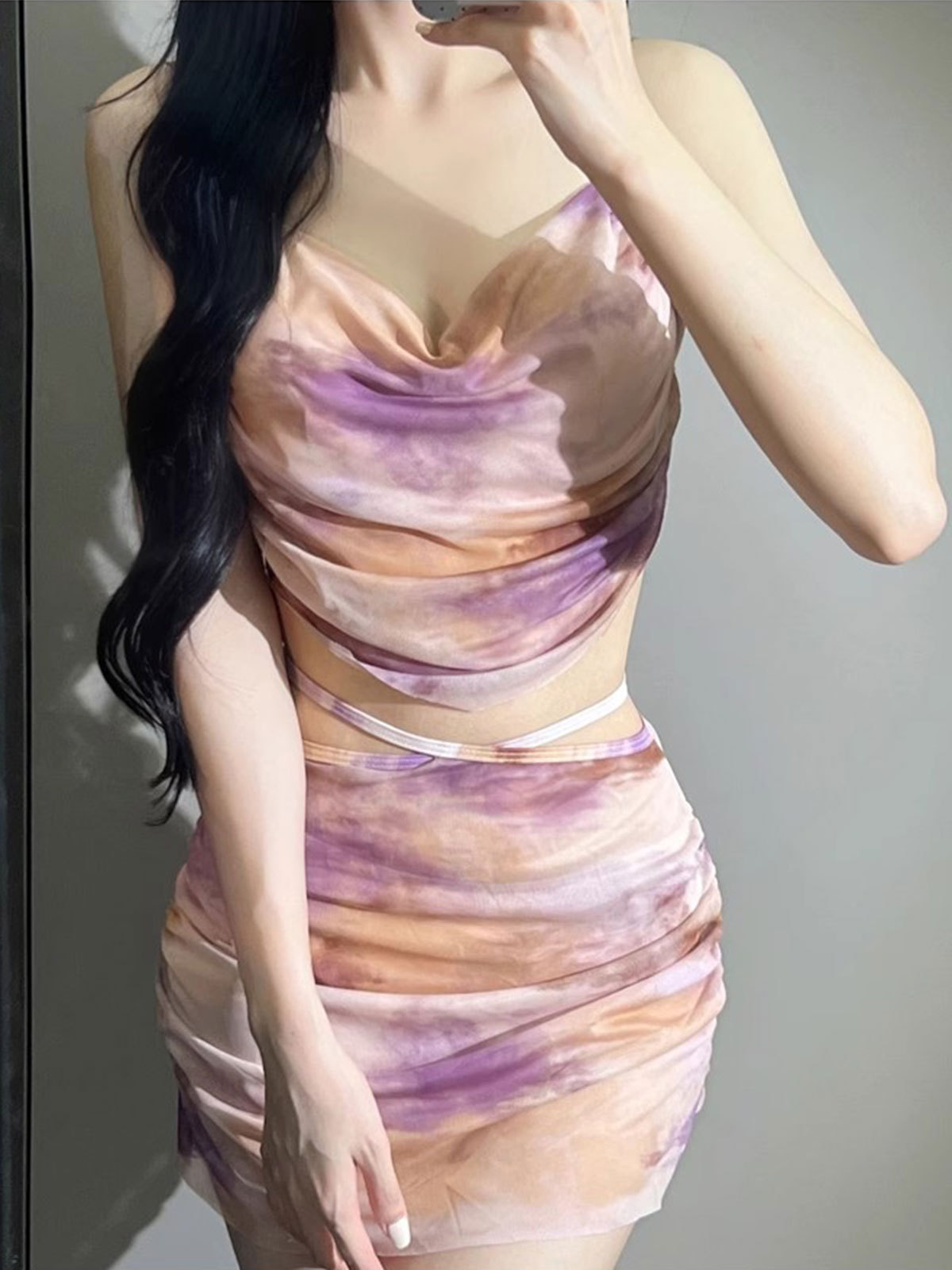 泳衣女泡温泉复古甜妹小胸聚拢分体三件套少女保守显瘦遮肉ins风