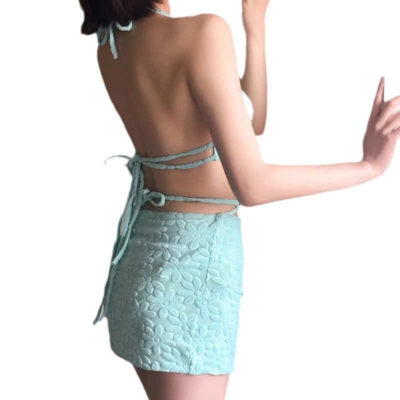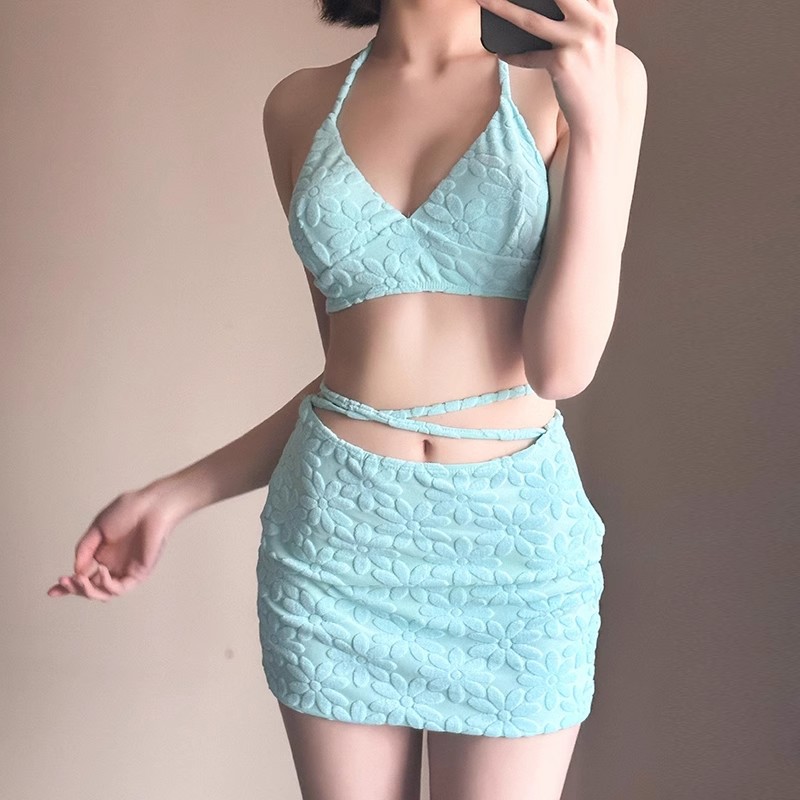 新款毛巾料显白沙滩度假泡温泉比基尼分体泳衣女遮肚显瘦性感辣妹