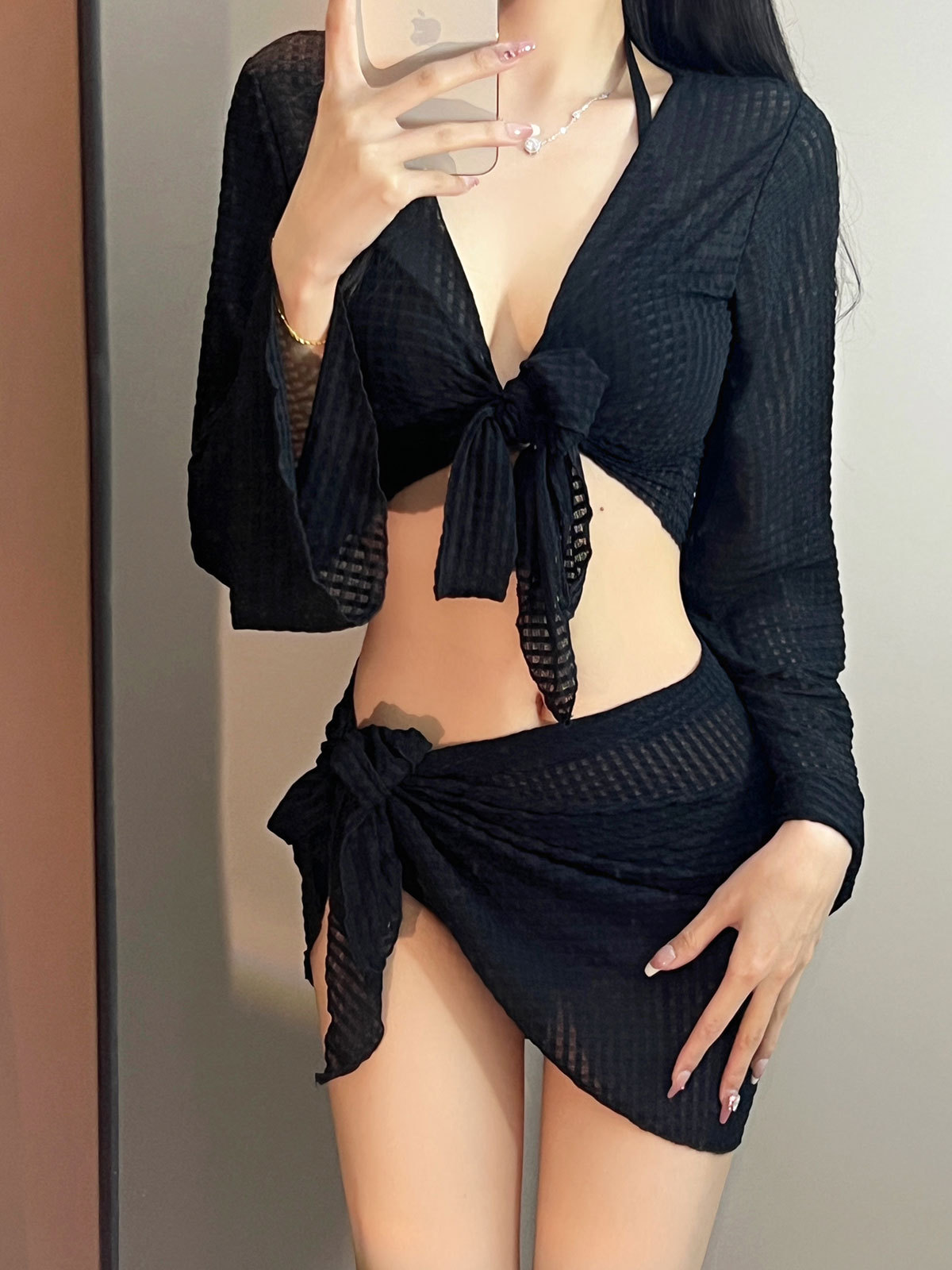 比基尼泳衣女2024新款四件套白色性感潮裙式分体泳衣三亚度假温泉