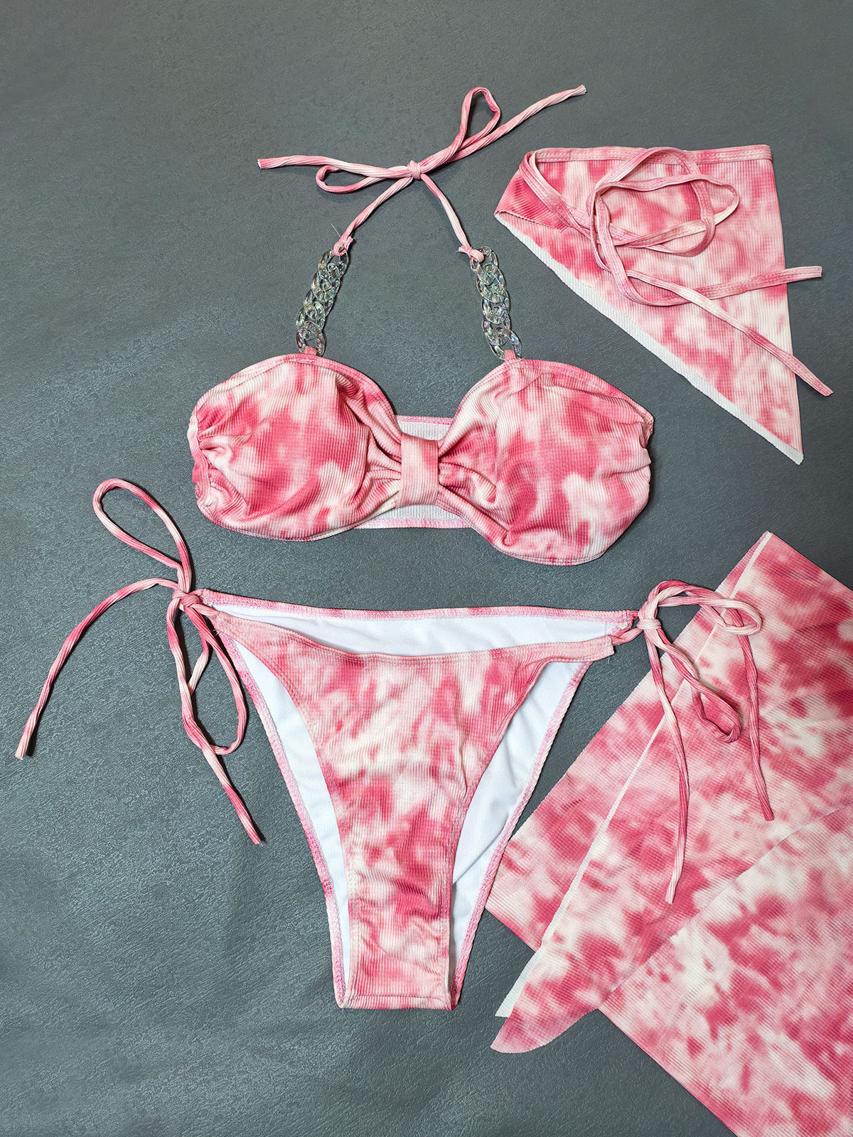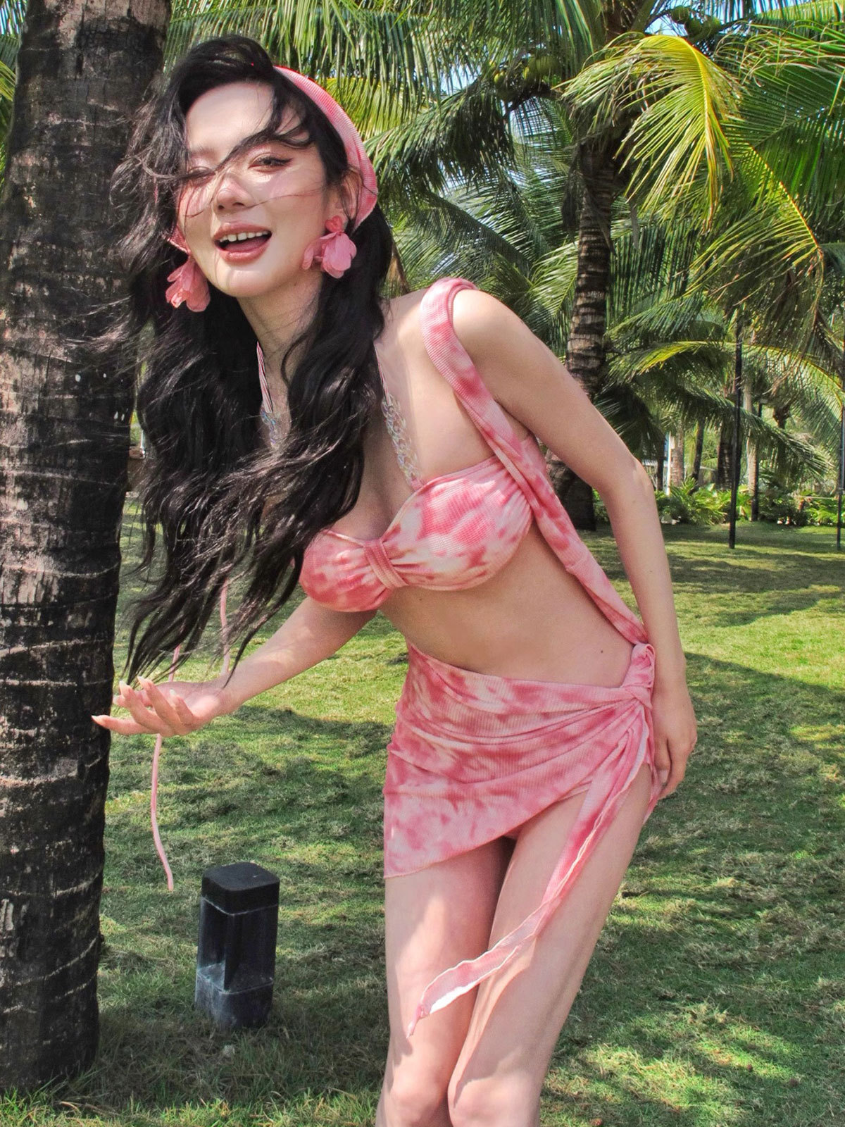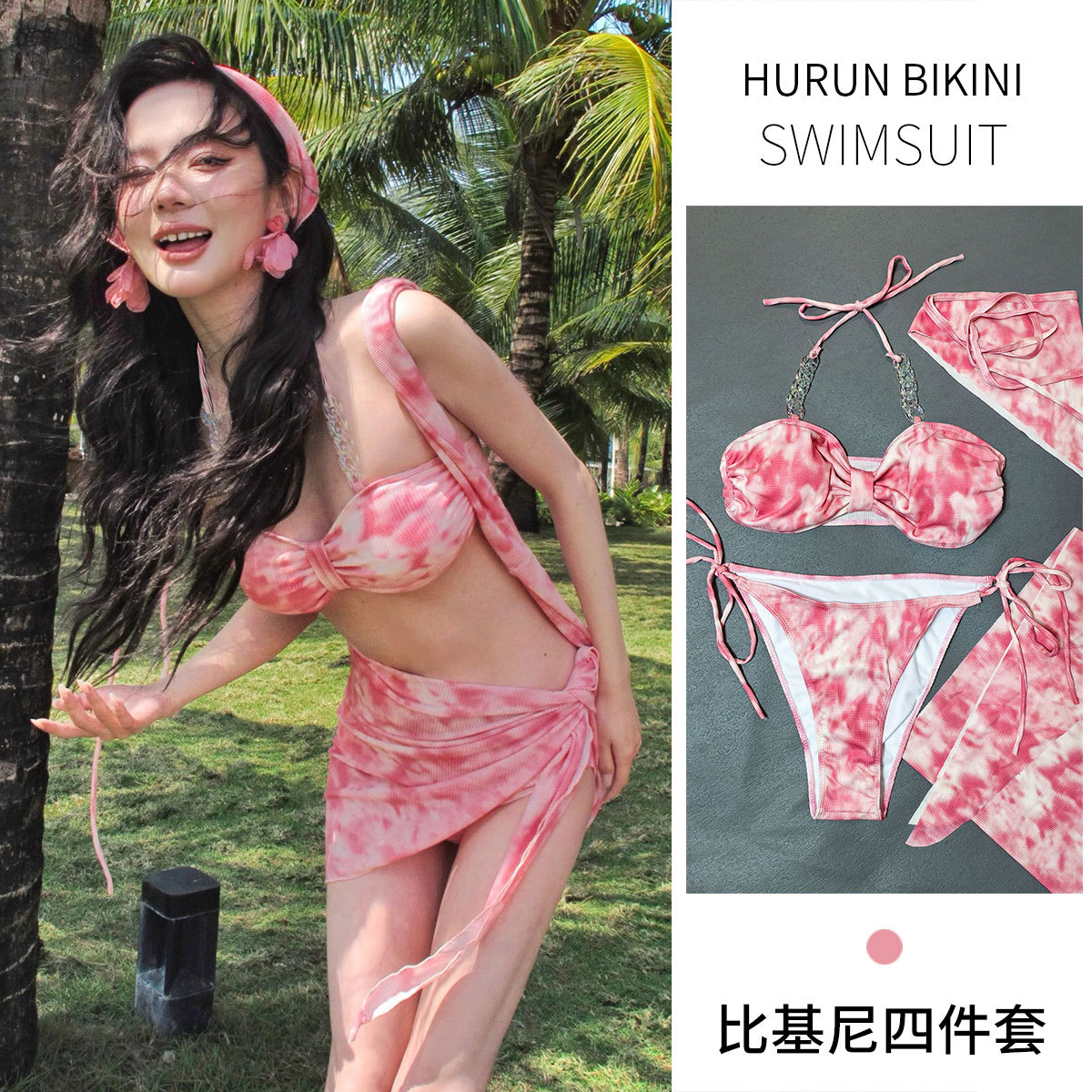 2025新款时尚性感绝美比基尼四件套裙式遮肚显瘦温泉沙滩度假泳衣