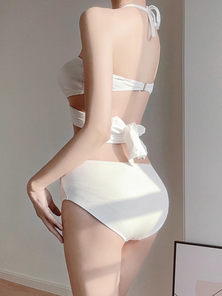 白色绑带性感辣妹比基尼泳衣女三点式泡温泉韩国ins小胸度假网红