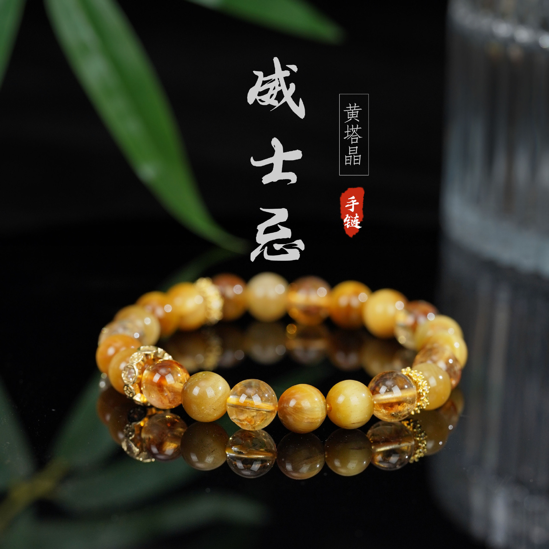 天然水晶黄虎眼石黄塔晶手串女转运珠手链原创夏送礼物