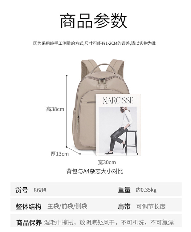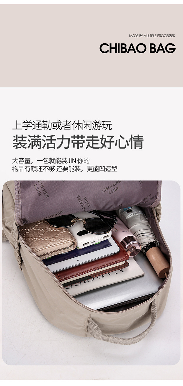 时尚简约双肩包女休闲大容量旅行背包中大学生书包减负轻便旅游包