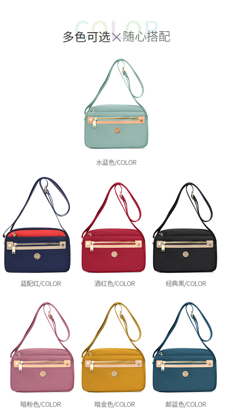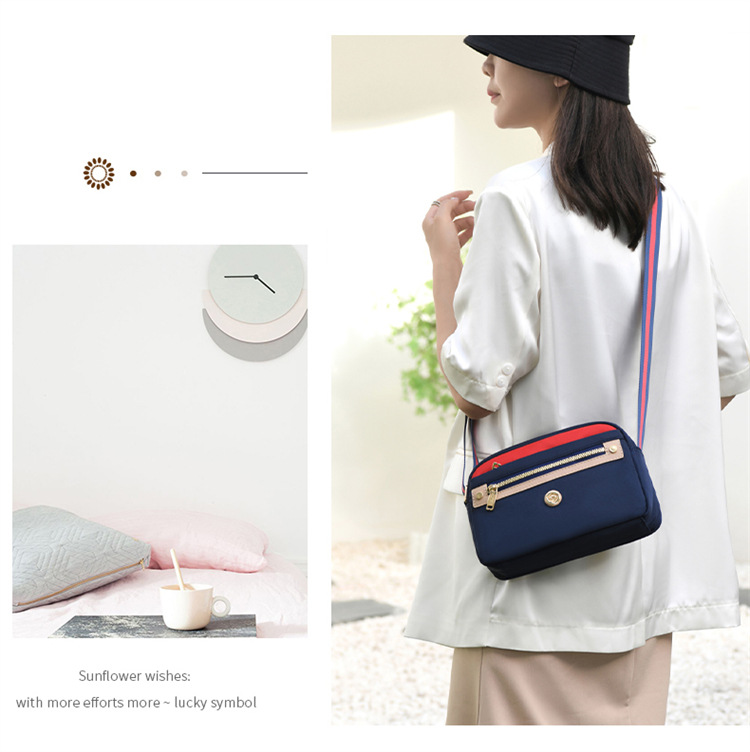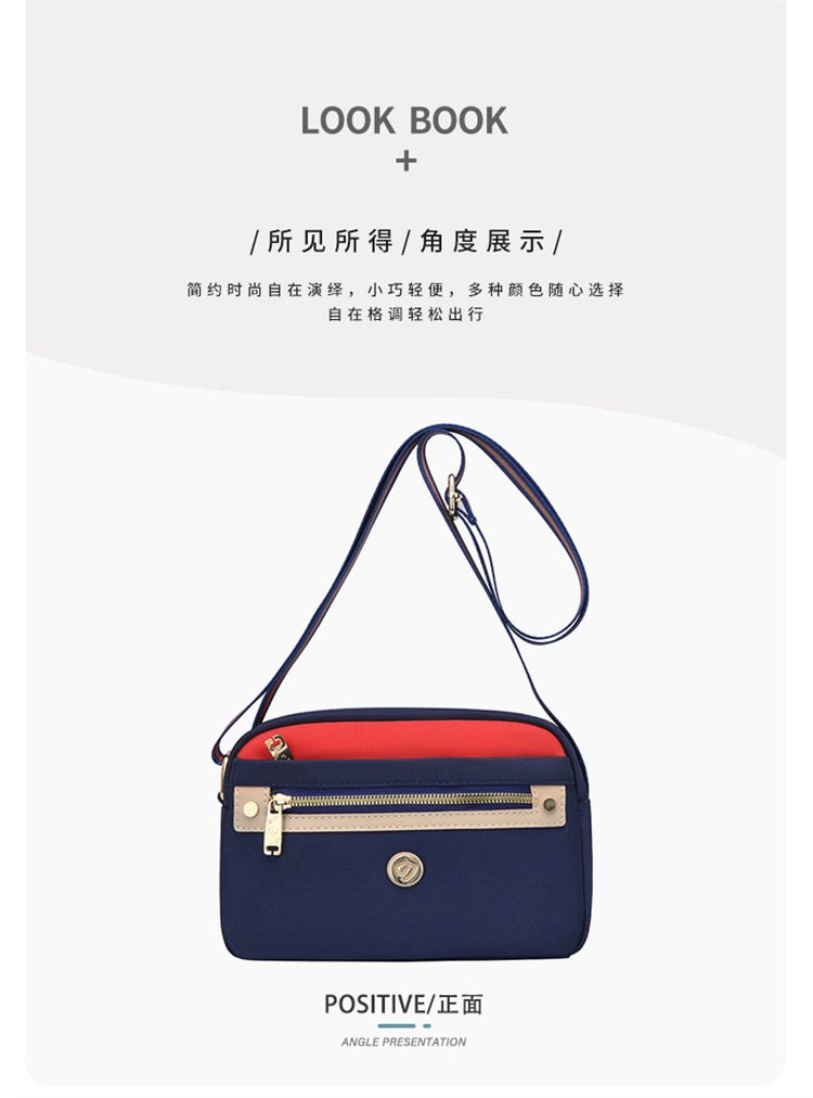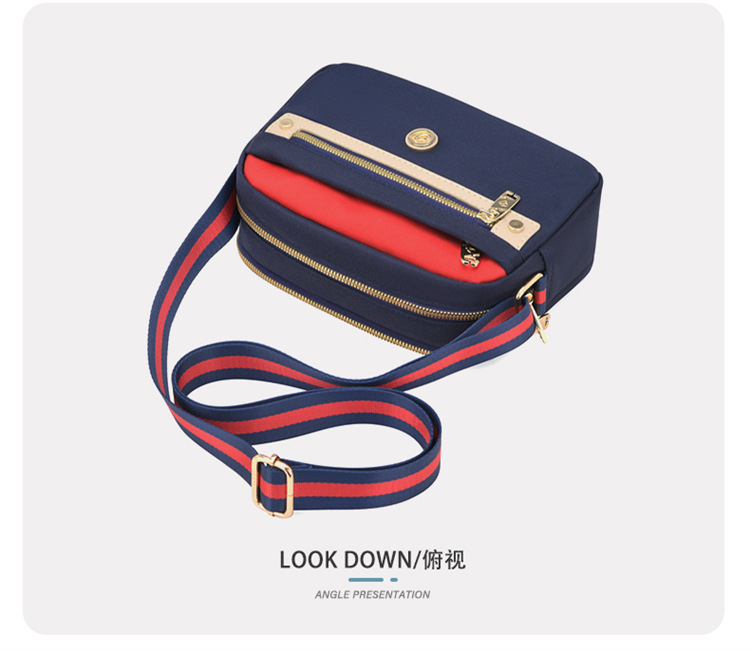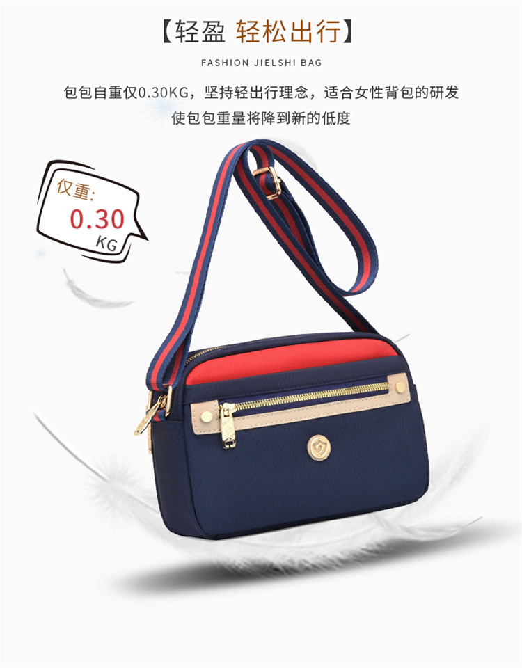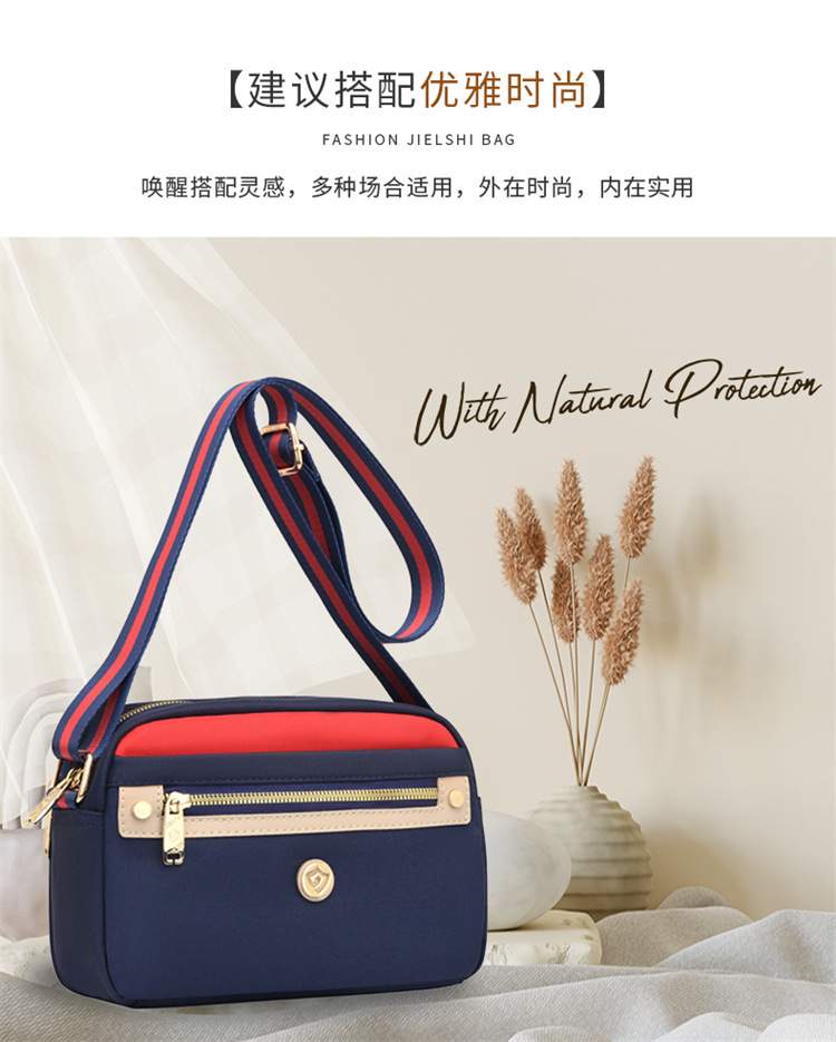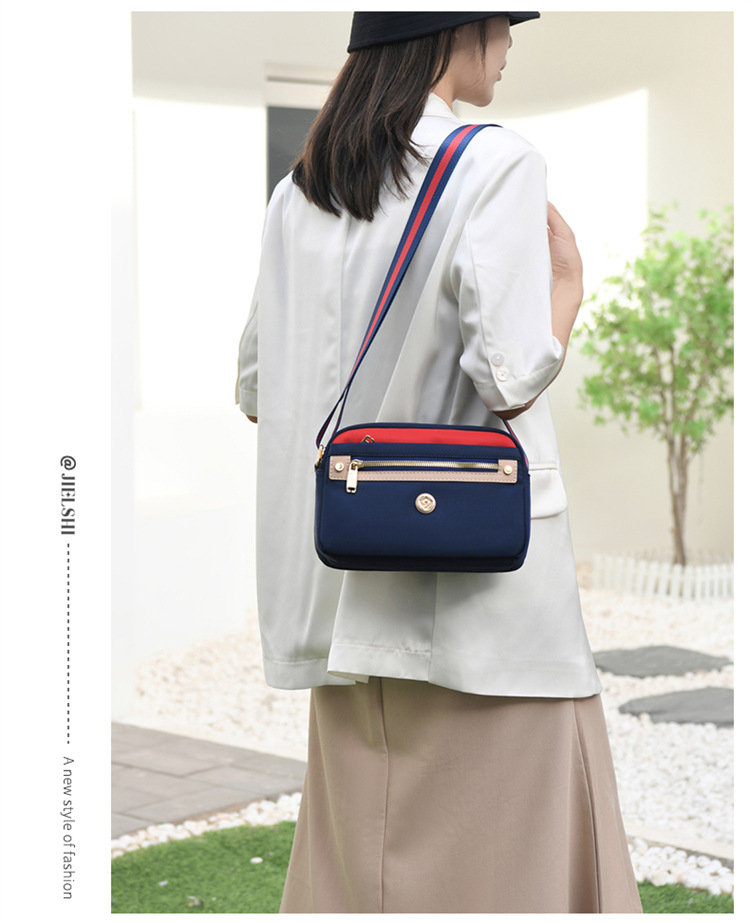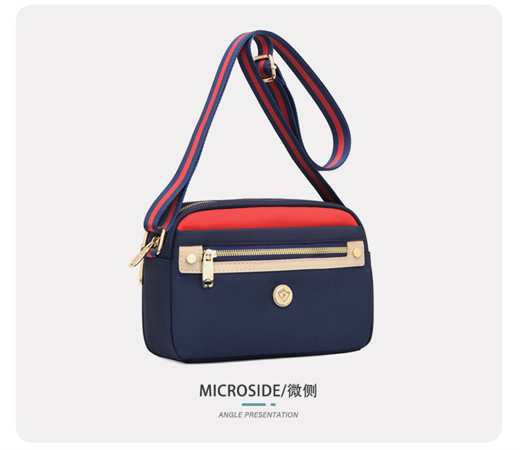 时尚斜挎包拼接撞色休闲单肩包女防水牛津布耐磨大容量多拉链