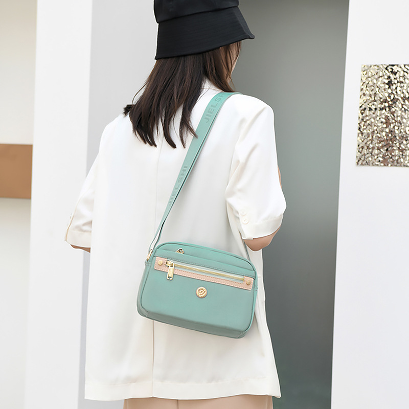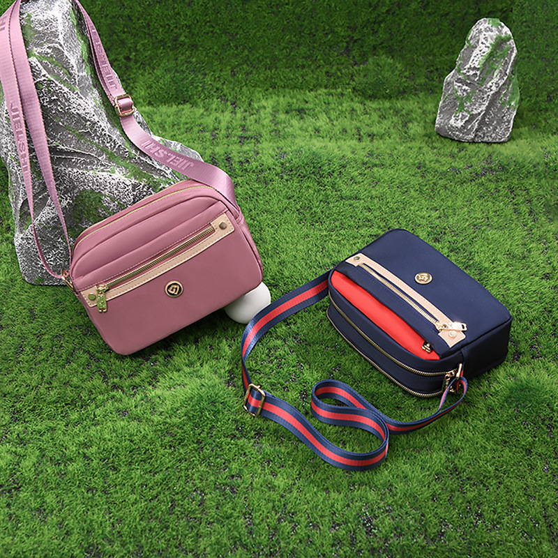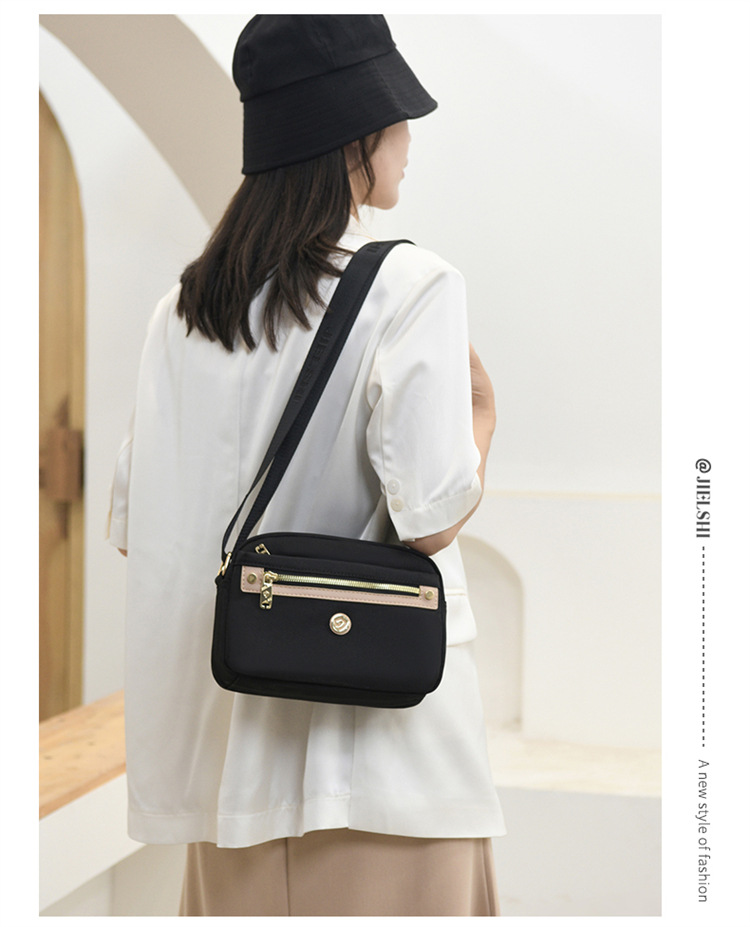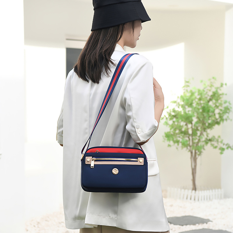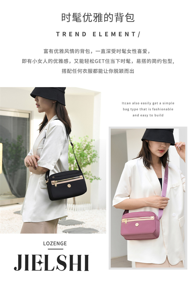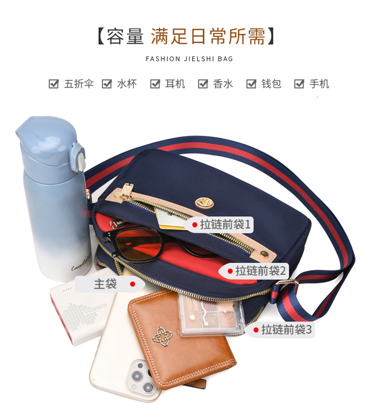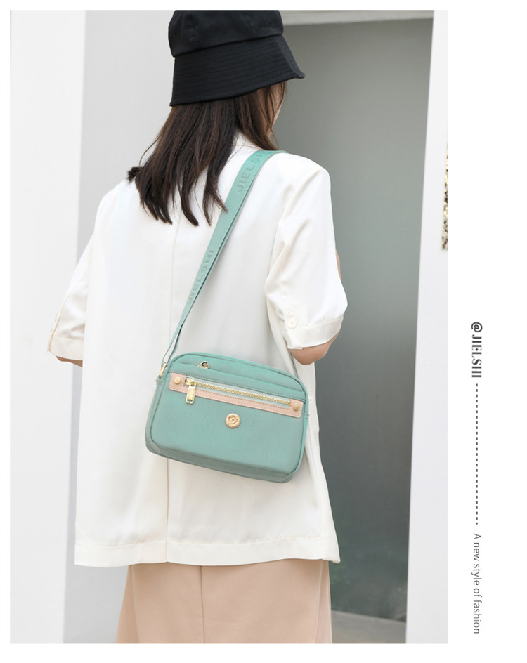 时尚斜挎包拼接撞色休闲单肩包女防水牛津布耐磨大容量多拉链