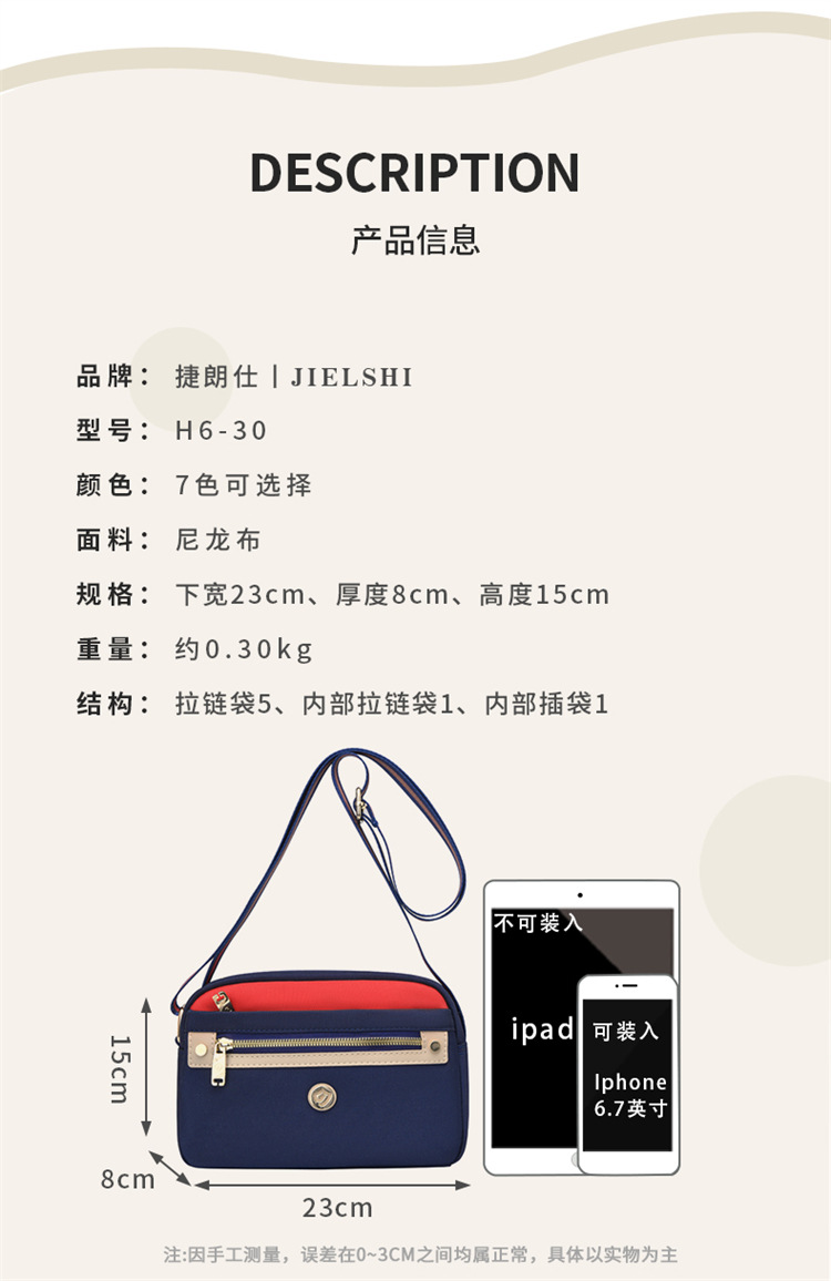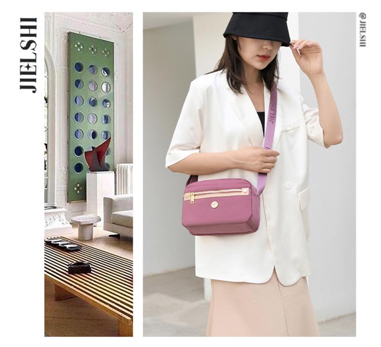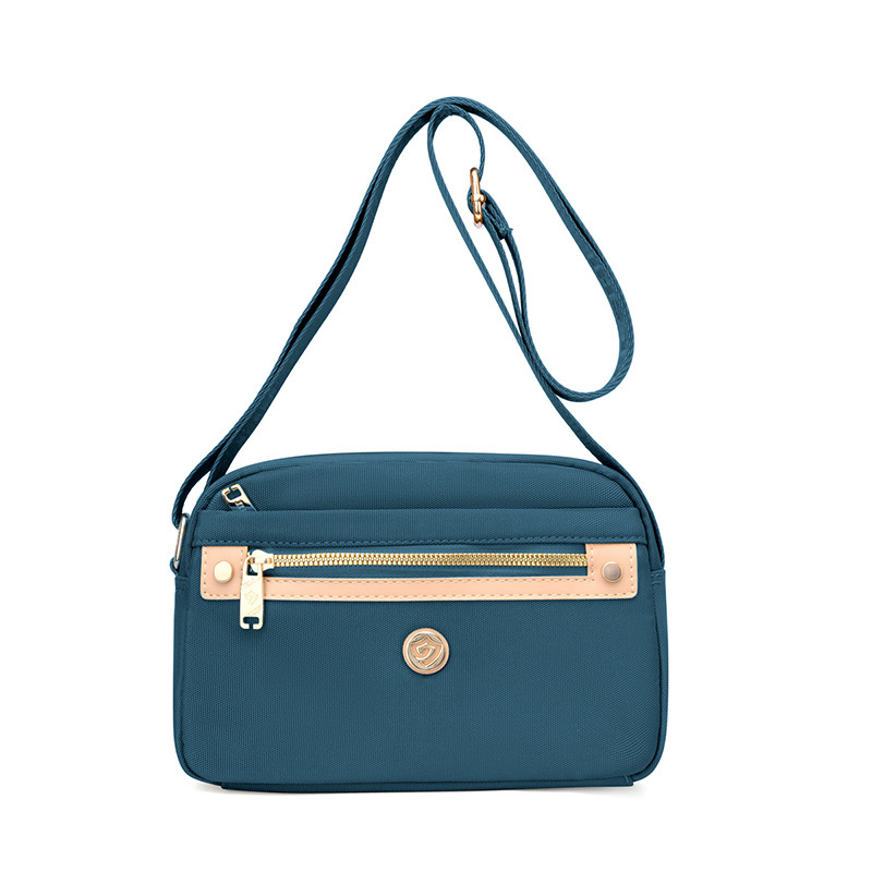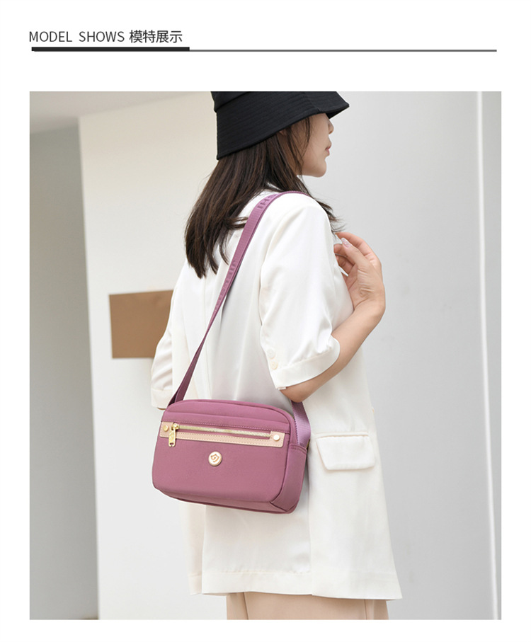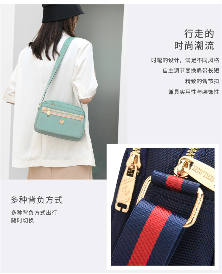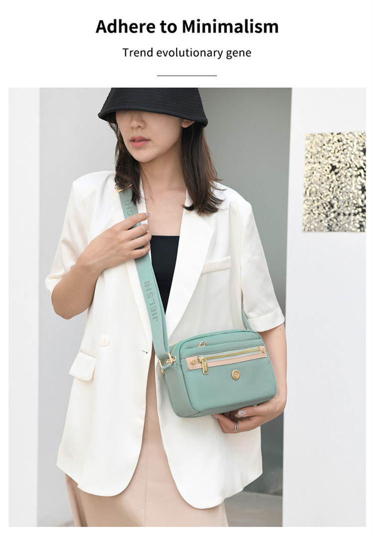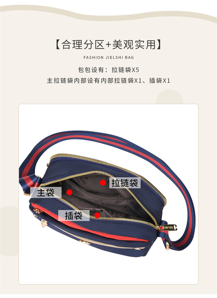 时尚斜挎包拼接撞色休闲单肩包女防水牛津布耐磨大容量多拉链