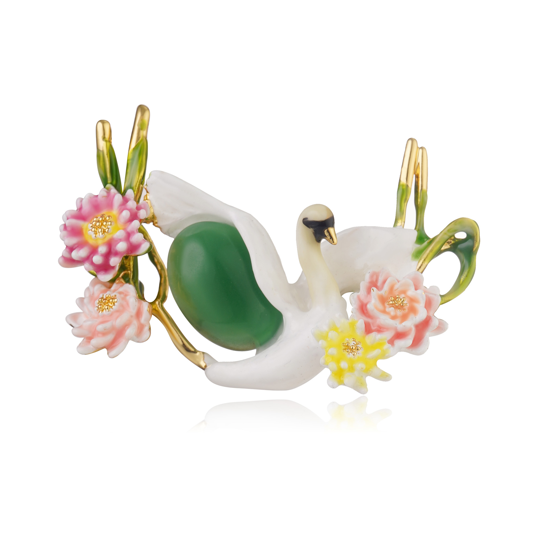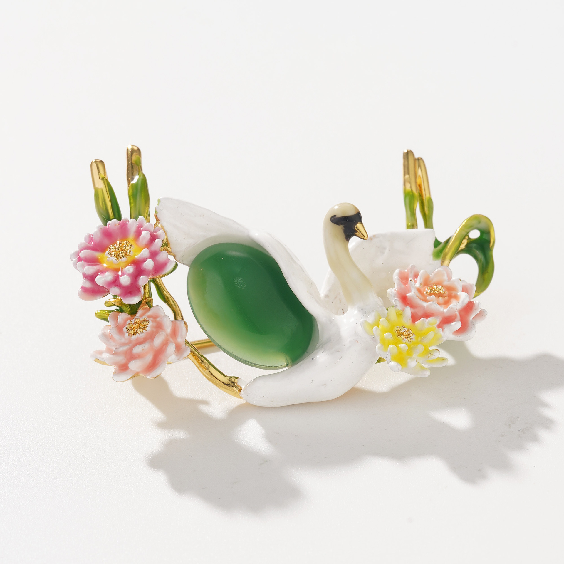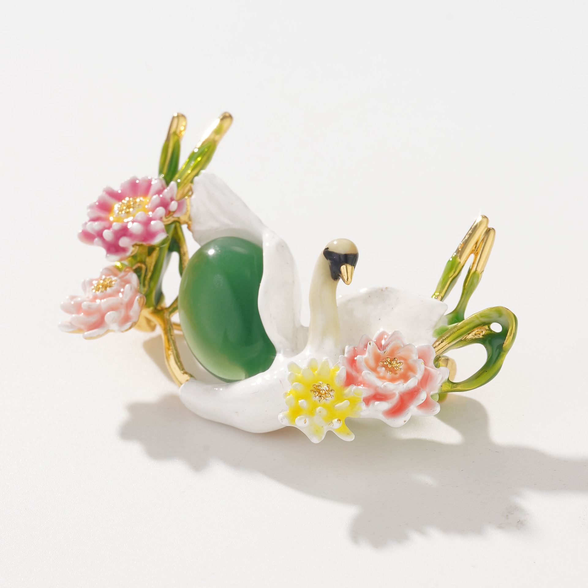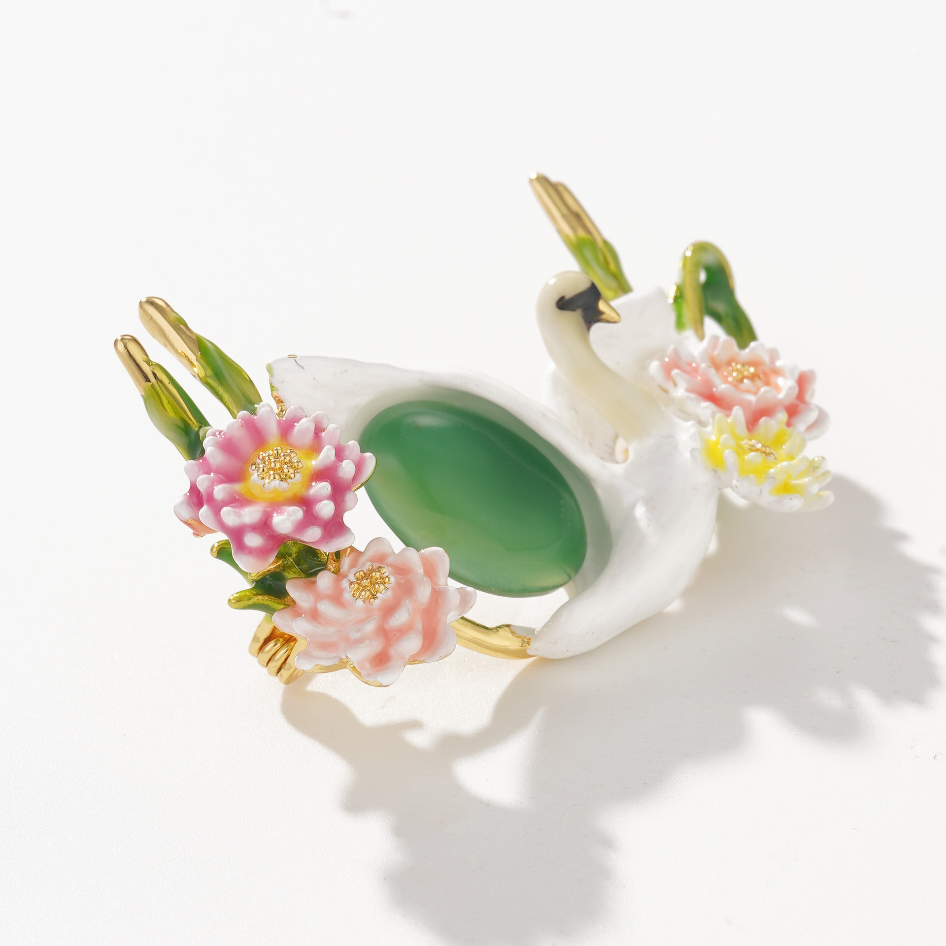 高品质原创跨境饰品天鹅胸针珐琅彩釉白色花卉新款女衣饰配饰批发