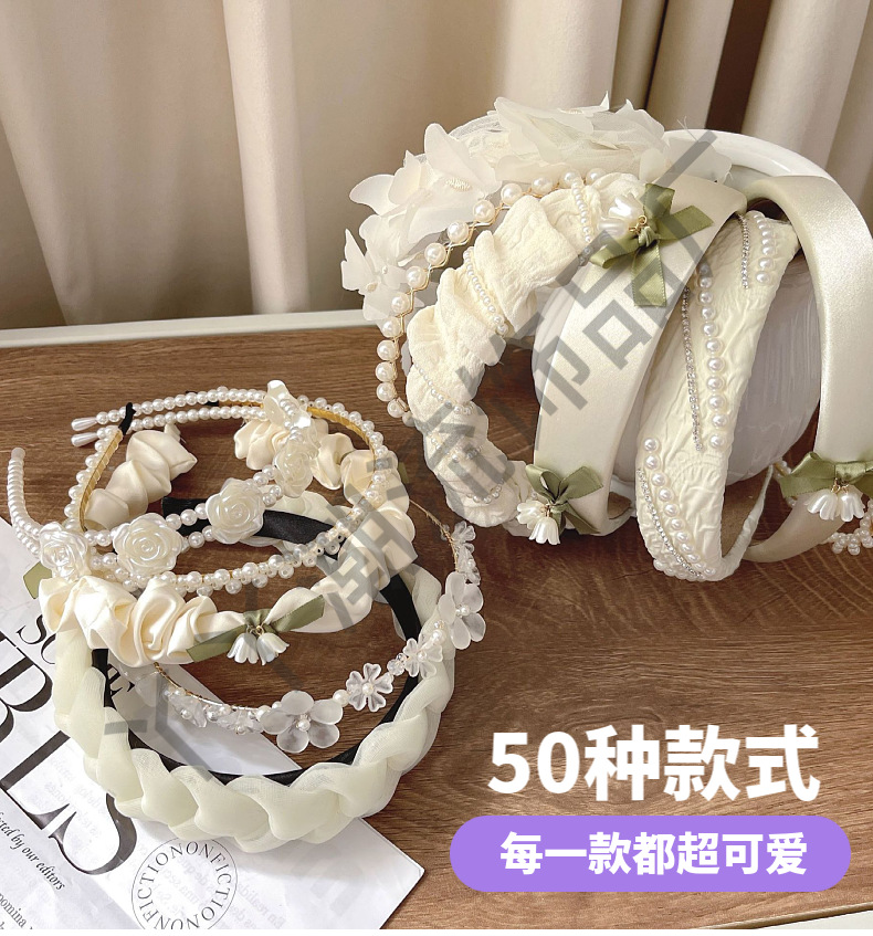 新款韩国白色发箍豹纹女网红百搭发饰高颅顶头箍夏季珍珠批发饰品