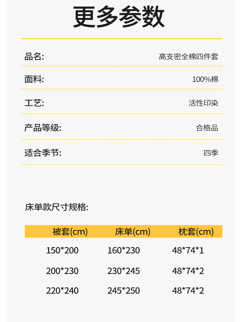 | 1.5 bed four-piece quilt cover 200x230(1.5床四件套被套200x230) | USD $30.13 | 1000 set available |