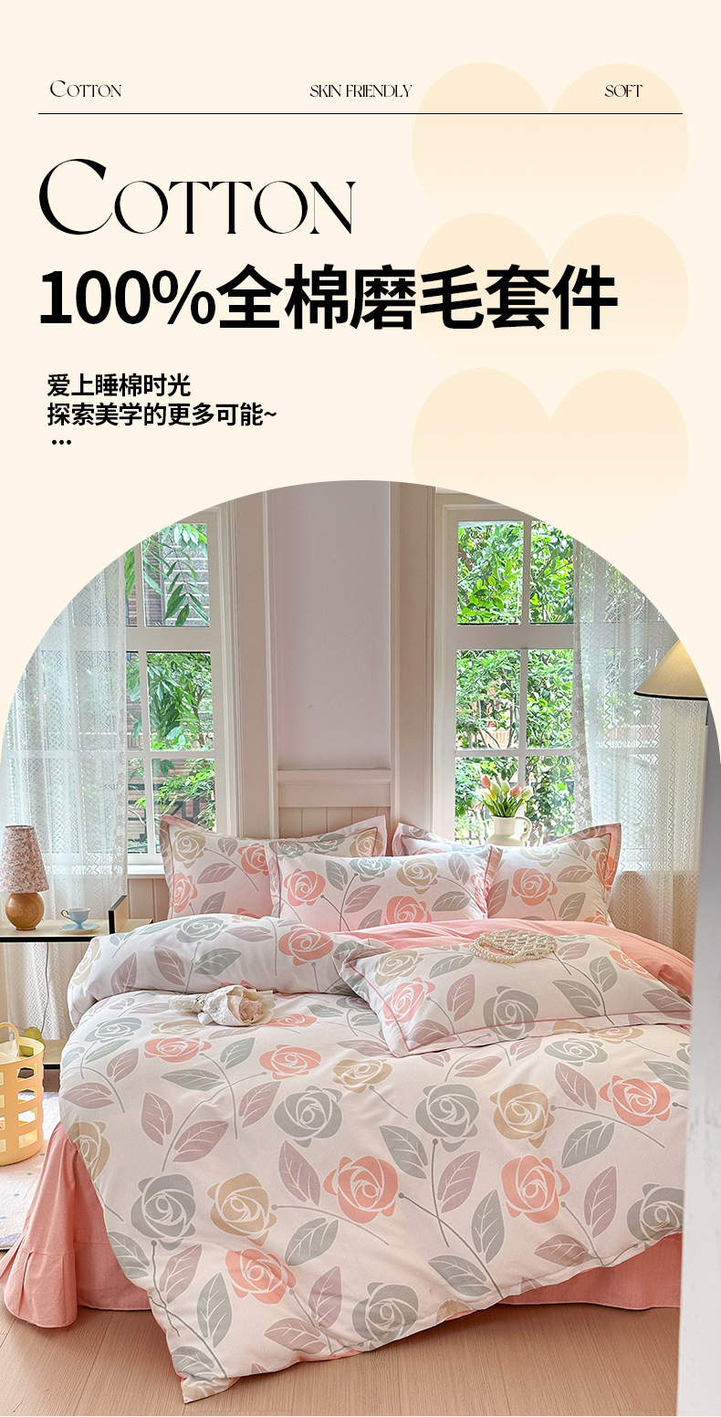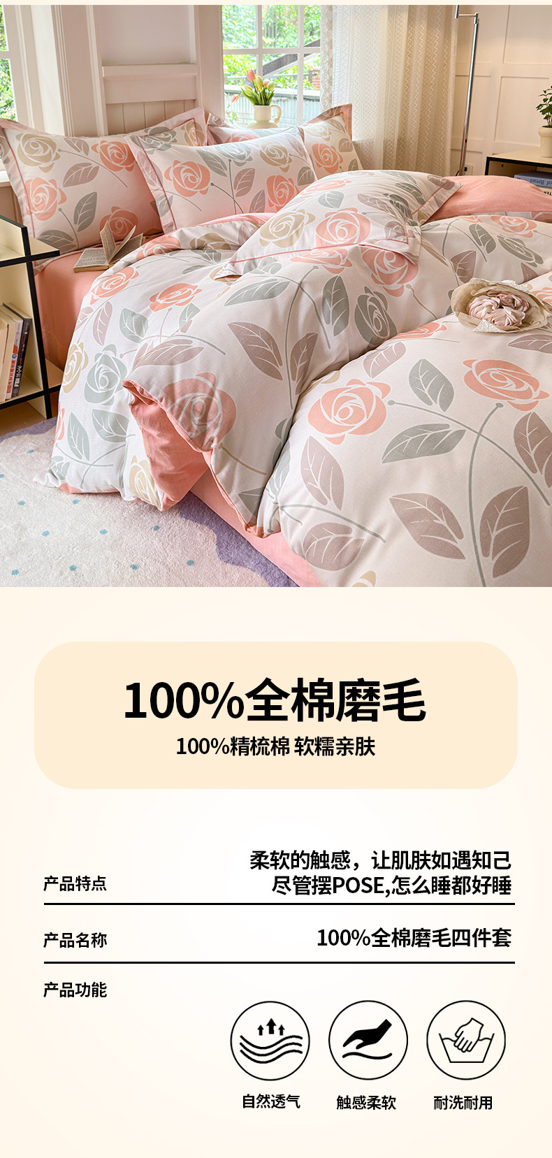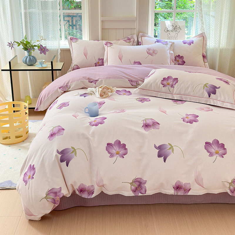 春夏印花纯棉四件套磨毛厚款床单被套三件套全棉床上用品南通家纺