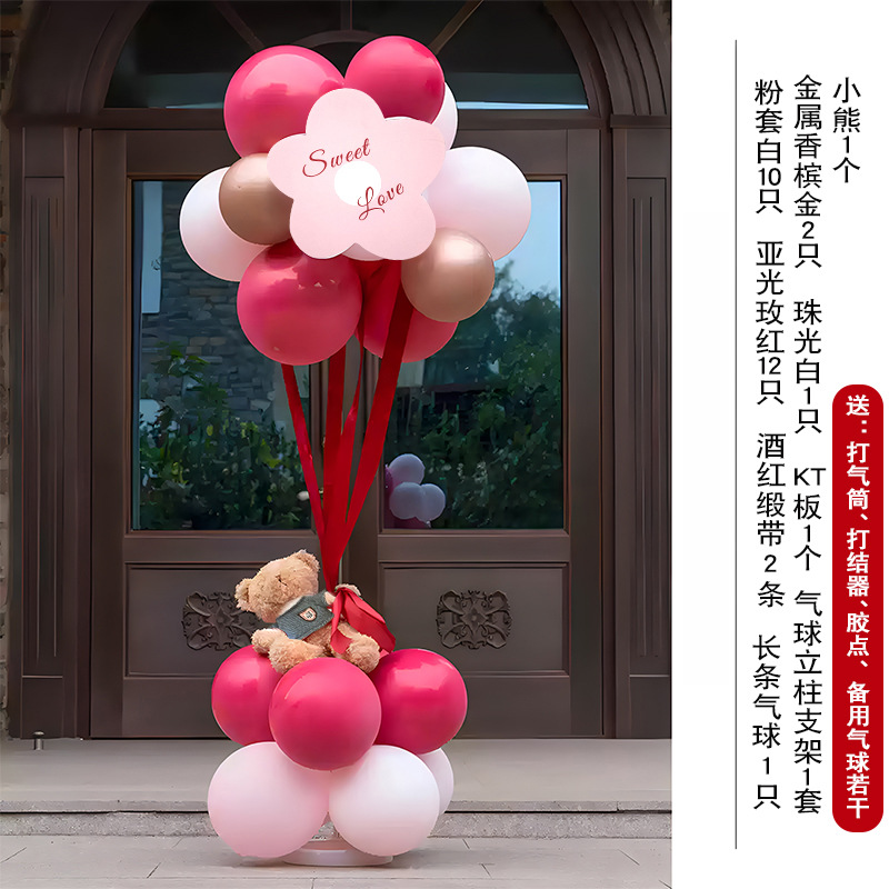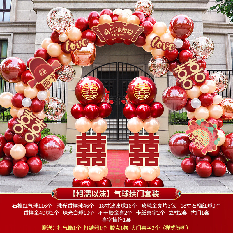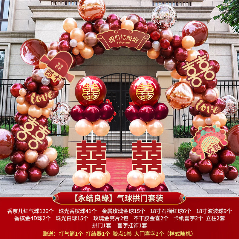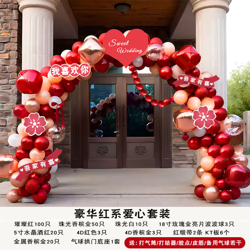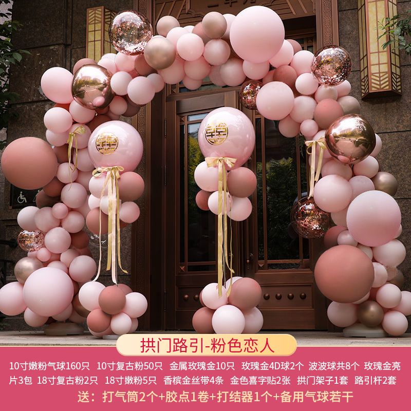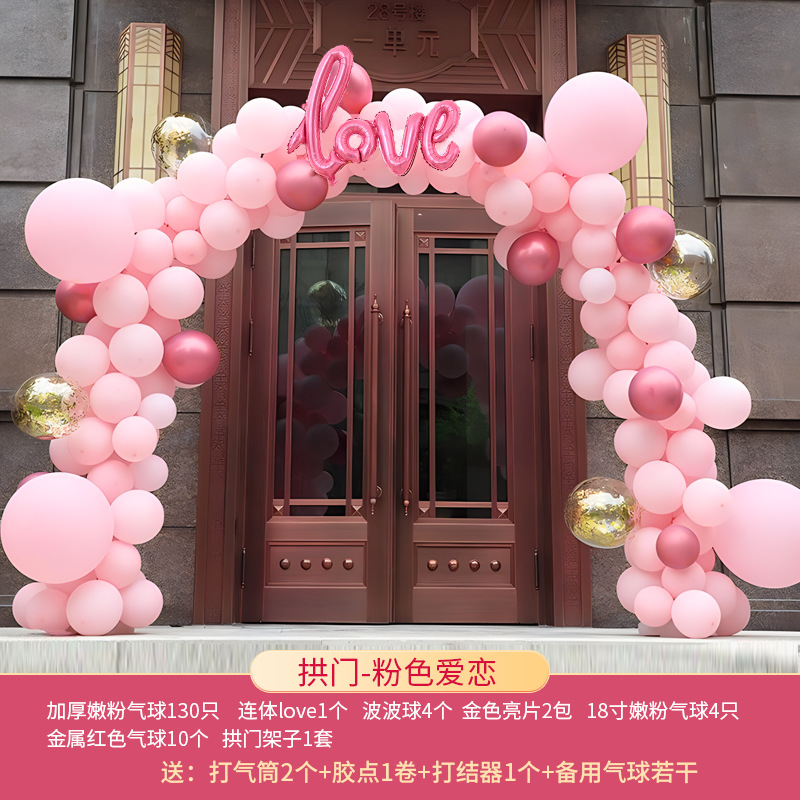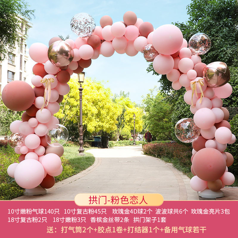 玫红粉系气球拱门结婚婚礼开业拱门婚礼场景布置生日派对网红气球