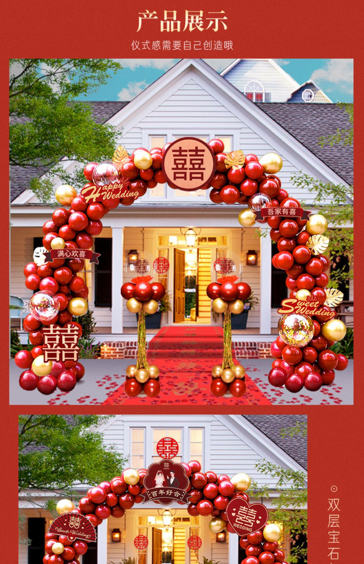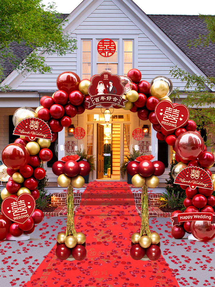 气球拱门结婚支架装饰婚庆场景布置门口气球室外路引网红婚礼农村