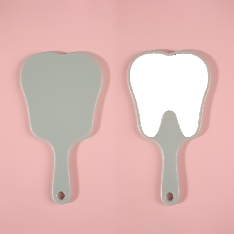 新款手持化妆镜可爱牙齿手柄镜可印LOGO广告镜子科宣传塑料镜子