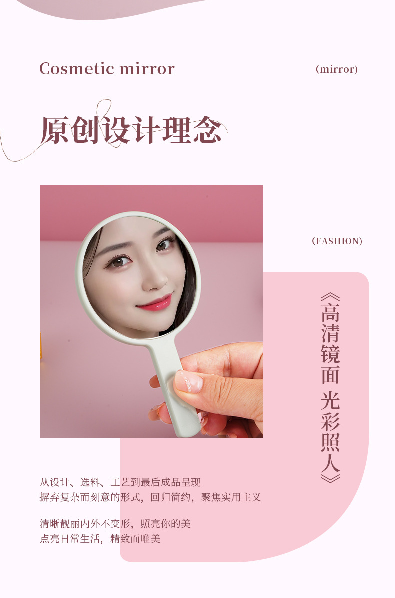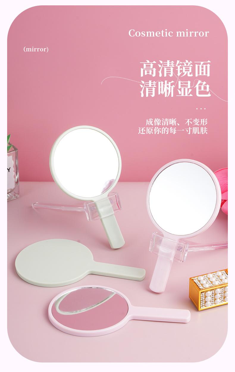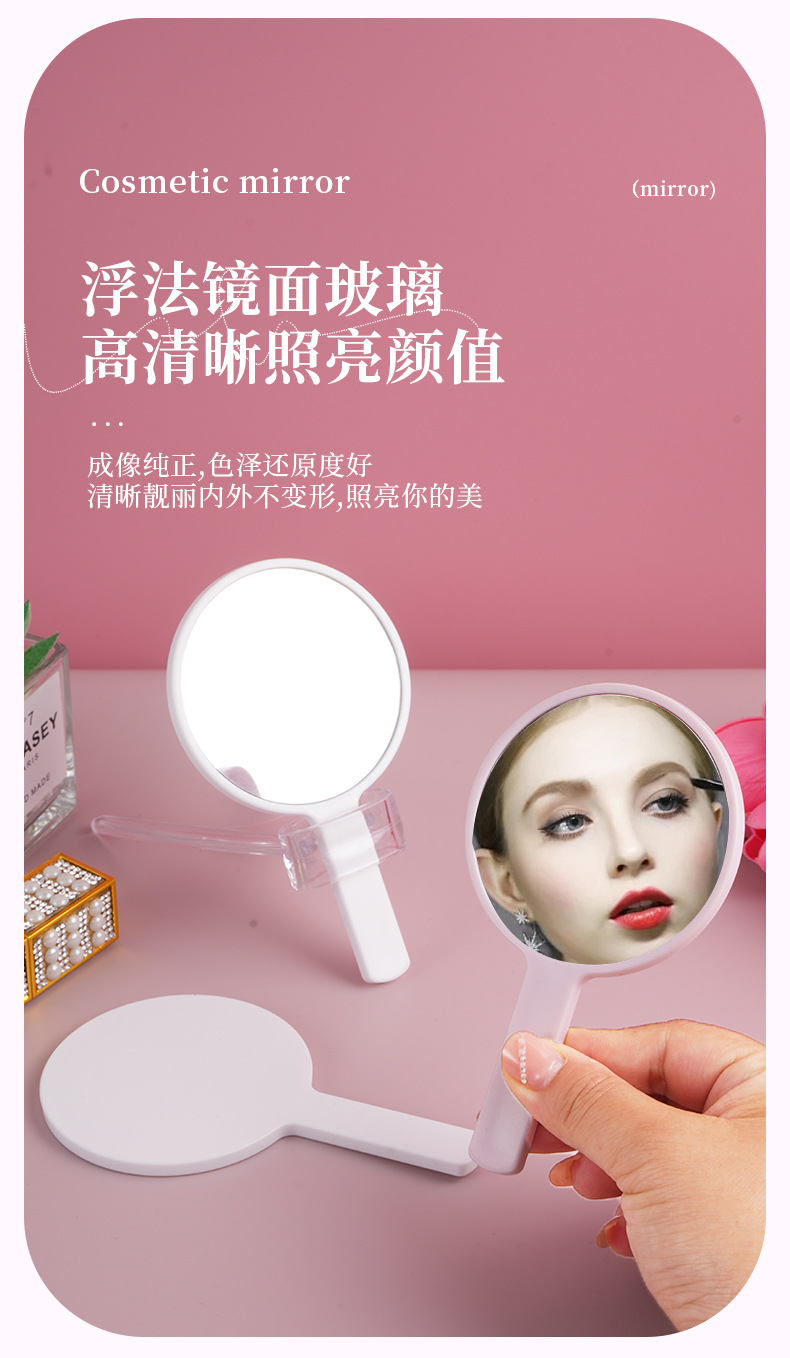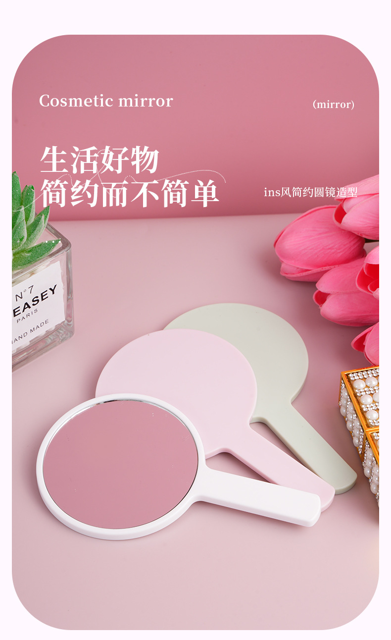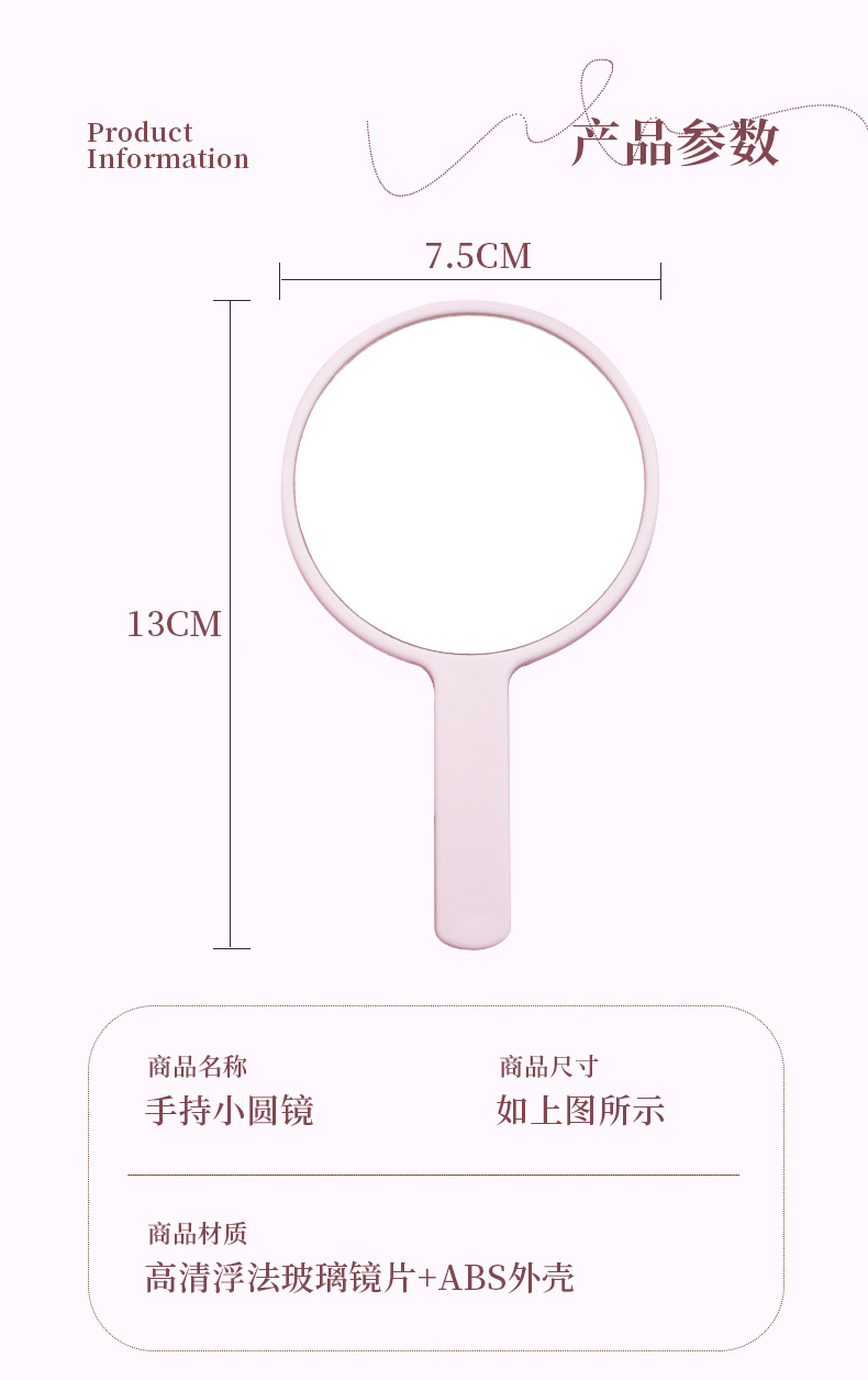 手柄镜子简约化妆镜 7.5cm圆形手持镜创意小号便携式手持化妆镜子