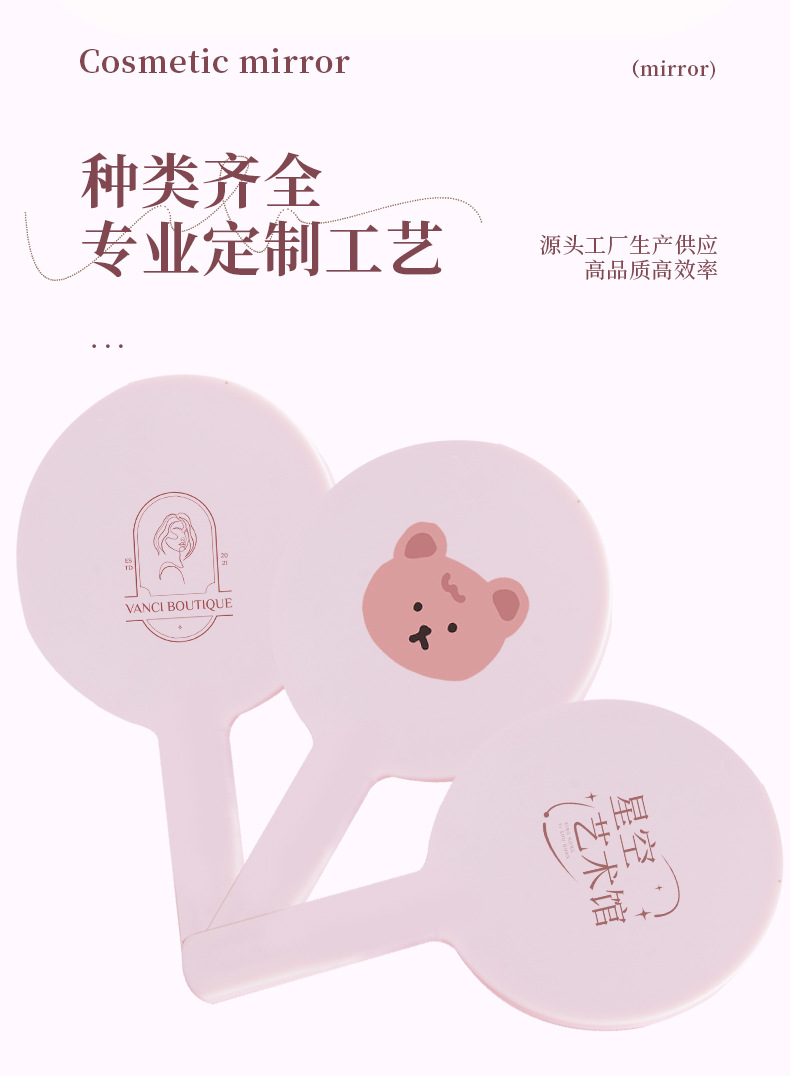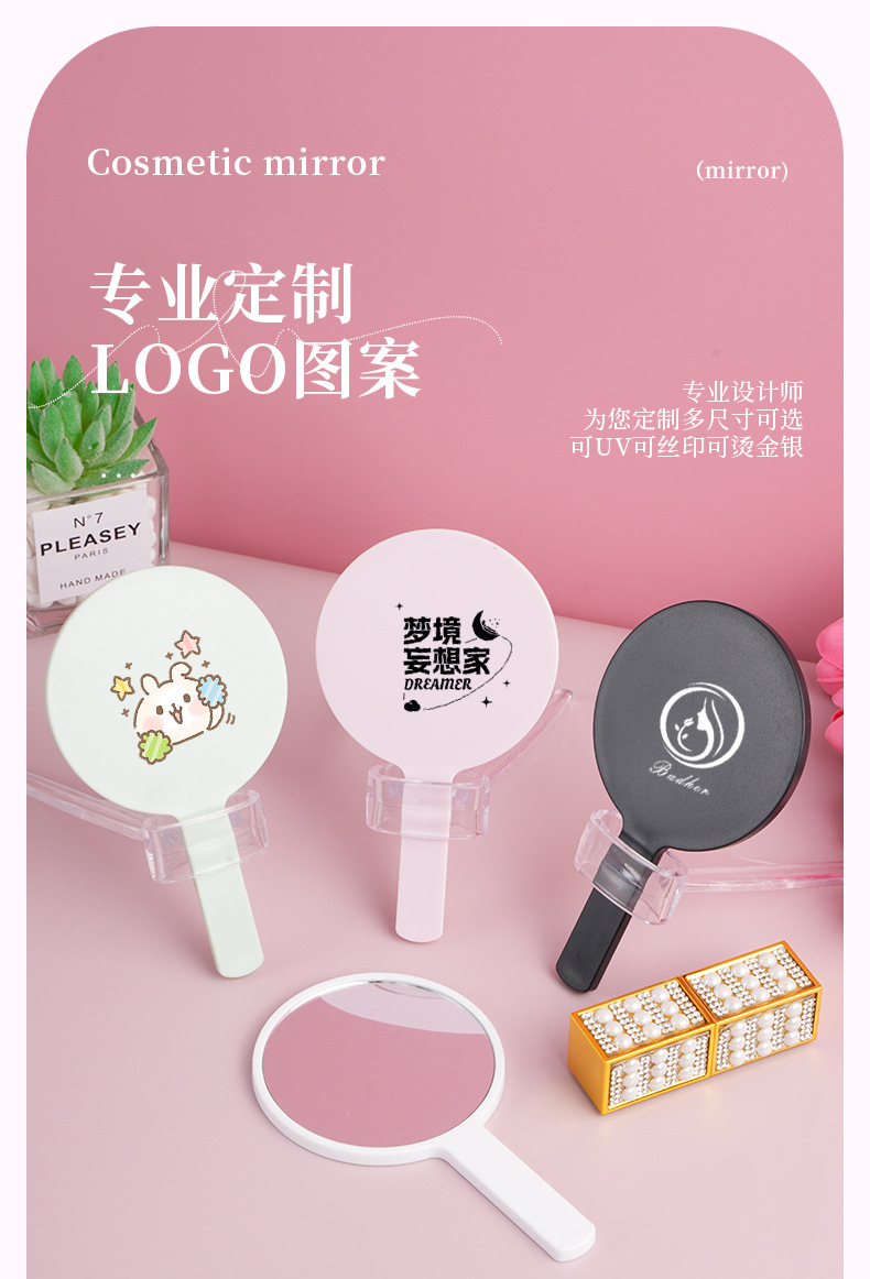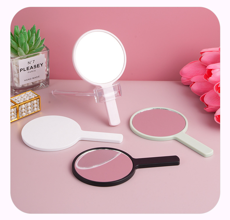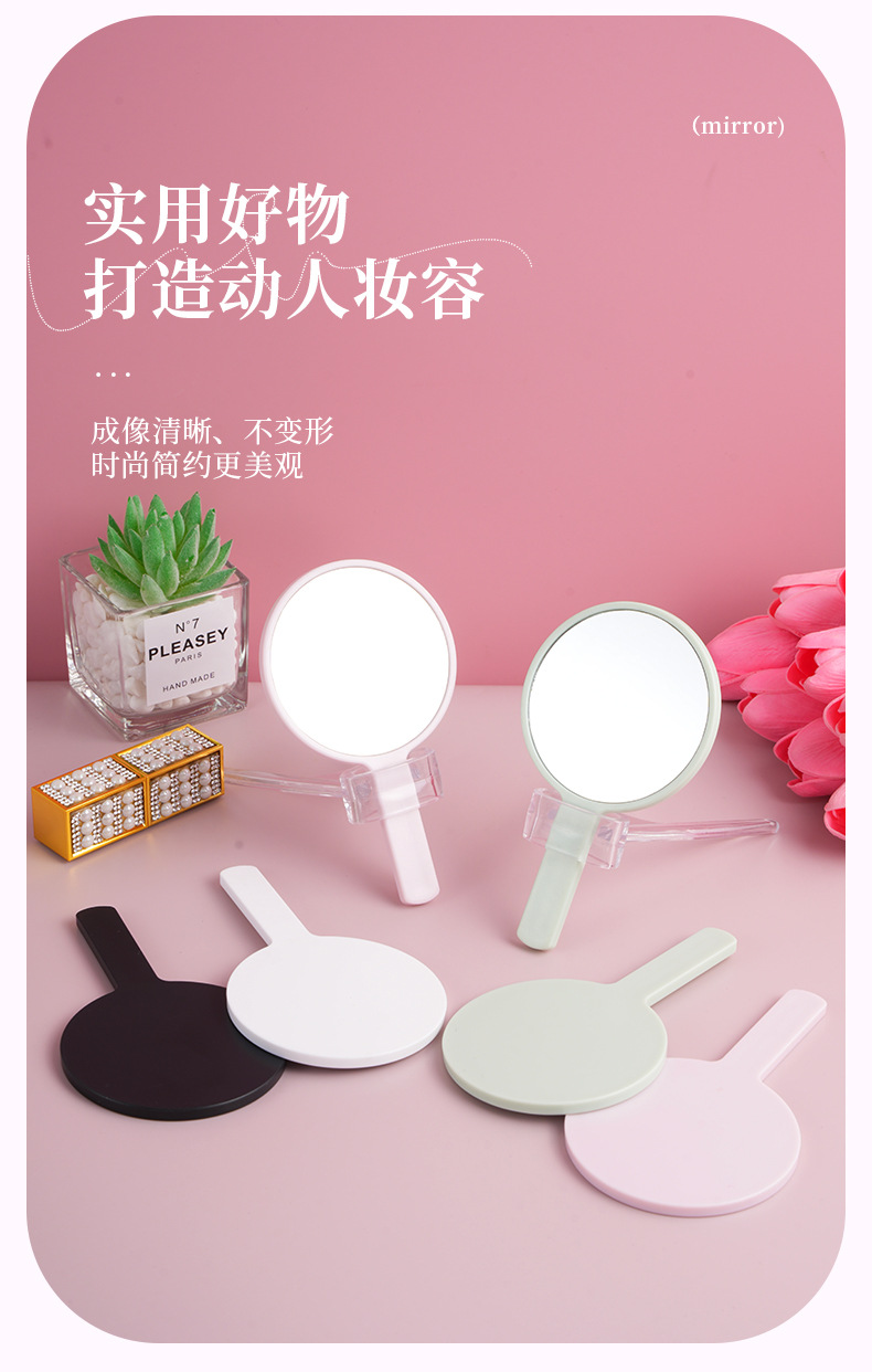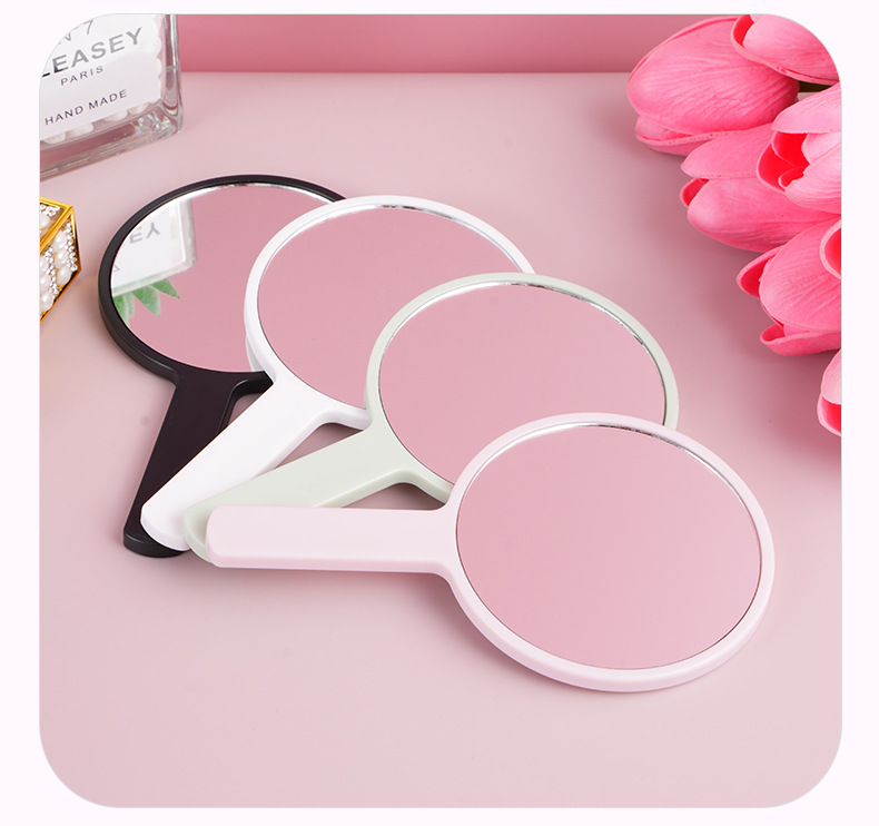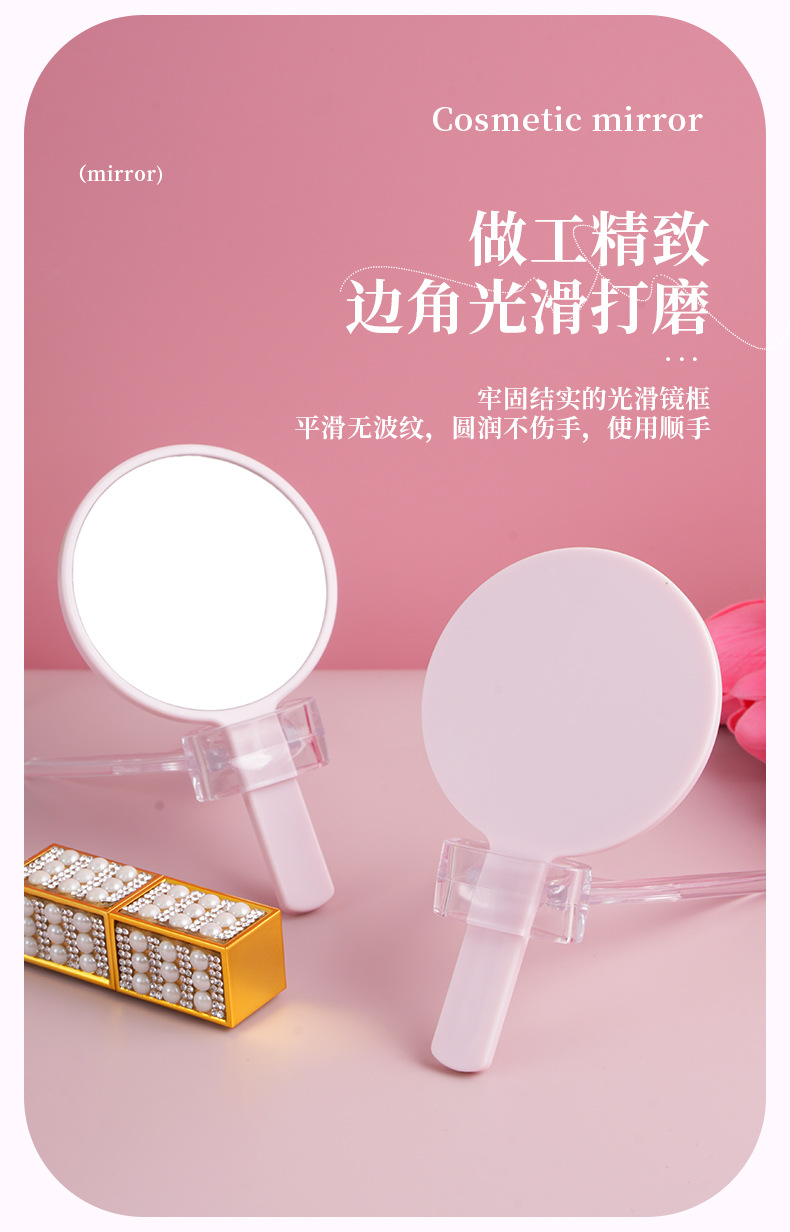 手柄镜子简约化妆镜 7.5cm圆形手持镜创意小号便携式手持化妆镜子
