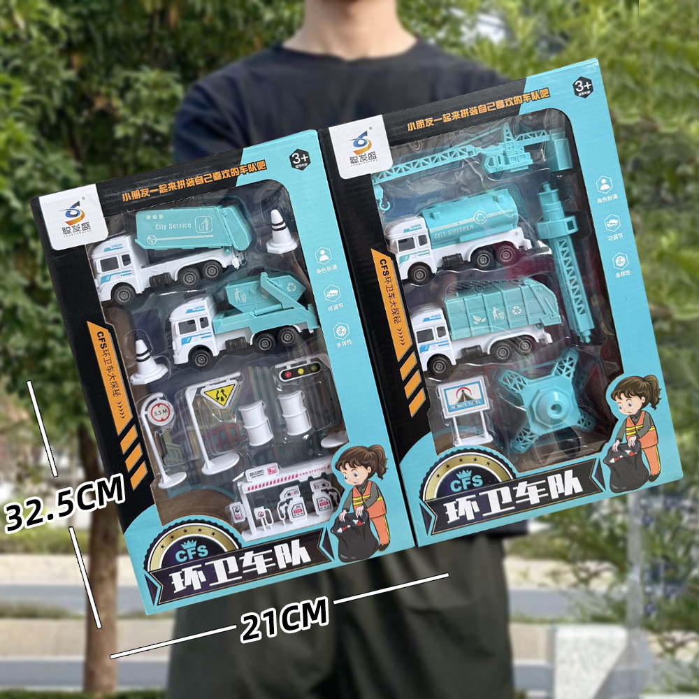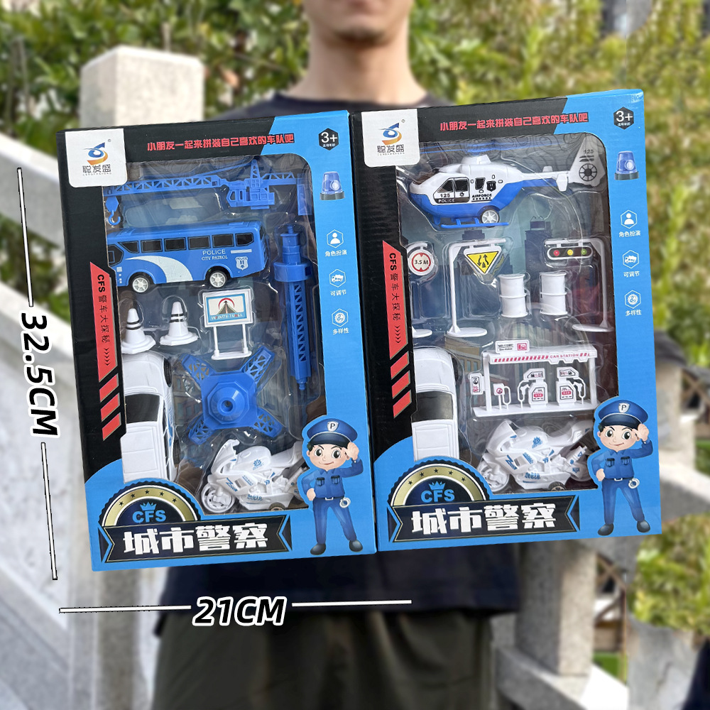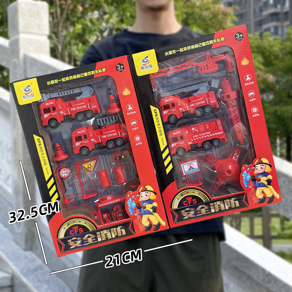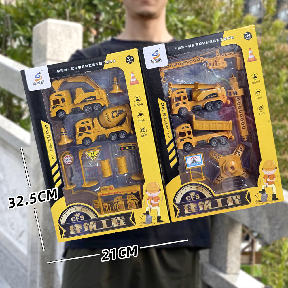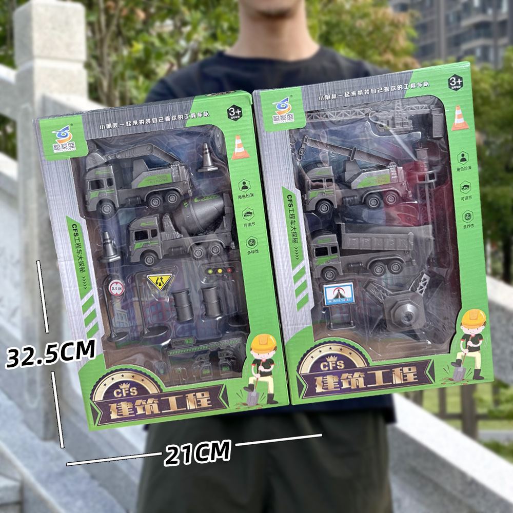 地摊货源儿童惯性回力工程车玩具挖掘机礼盒套装男孩消防汽车批发