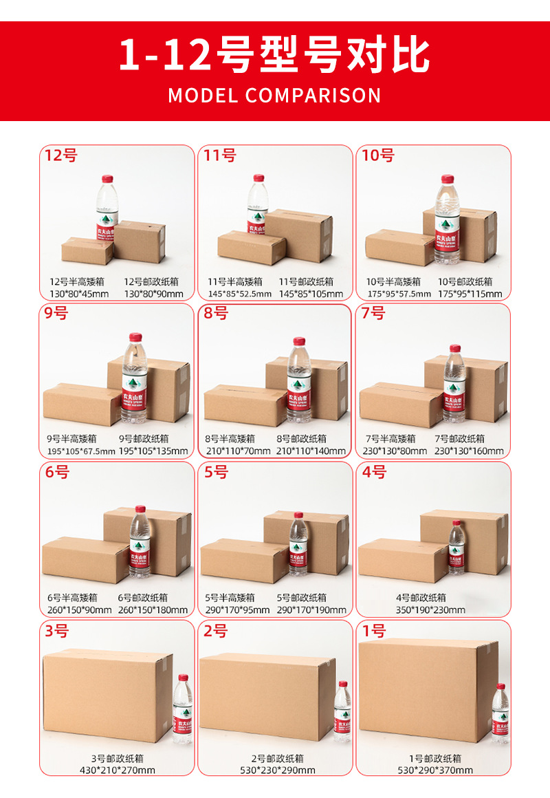 | no. 9 195 x105x135mm; height halved (three-layer ultra-hard half-height carton)(9号195x105x135mm;高度减半(三层超硬半高纸箱)) | USD $0.07 | 22438 piece available |