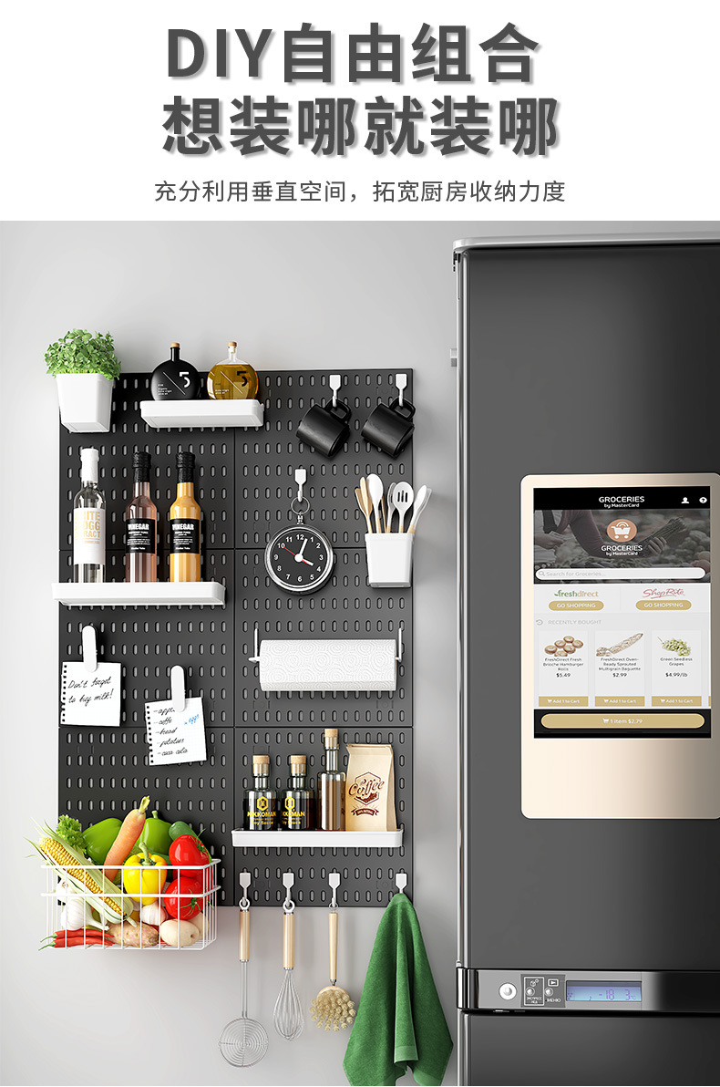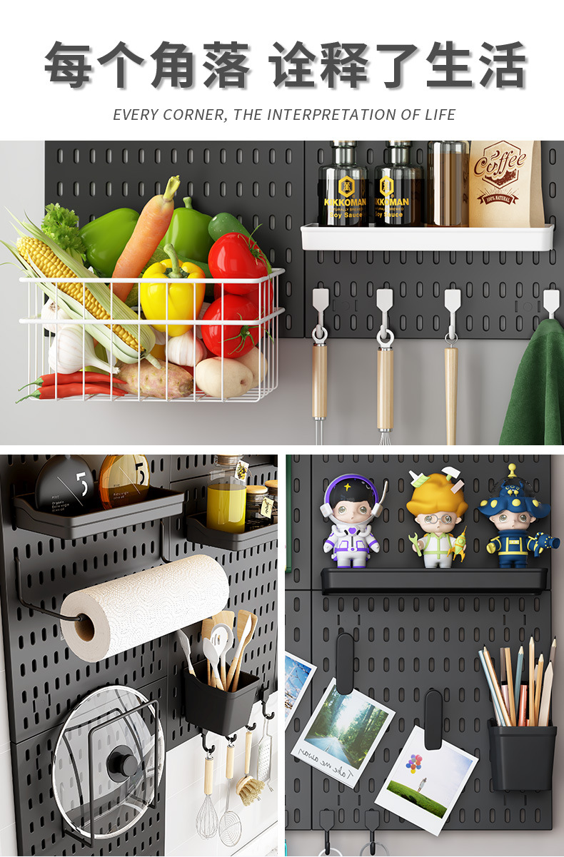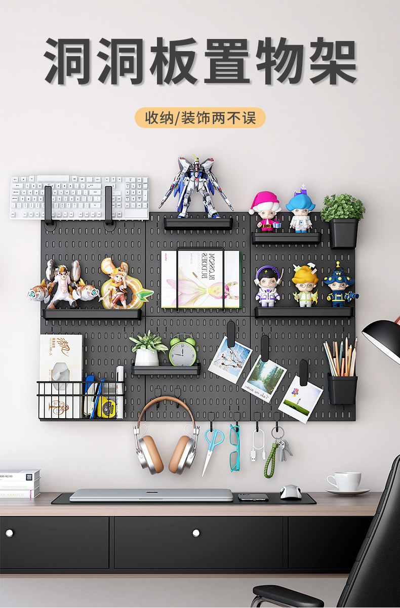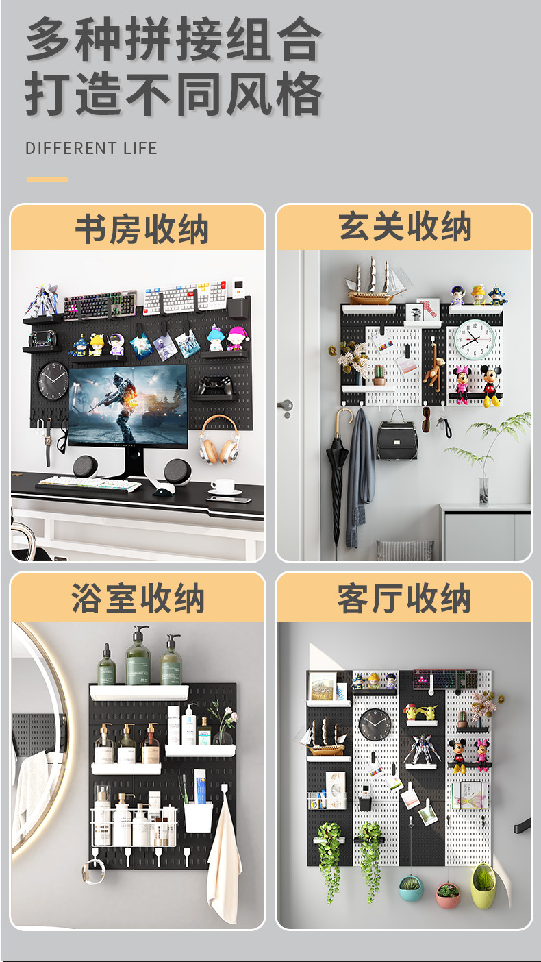 洞洞板免打孔多功能DIY组合书房卧室厨房浴室收纳神器挂壁墙面板