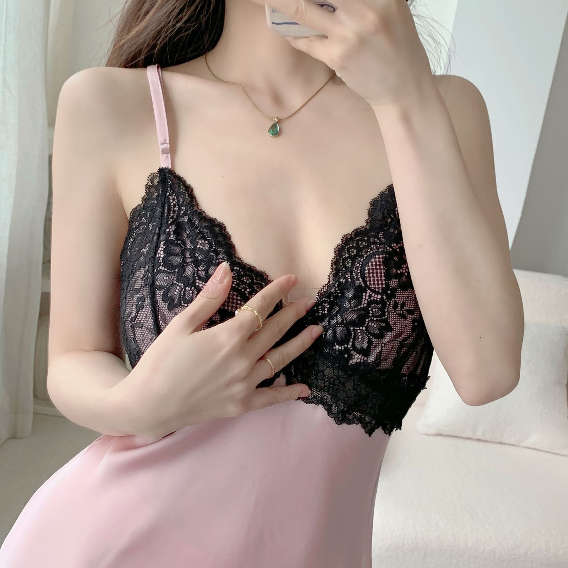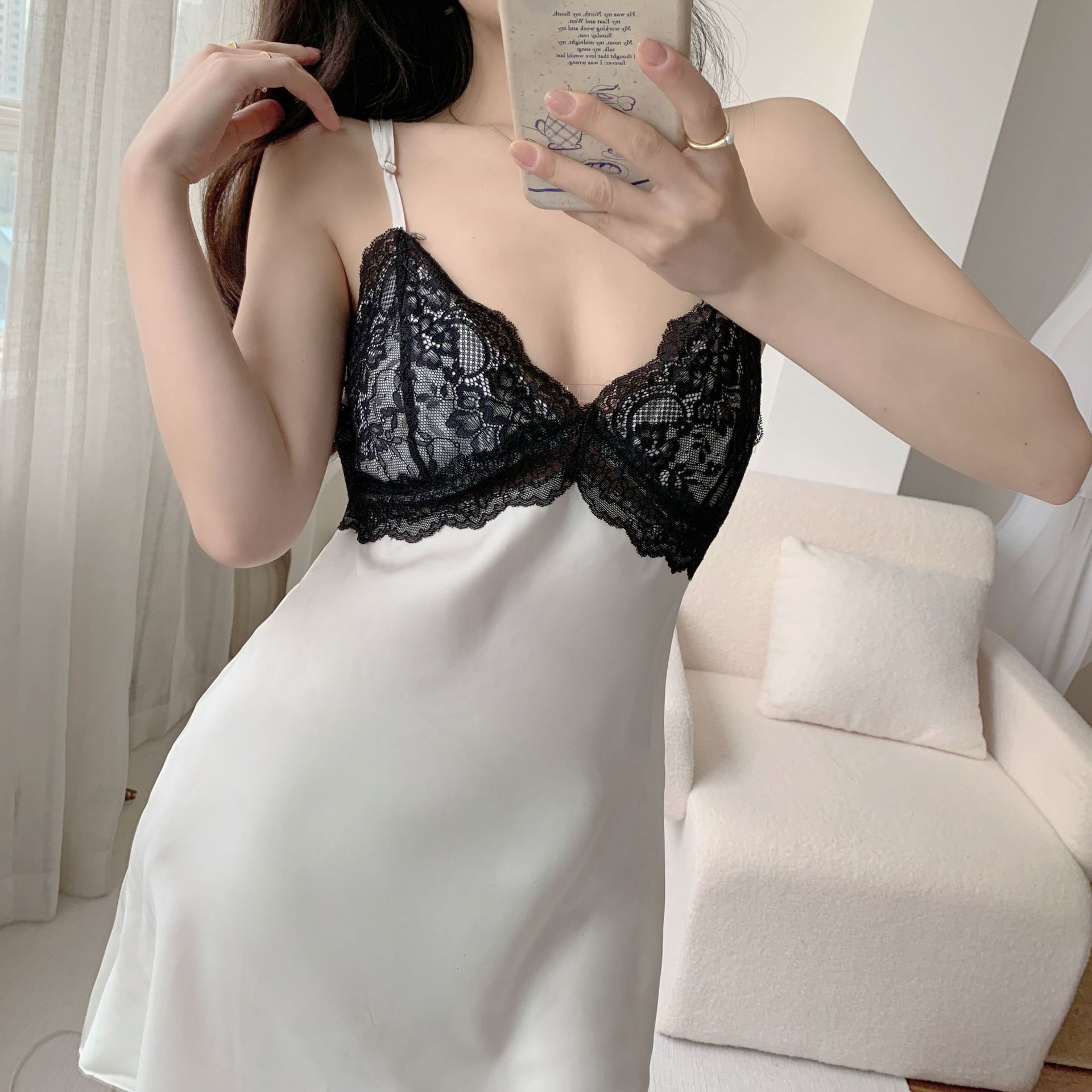 冰雪丝吊带睡衣裙女夏带胸垫纯欲风丝绸缎面睡衣蕾丝露背家居服