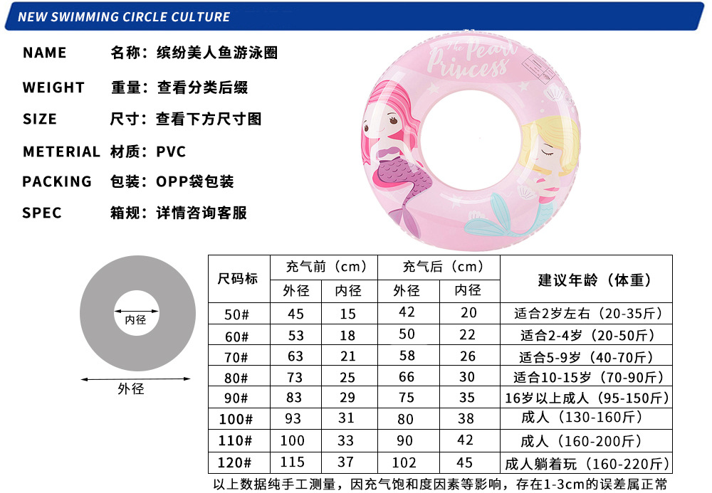 现货批发 ins加厚卡通儿童游泳圈缤纷美人鱼水圈PVC幼儿小孩泳圈