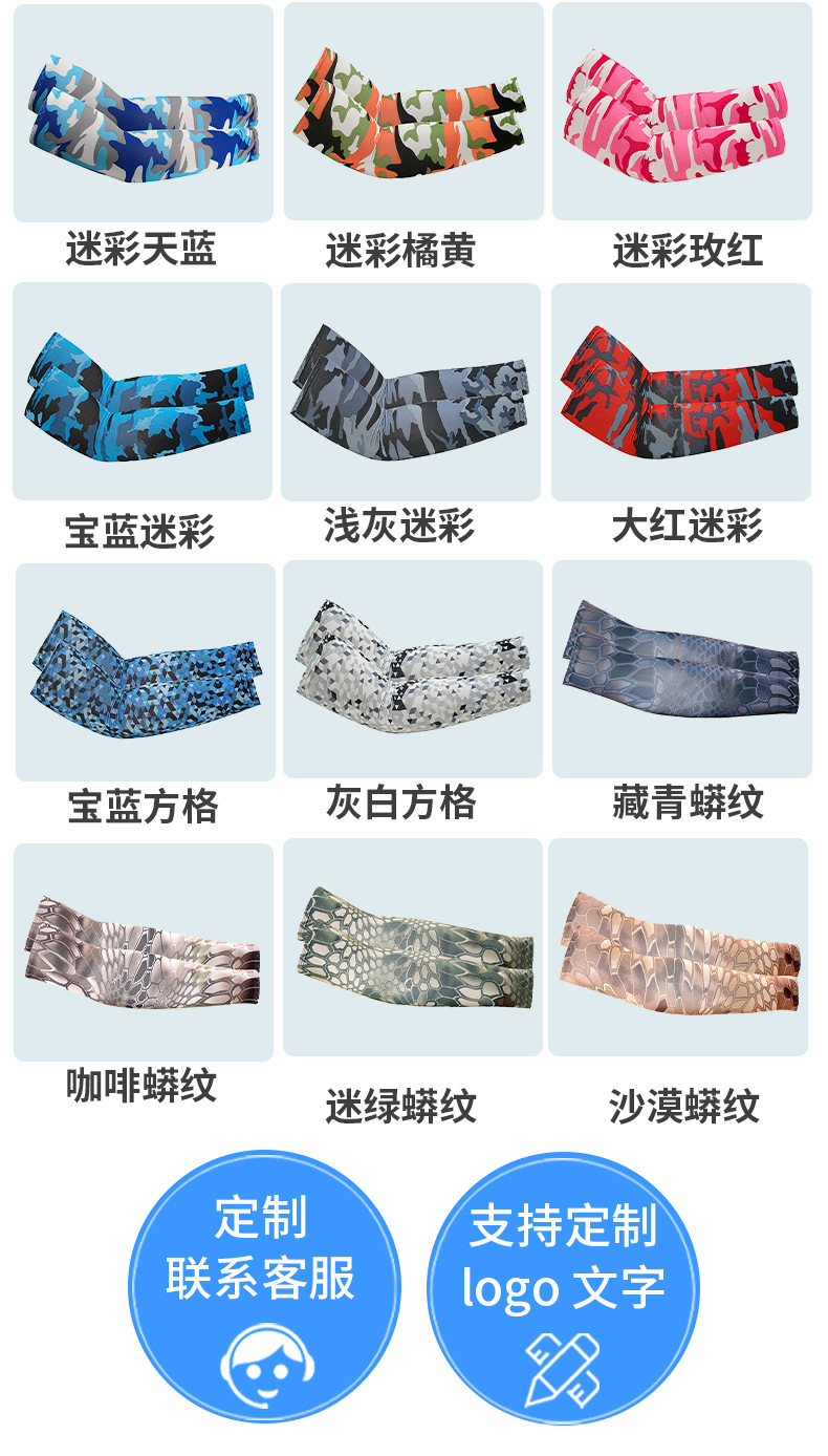 夏季户外运动防晒冰丝袖套数码印花迷彩骑行护臂防紫外线透气冰袖
