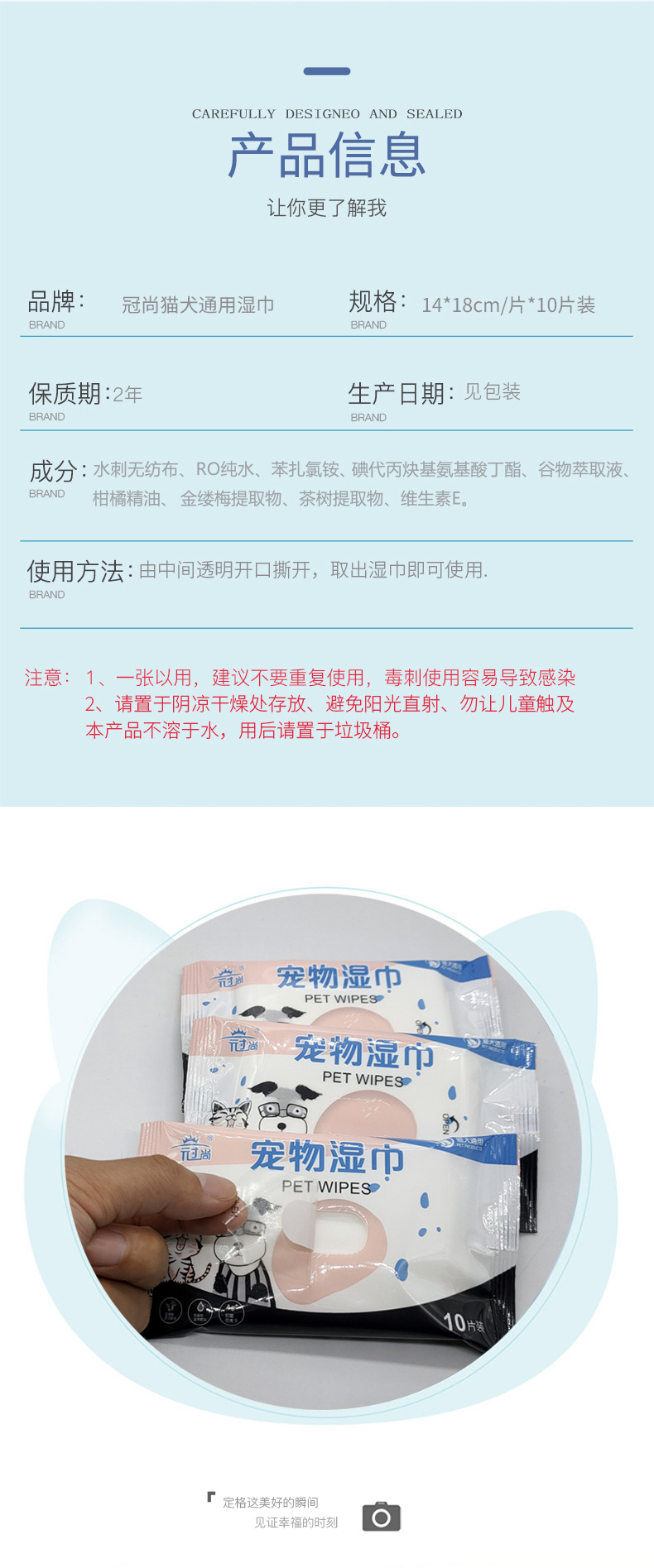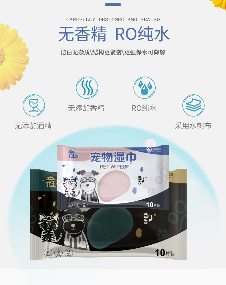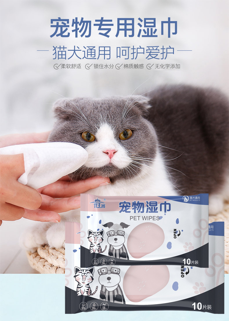 宠物湿巾 猫狗擦拭清洁泪痕湿巾 10抽宠物眼部耳部免洗湿巾定制