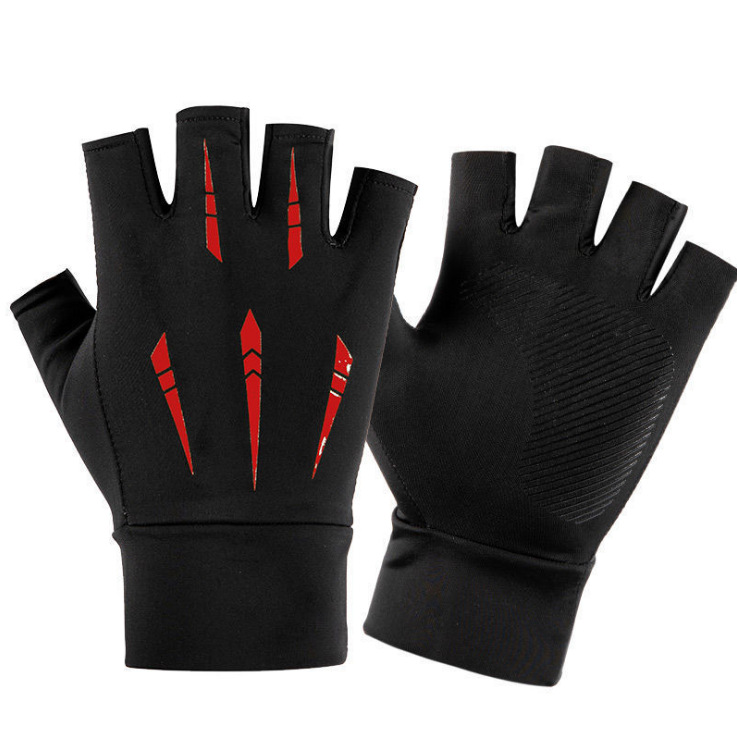 新款夏季冰丝手套露二指高弹透气防晒速干骑行薄款防滑钓鱼半指男