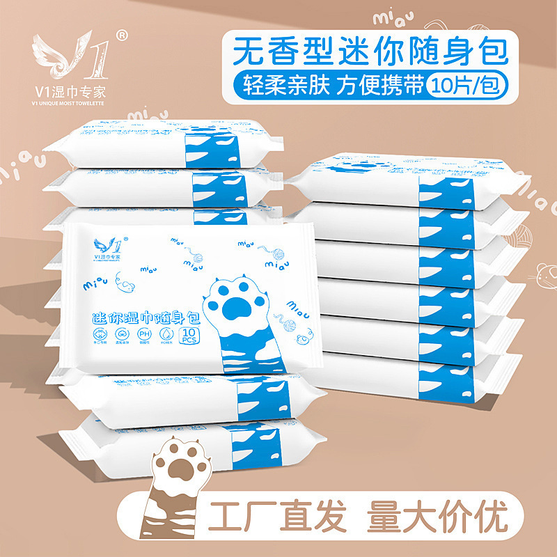 迷你小包湿巾批发便携装清洁湿巾纸随身10片装一次性十片无香湿巾