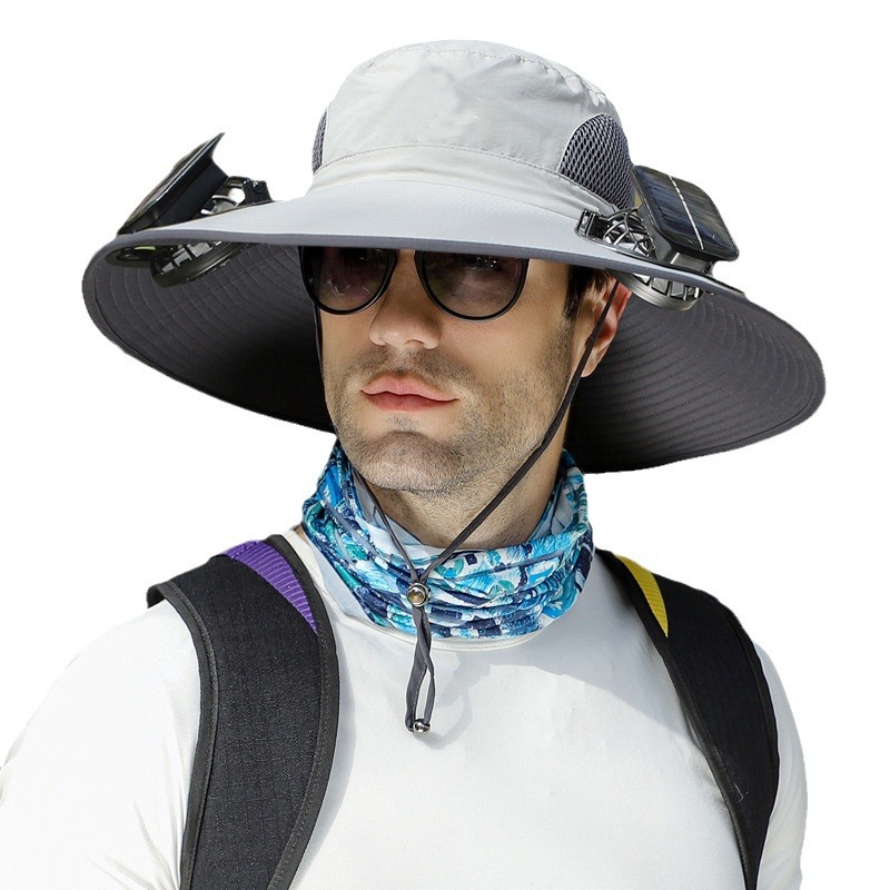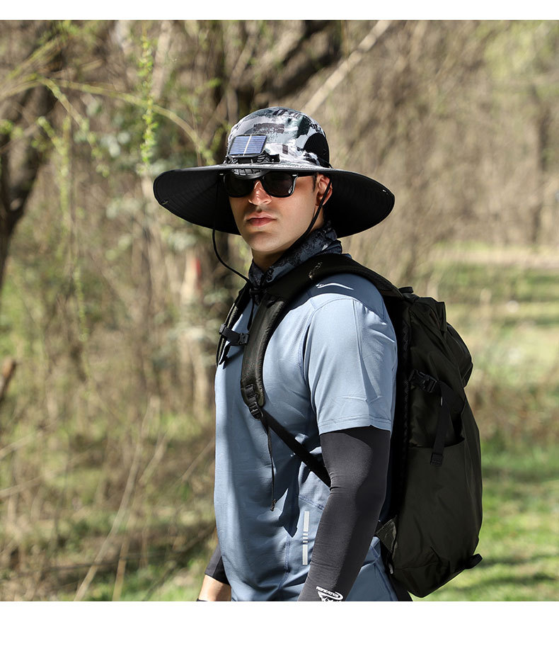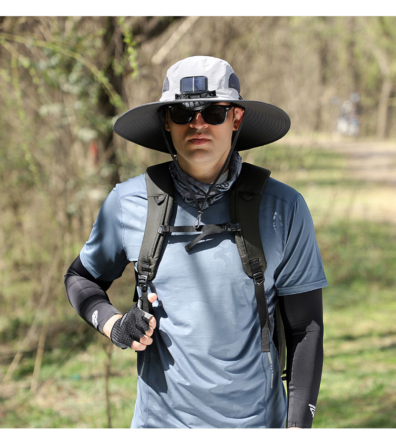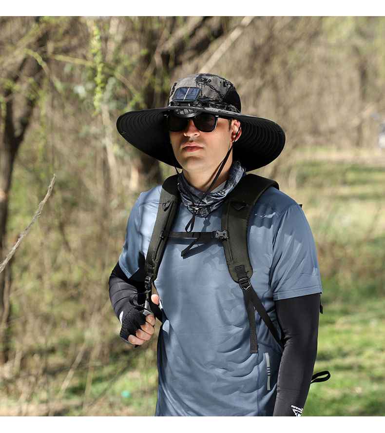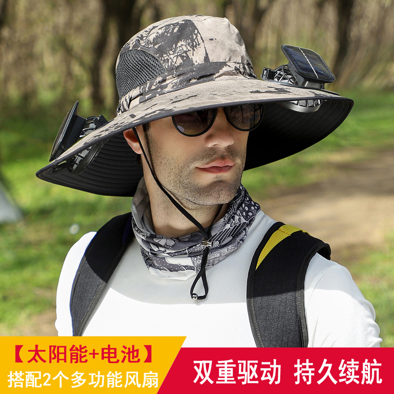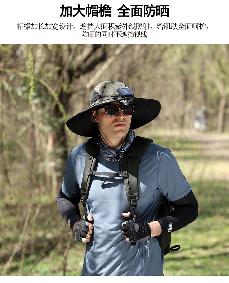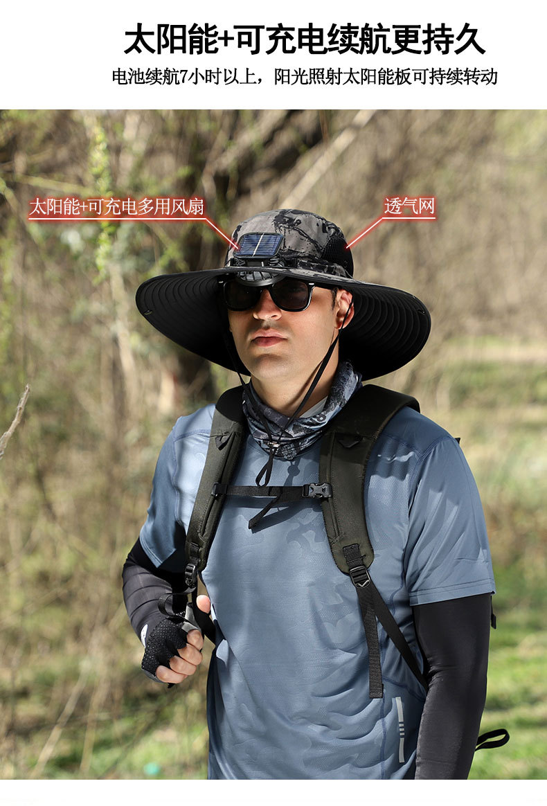 新款充电大风力户外干活风扇帽男士夏季休闲登山旅游渔夫帽钓鱼帽