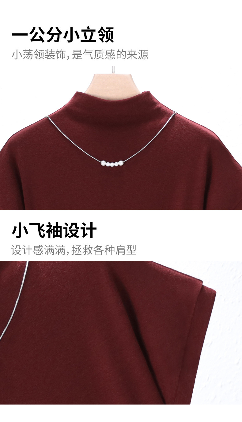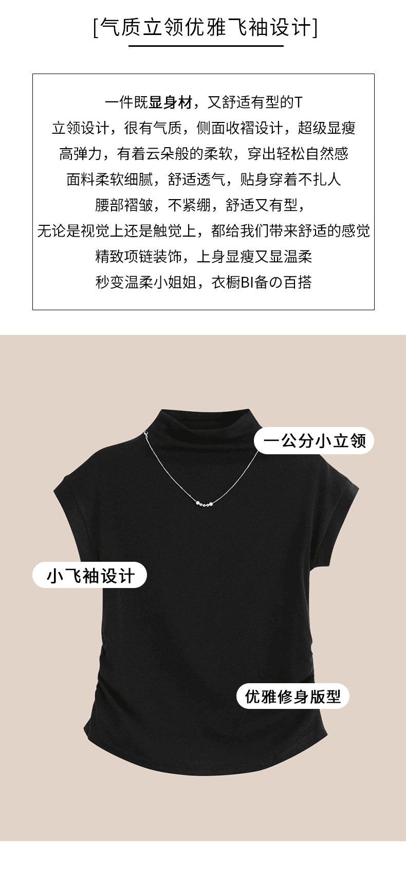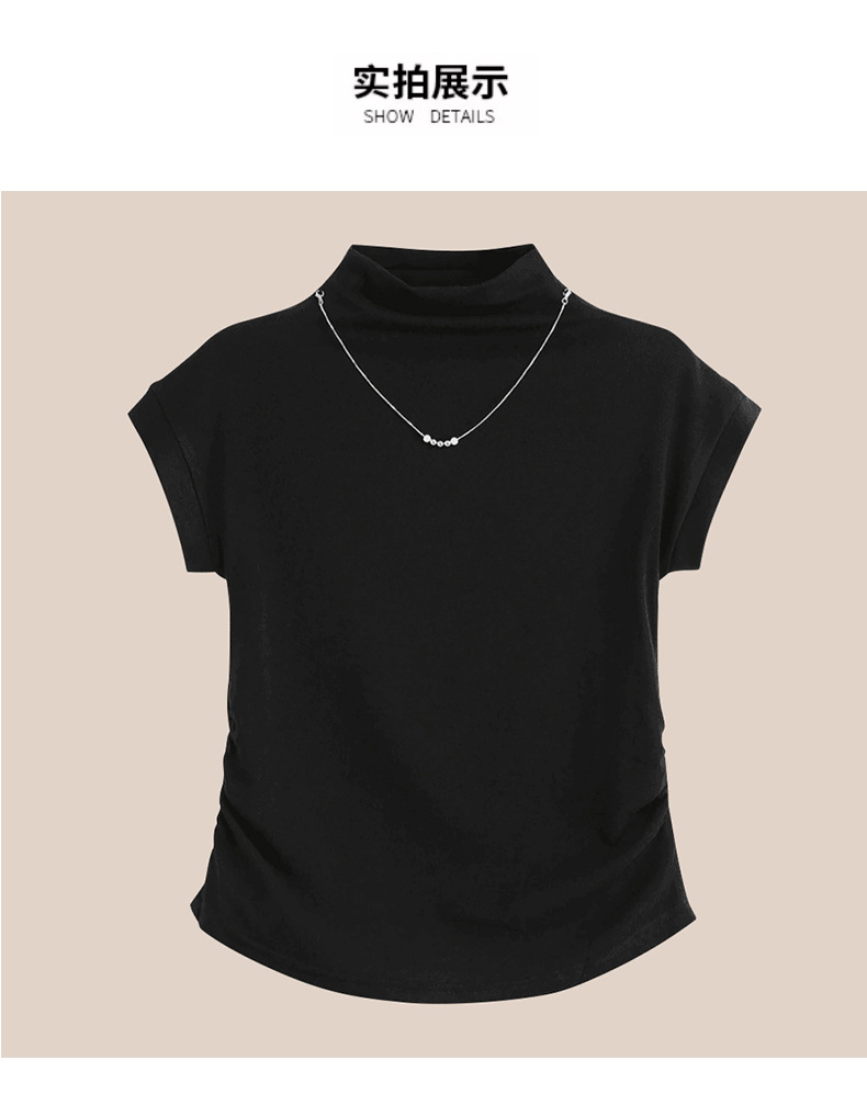 2025女装新款上衣半高领女士t恤 女短袖秋季气质正肩飞袖收腰显瘦