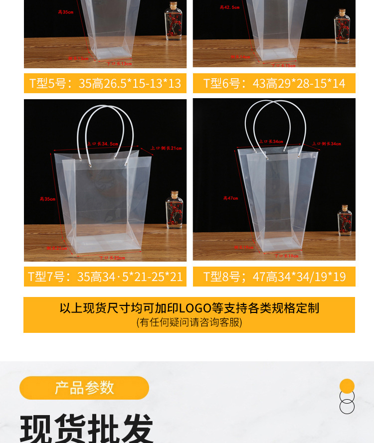 透明梯形手提袋母亲节鲜花花束袋礼品鲜花520手提袋pp花束包装袋